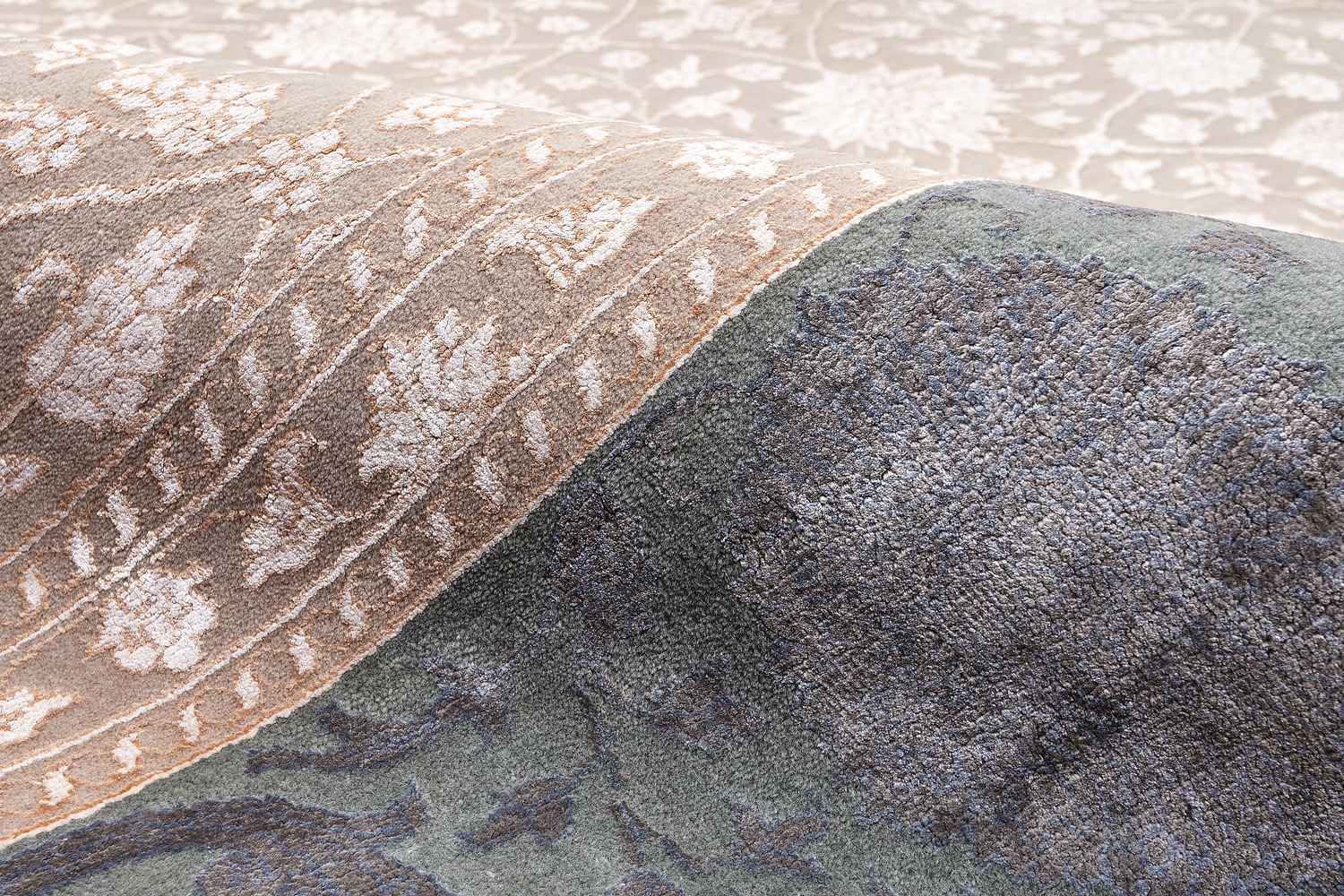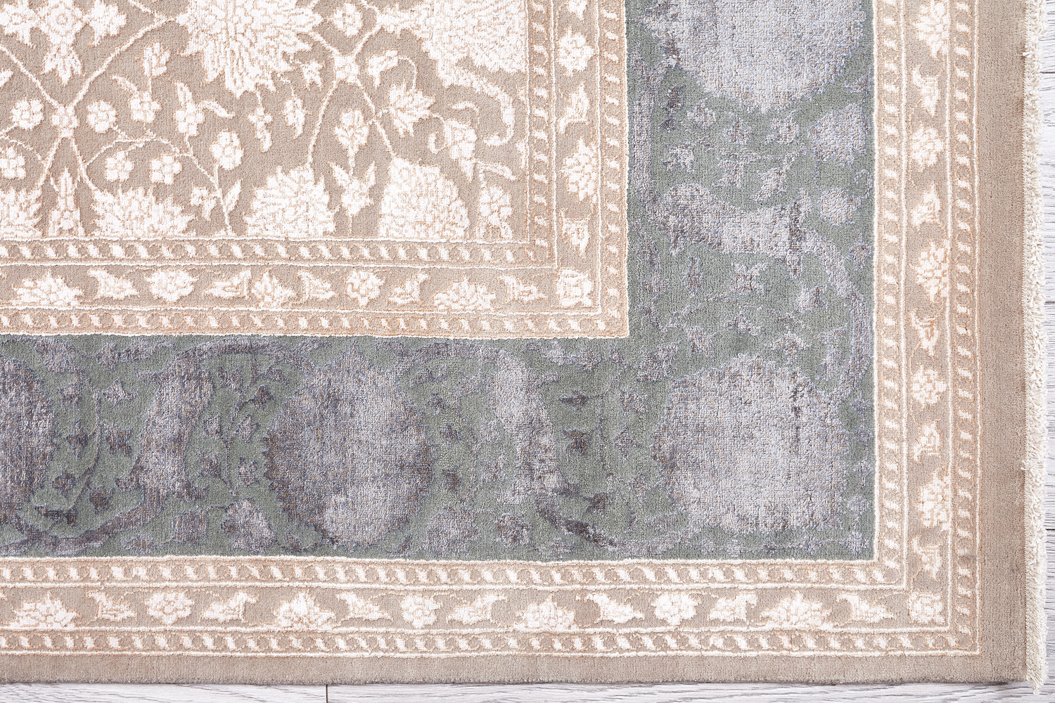 Каждый ковер в этой коллекции соткан вручную из шерсти и арт шёлка опытными индийскими мастерами.