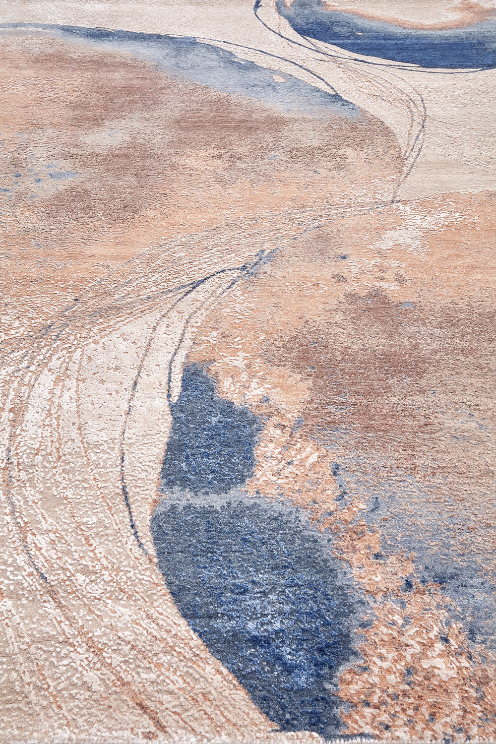 Дизайн ковров напоминает современные полотна художников-абстракционистов и производит столь же яркое и незабываемое впечатление в интерьере. Живописный эффект и необычная фактура зависят от выбора материала: натуральной шерсти, шёлка и от их сочетаний друг с другом. Ковры ткутся вручную в лучших мастерских Индии и Пакистана.