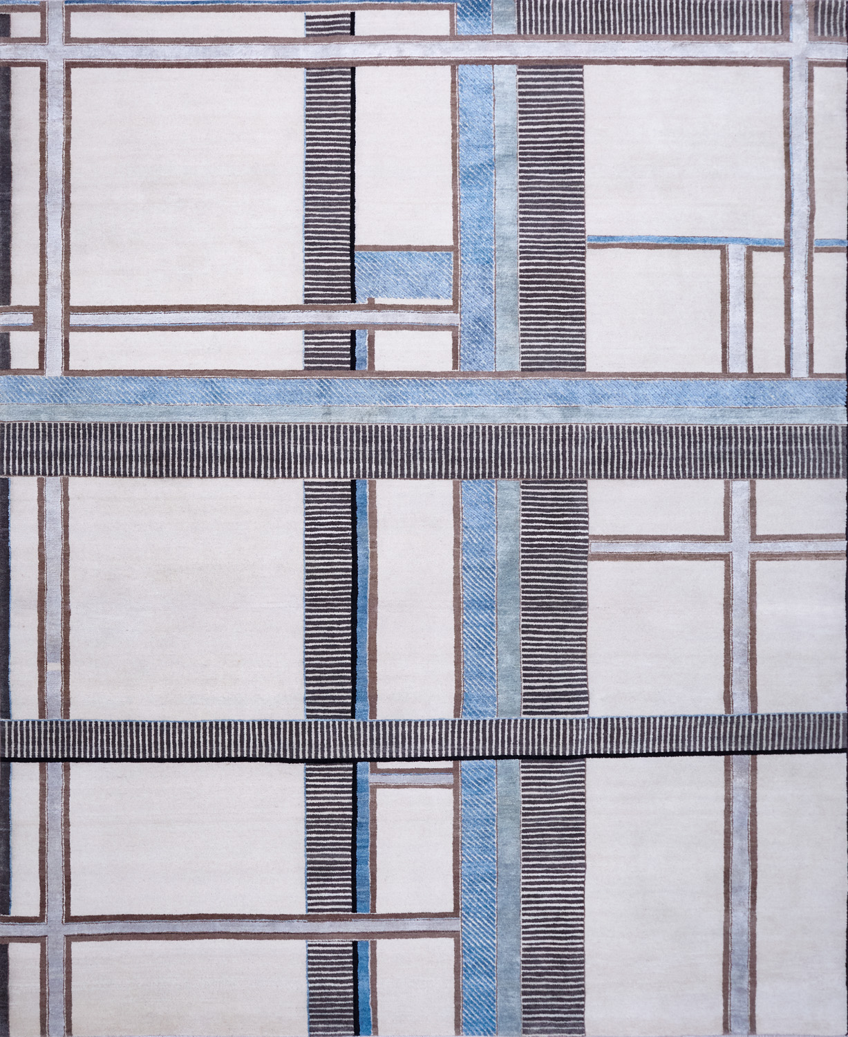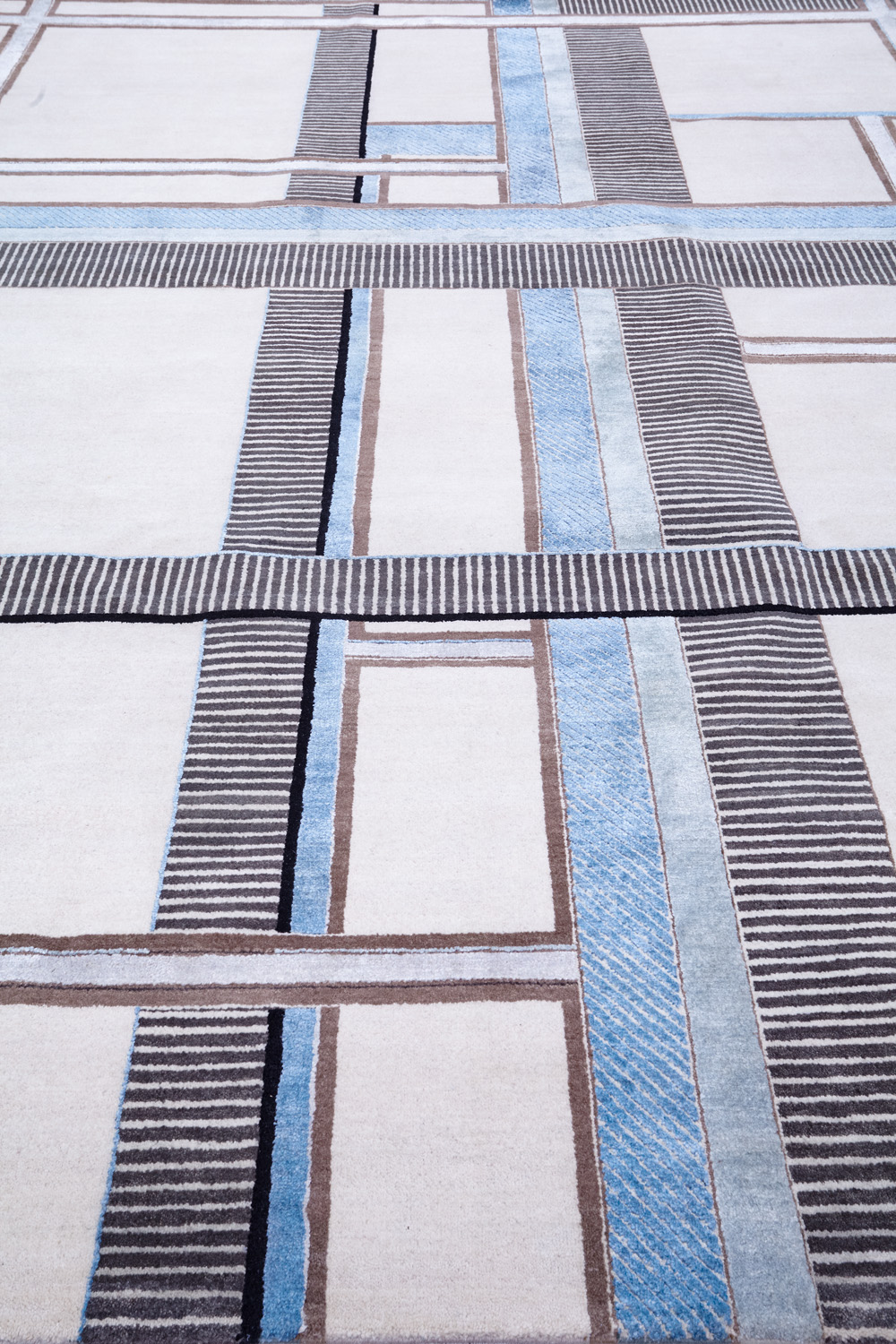 Крупные рисунки в виде линий и фигур на фактурной поверхности ковра превращаются в выразительные композиции. Они акцентируют на себе внимание и добавляют динамики в современный интерьер. Комбинации разных фигур и повторяющийся орнамент задают ритмическую основу пространству, привносят в него оригинальные оптические иллюзии.