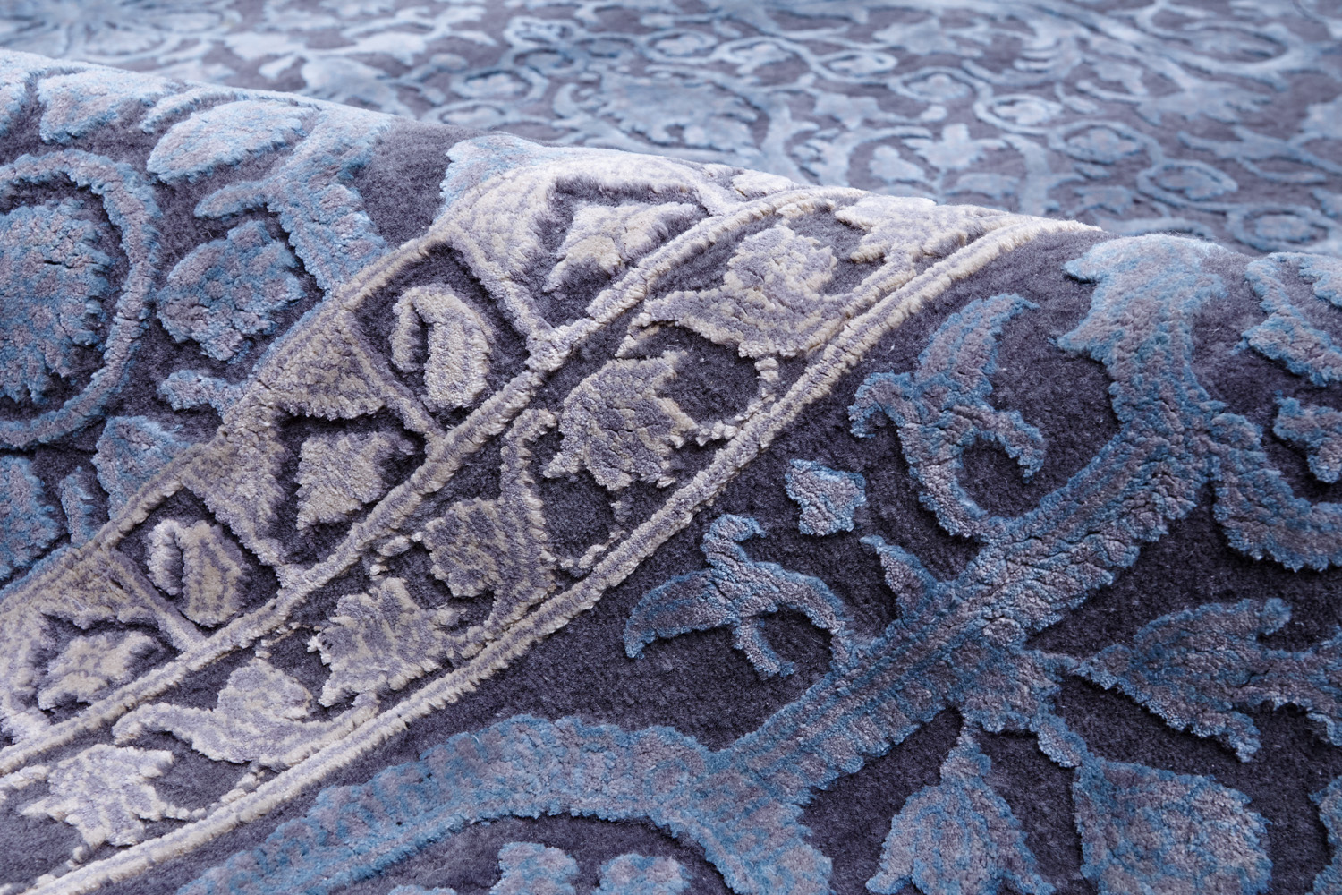 Каждый ковер в этой коллекции соткан вручную из шерсти и арт шёлка опытными индийскими мастерами.