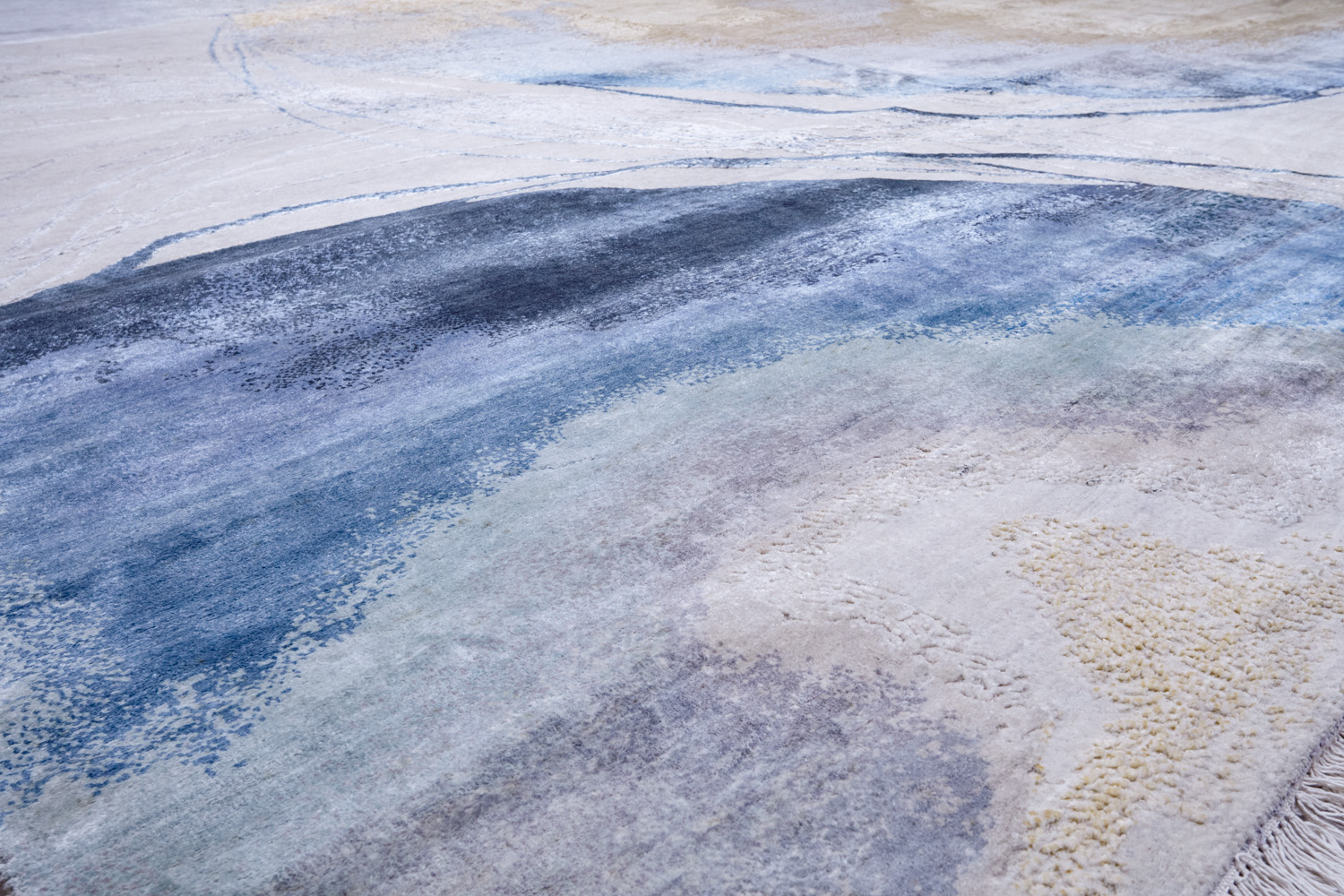 Дизайн ковров напоминает современные полотна художников-абстракционистов и производит столь же яркое и незабываемое впечатление в интерьере. Живописный эффект и необычная фактура зависят от выбора материала: натуральной шерсти, шёлка и от их сочетаний друг с другом. Ковры ткутся вручную в лучших мастерских Индии и Пакистана.