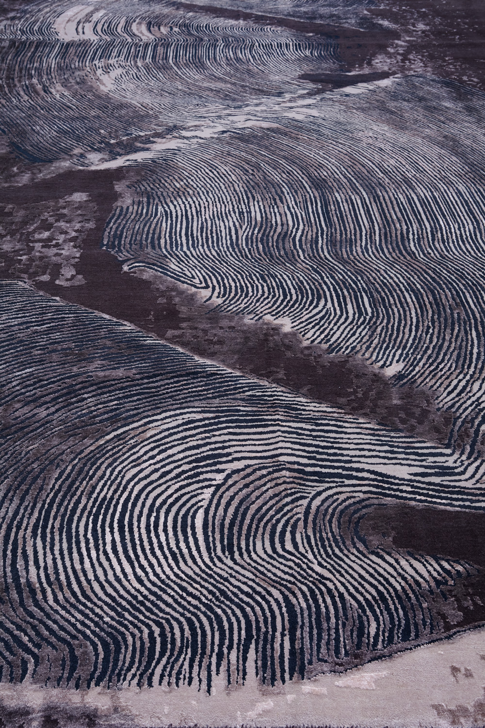 Дизайн ковров напоминает современные полотна художников-абстракционистов и производит столь же яркое и незабываемое впечатление в интерьере. Живописный эффект и необычная фактура зависят от выбора материала: натуральной шерсти, шёлка и от их сочетаний друг с другом. Ковры ткутся вручную в лучших мастерских Индии и Пакистана.