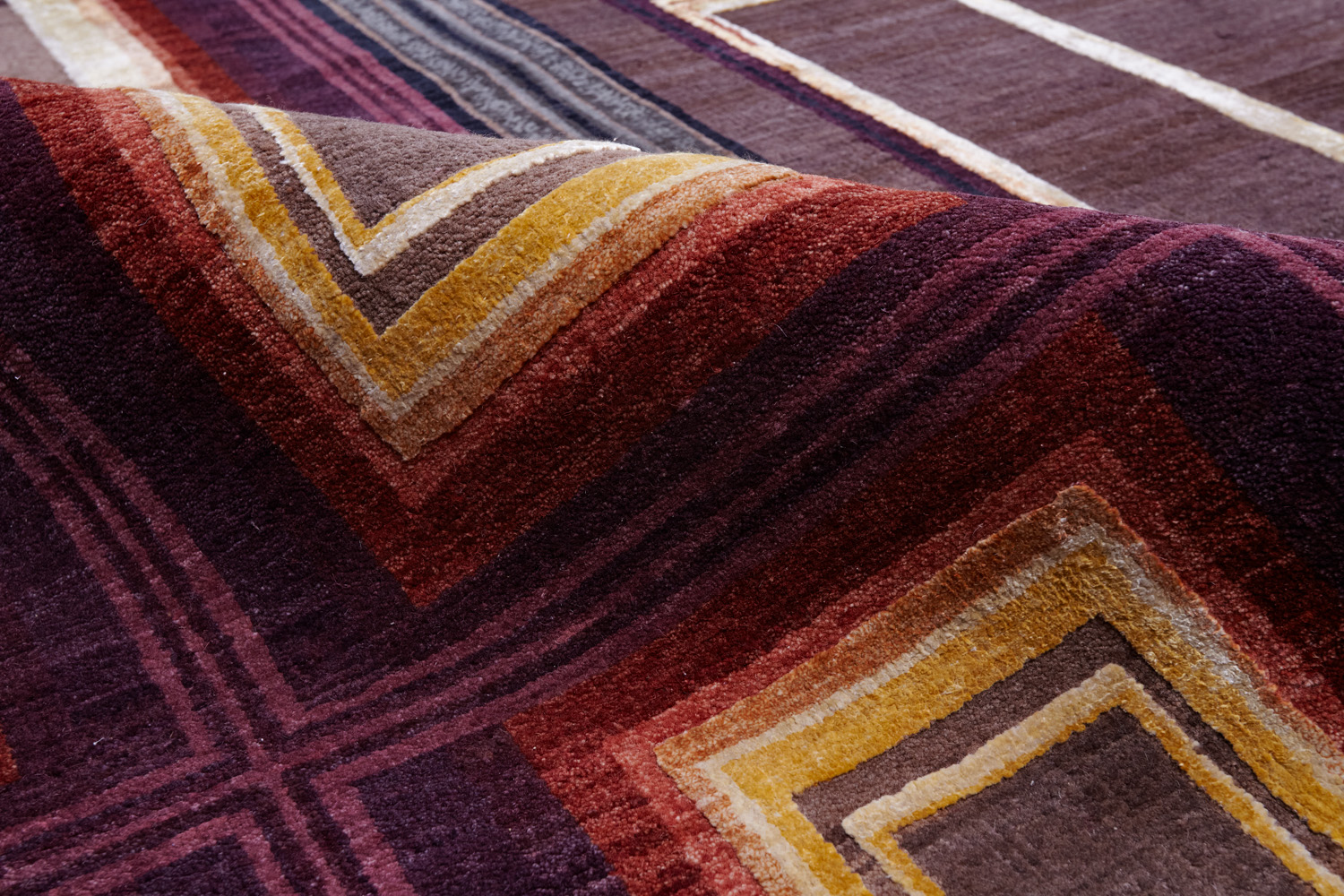 Крупные рисунки в виде линий и фигур на фактурной поверхности ковра превращаются в выразительные композиции. Они акцентируют на себе внимание и добавляют динамики в современный интерьер. Комбинации разных фигур и повторяющийся орнамент задают ритмическую основу пространству, привносят в него оригинальные оптические иллюзии.