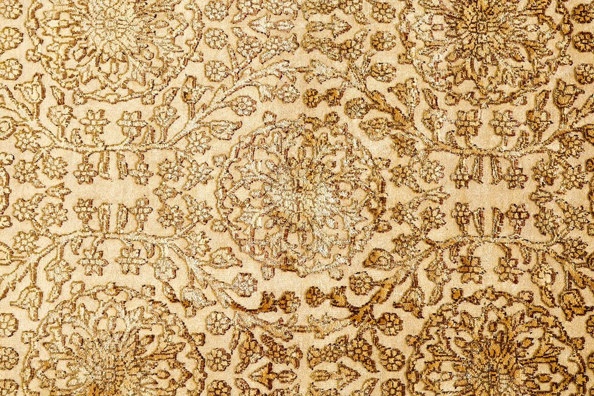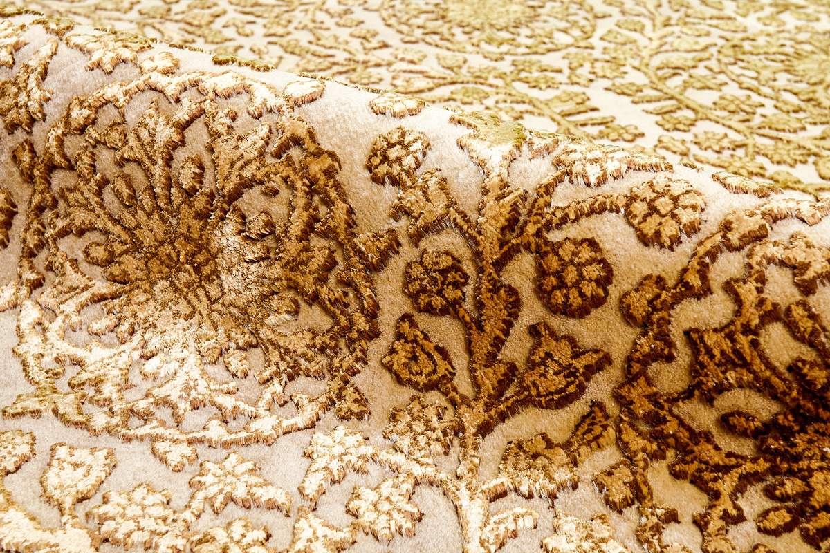 Каждый ковер в этой коллекции соткан вручную из шерсти и арт шёлка опытными индийскими мастерами.