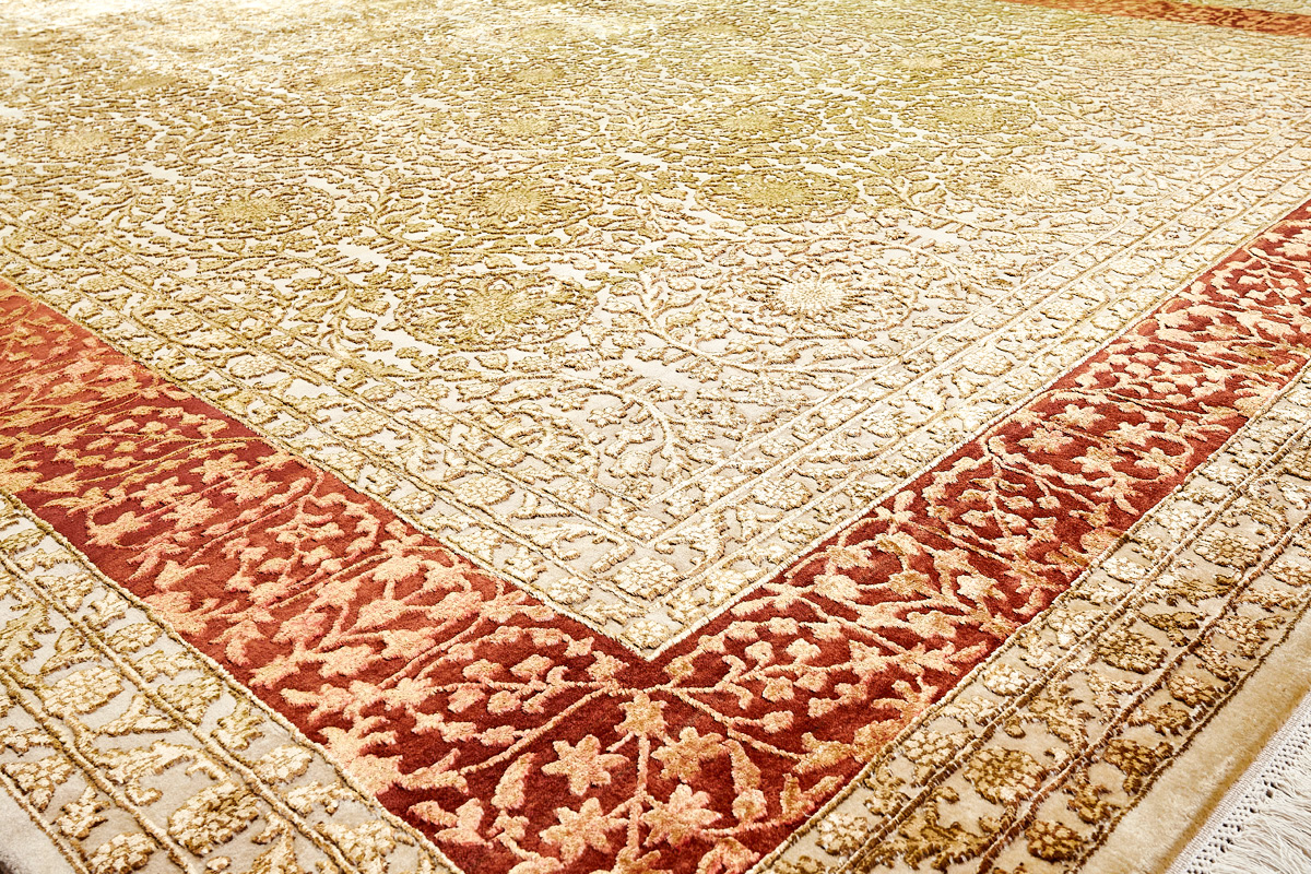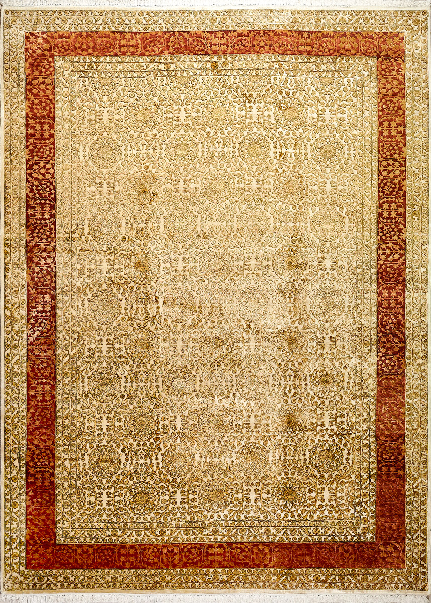 Более пяти веков назад в городе Агра зародилась знаменитая индийская школа ковроткачества, прославившаяся не меньше, чем расположенный здесь же Тадж-Махал. Мощное персидское влияние, помноженное на местный колорит, привело к появлению оригинальных орнаментов с богатыми растительными узорами — причудливым цветам, ветвям и листьям, разбросанным по всему полю ковра.