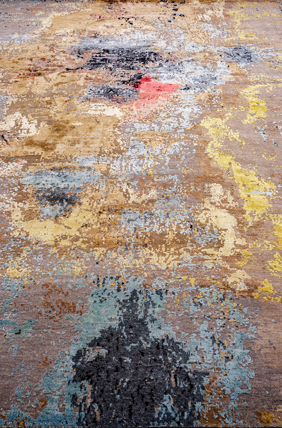 Дизайн ковров напоминает современные полотна художников-абстракционистов и производит столь же яркое и незабываемое впечатление в интерьере. Живописный эффект и необычная фактура зависят от выбора материала: натуральной шерсти, шёлка и от их сочетаний друг с другом. Ковры ткутся вручную в лучших мастерских Индии и Пакистана.