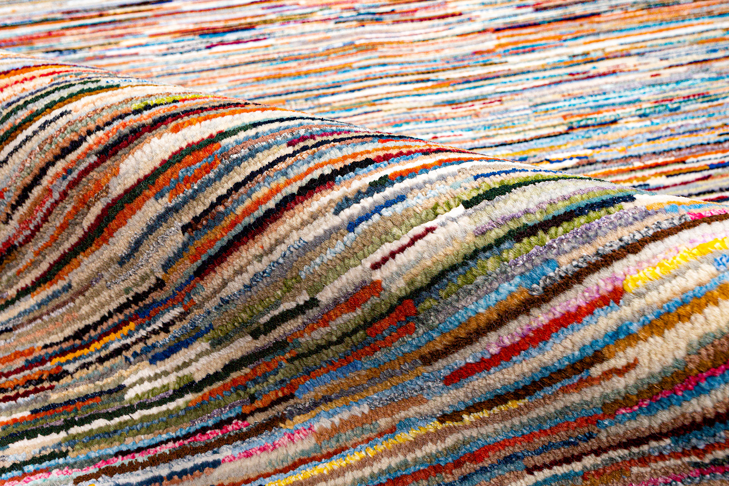 Дизайн ковров напоминает современные полотна художников-абстракционистов и производит столь же яркое и незабываемое впечатление в интерьере. Живописный эффект и необычная фактура зависят от выбора материала: натуральной шерсти, шёлка и от их сочетаний друг с другом. Ковры ткутся вручную в лучших мастерских Индии и Пакистана.