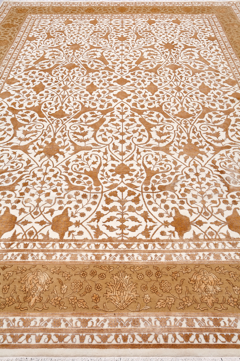 Более пяти веков назад в городе Агра зародилась знаменитая индийская школа ковроткачества, прославившаяся не меньше, чем расположенный здесь же Тадж-Махал. Мощное персидское влияние, помноженное на местный колорит, привело к появлению оригинальных орнаментов с богатыми растительными узорами — причудливым цветам, ветвям и листьям, разбросанным по всему полю ковра.