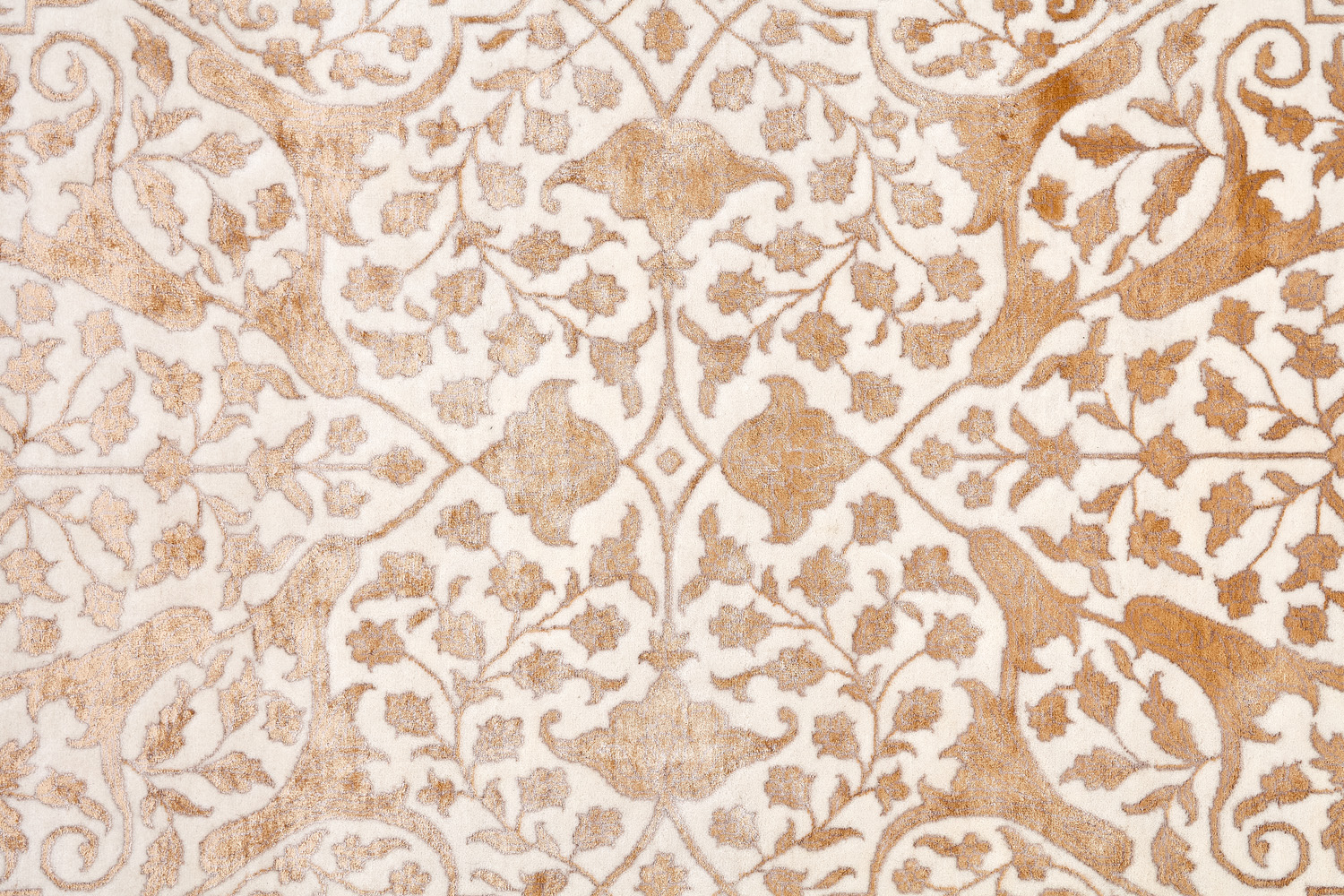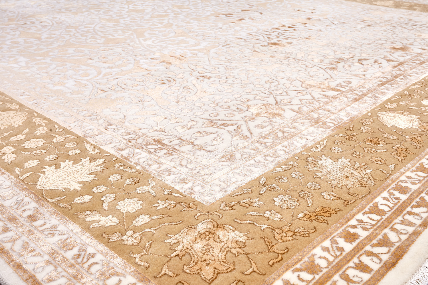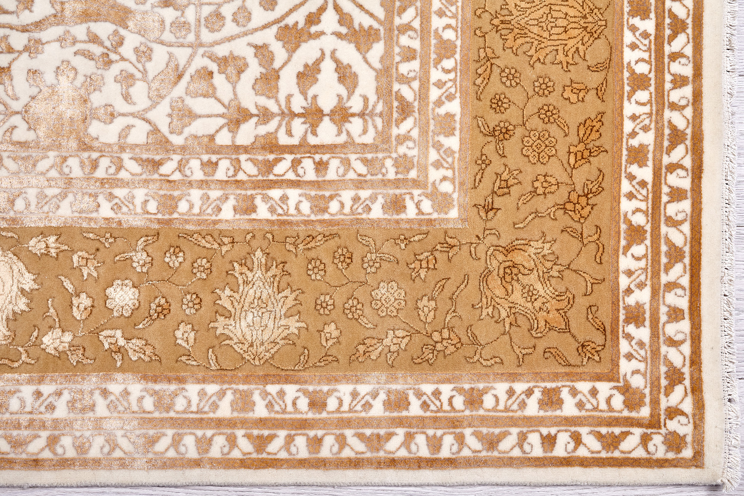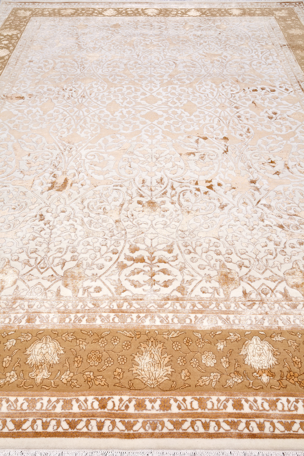 Каждый ковер в этой коллекции соткан вручную из шерсти и арт шёлка опытными индийскими мастерами.
