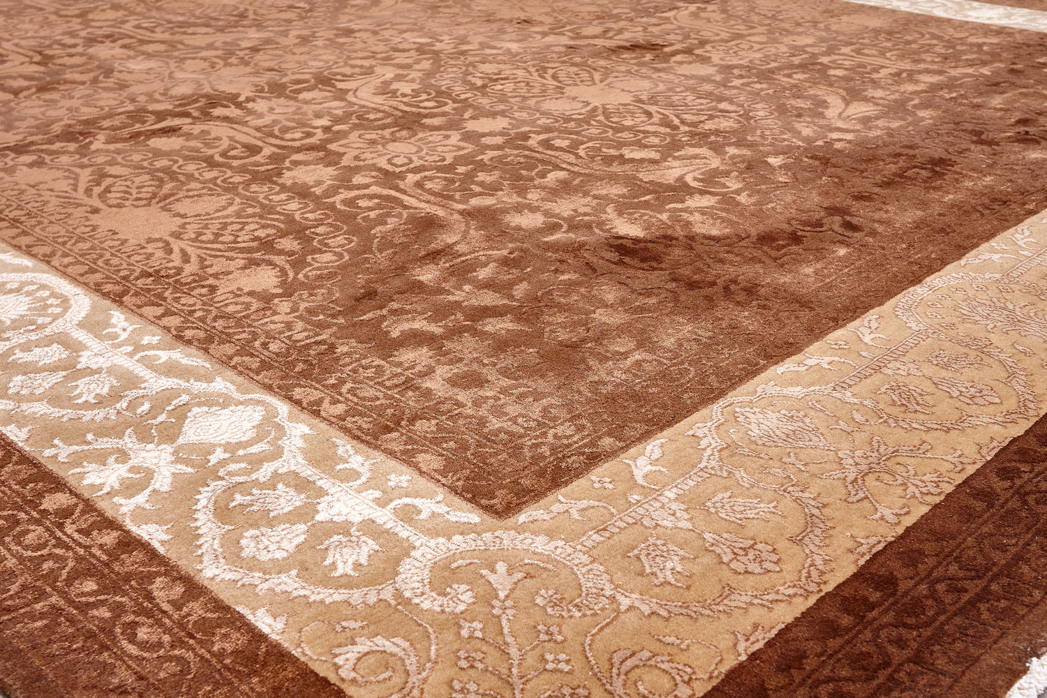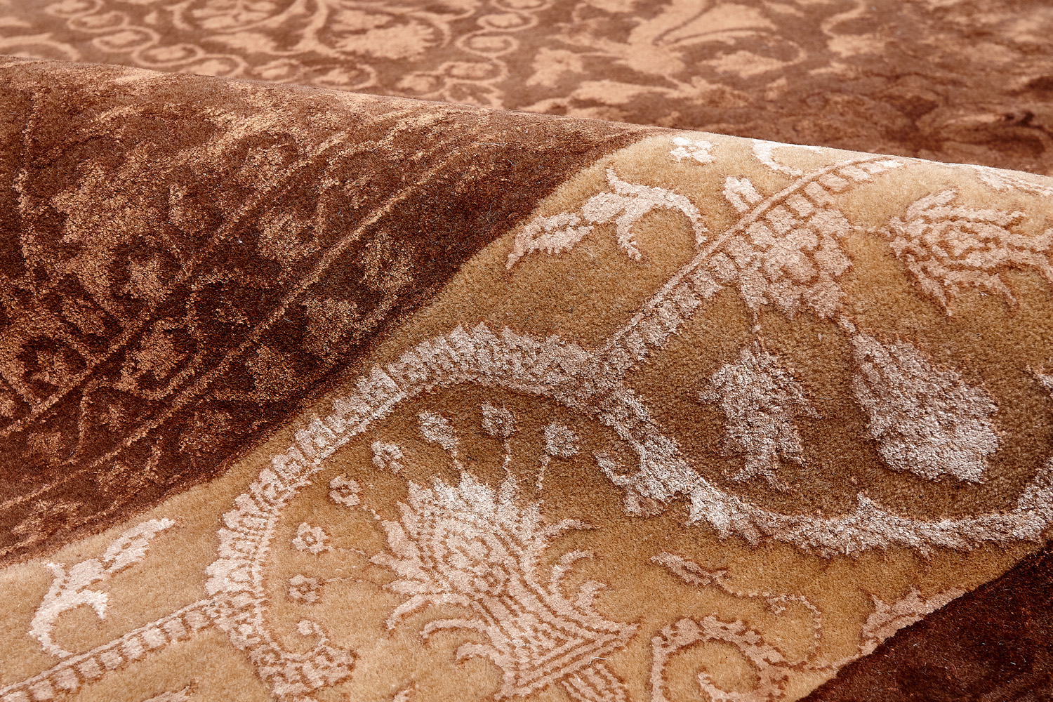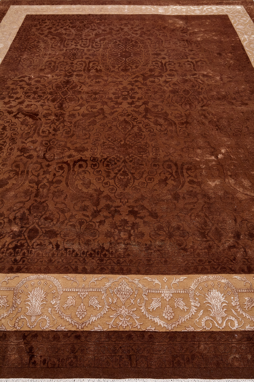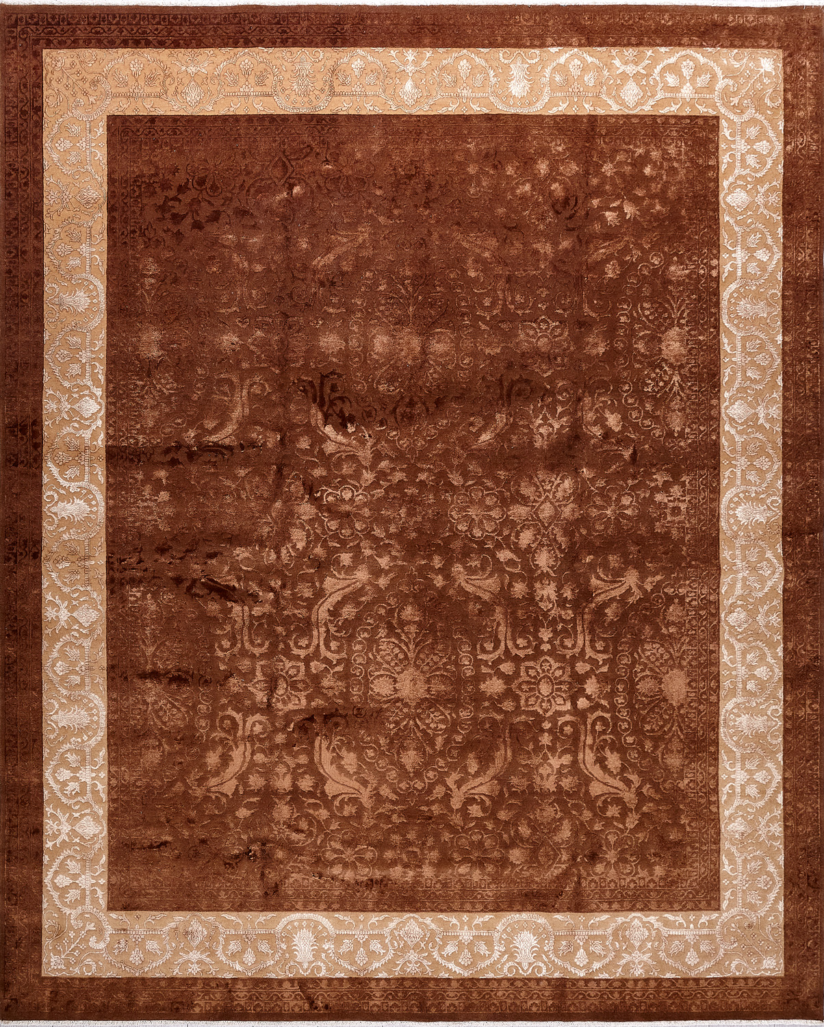 Каждый ковер в этой коллекции соткан вручную из шерсти и арт шёлка опытными индийскими мастерами.