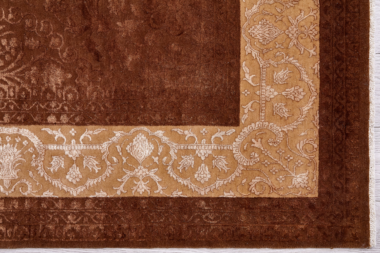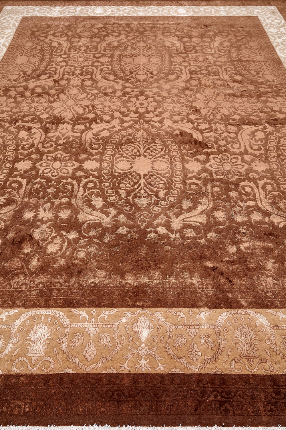Более пяти веков назад в городе Агра зародилась знаменитая индийская школа ковроткачества, прославившаяся не меньше, чем расположенный здесь же Тадж-Махал. Мощное персидское влияние, помноженное на местный колорит, привело к появлению оригинальных орнаментов с богатыми растительными узорами — причудливым цветам, ветвям и листьям, разбросанным по всему полю ковра.