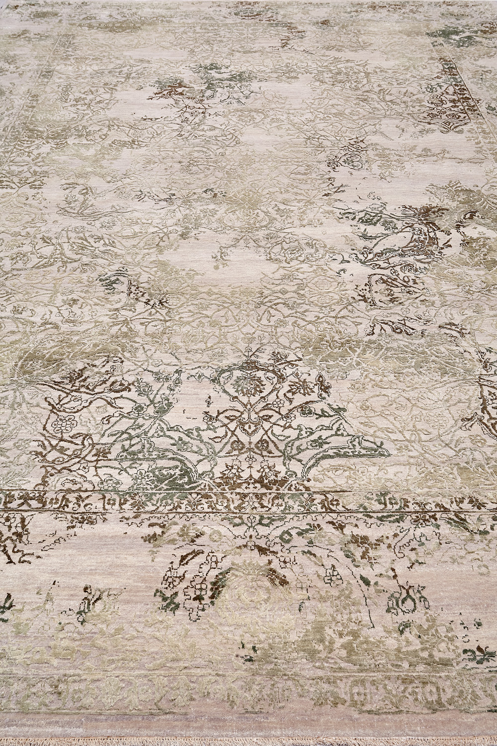 Время и природа — два главных стержня. Впечатление такое, что краски словно стёрлись, а если они и сохраняют яркость, то рисунок сохранился не весь, какие‑то фрагменты утрачены — такова типология этого столь актуального сегодня ковра ручной работы из коллекции illusion.