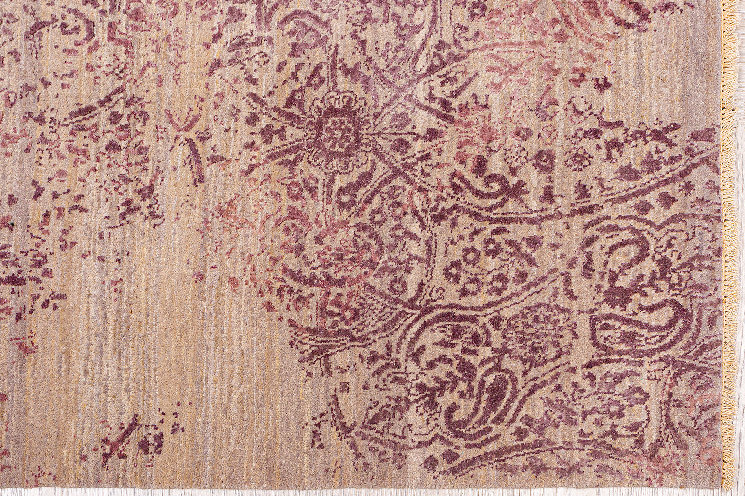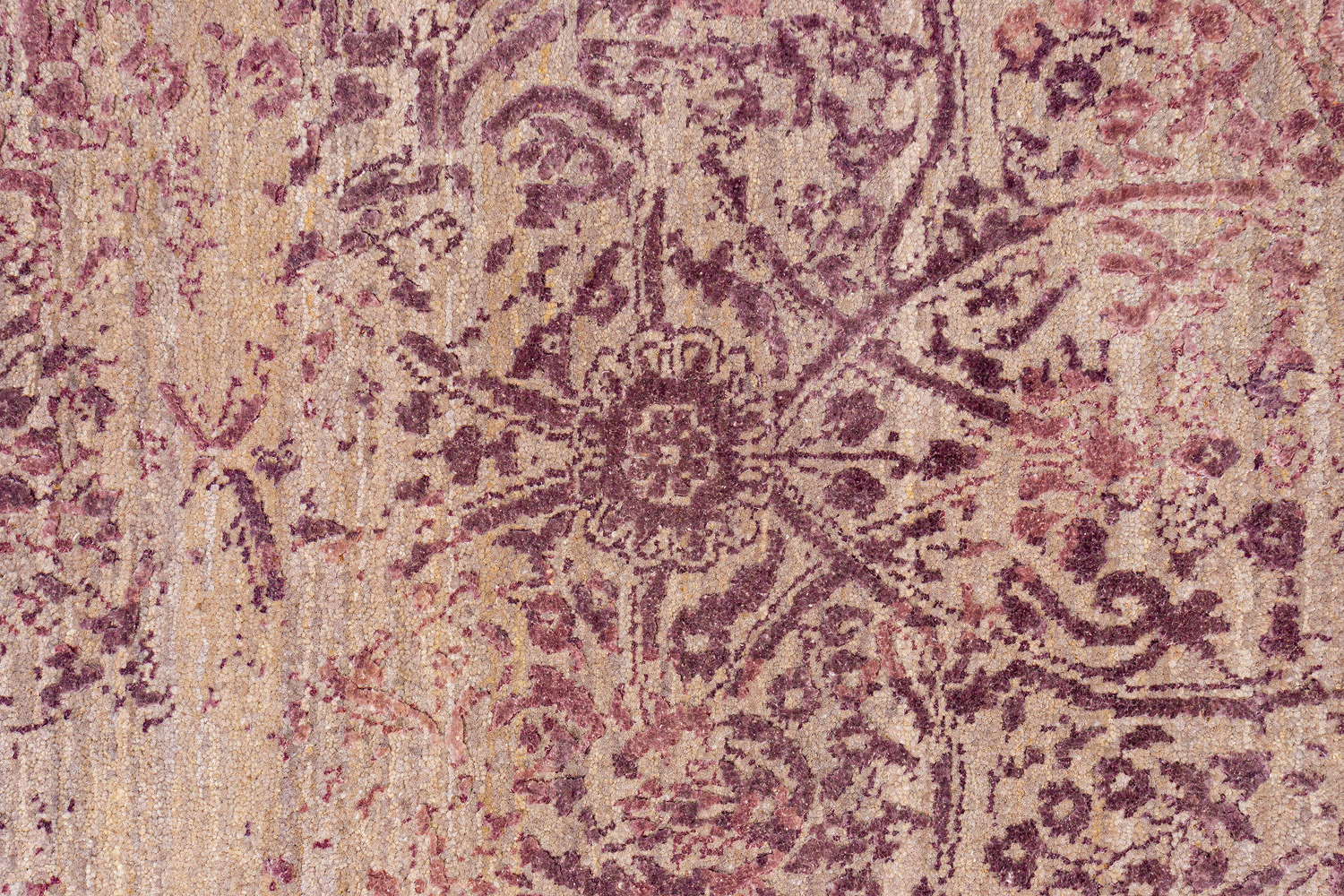 Такой эффект достигается за счет специальной техники плетения, а также обработки, которой подвергают ковры, чтобы они выглядели как антикварные — то есть дорого, элегантно и модно.