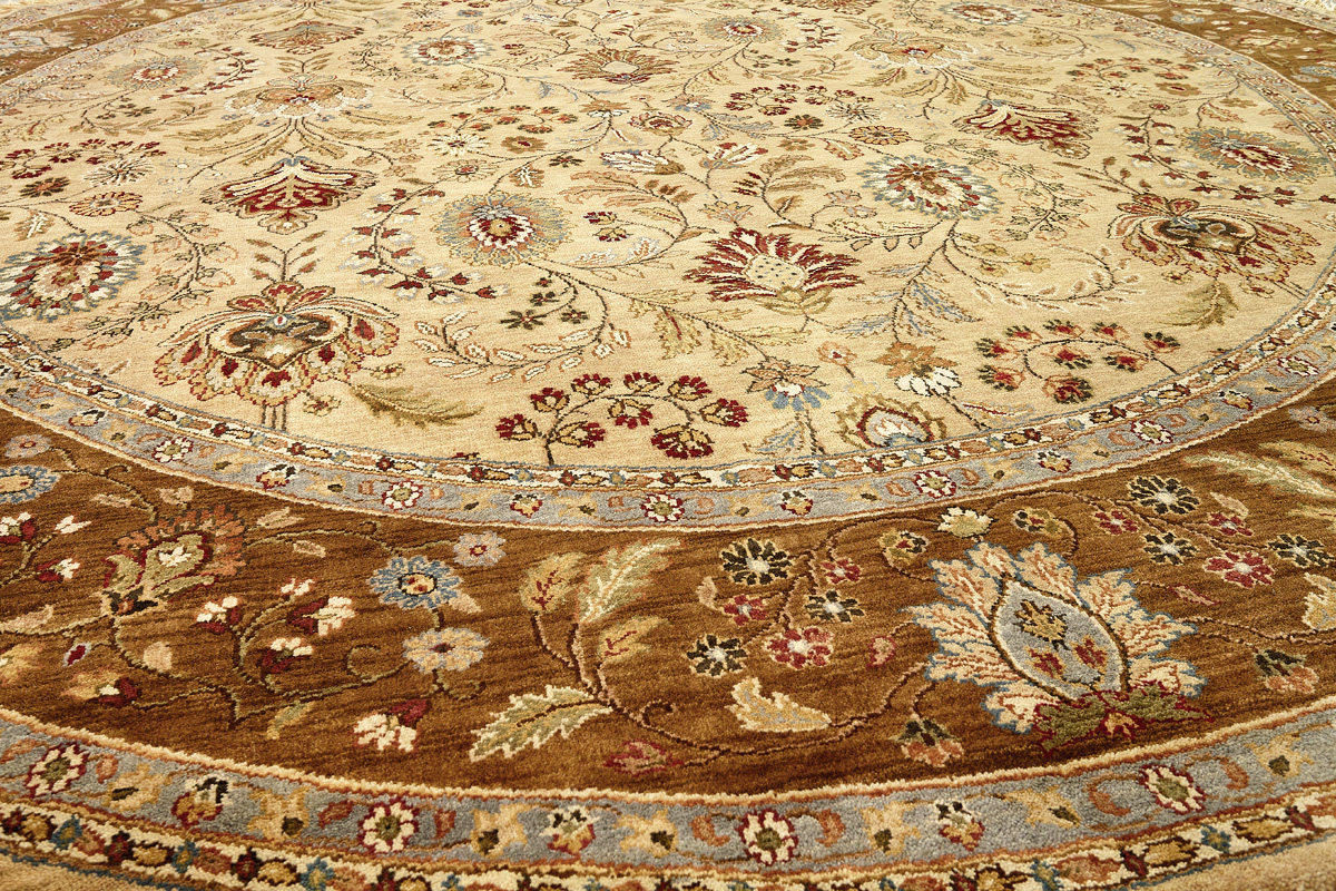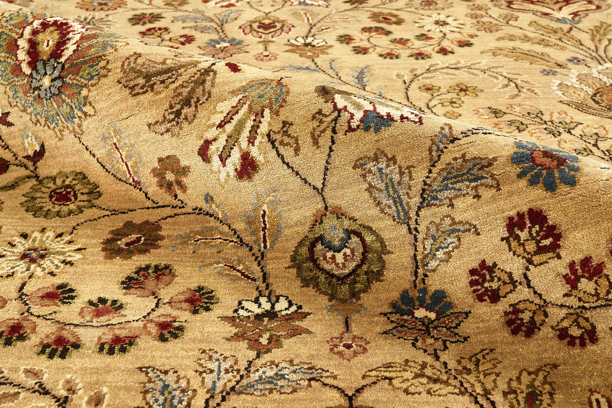 Более пяти веков назад в городе Агра зародилась знаменитая индийская школа ковроткачества, прославившаяся не меньше, чем расположенный здесь же Тадж-Махал. Мощное персидское влияние, помноженное на местный колорит, привело к появлению оригинальных орнаментов с богатыми растительными узорами — причудливым цветам, ветвям и листьям, разбросанным по всему полю ковра.