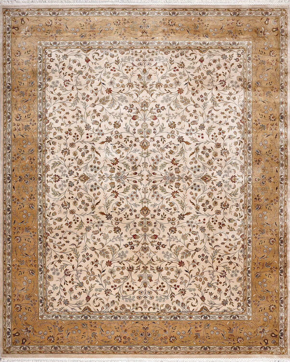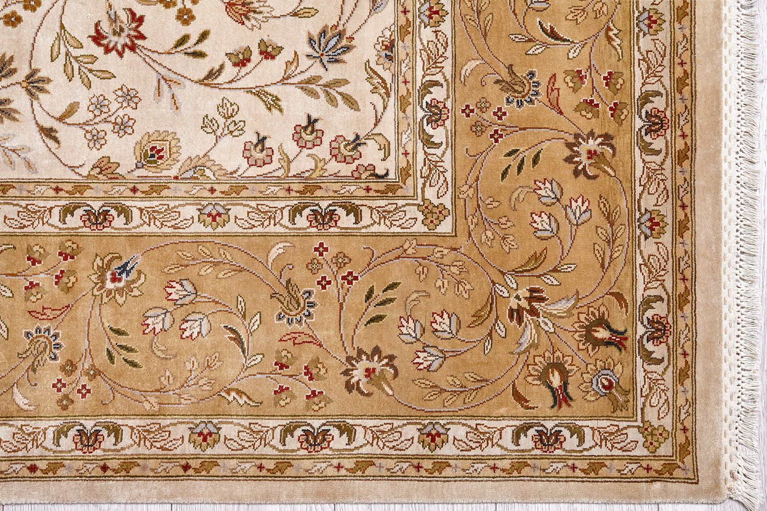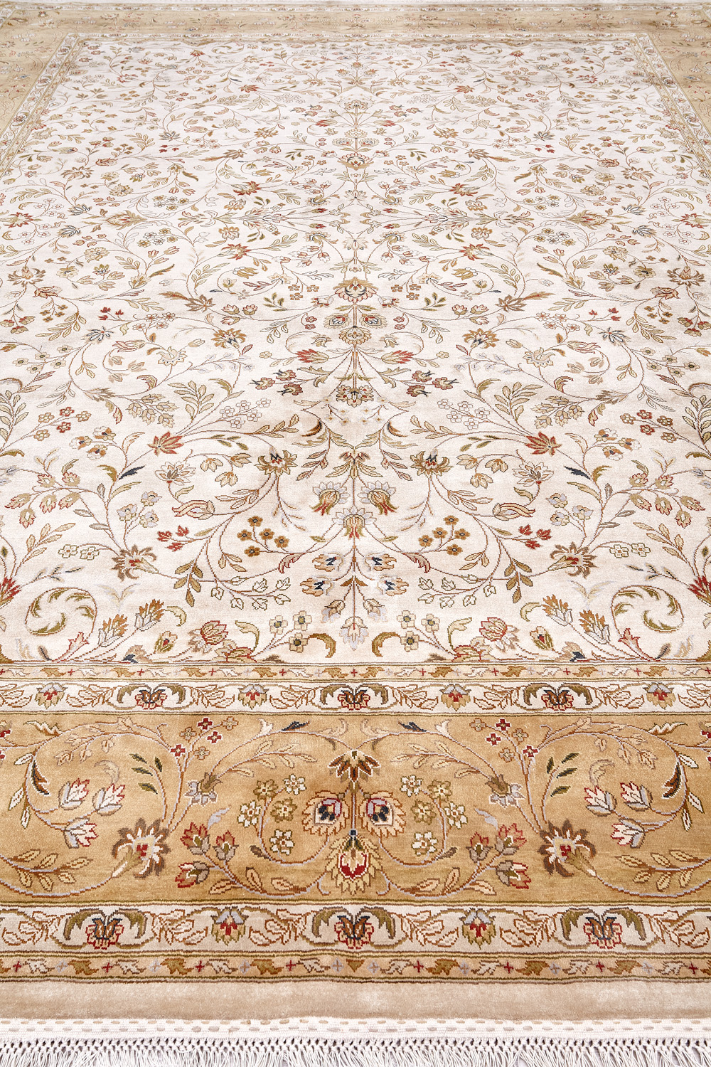 Каждый ковер в этой коллекции соткан вручную из шерсти и арт шёлка опытными индийскими мастерами.