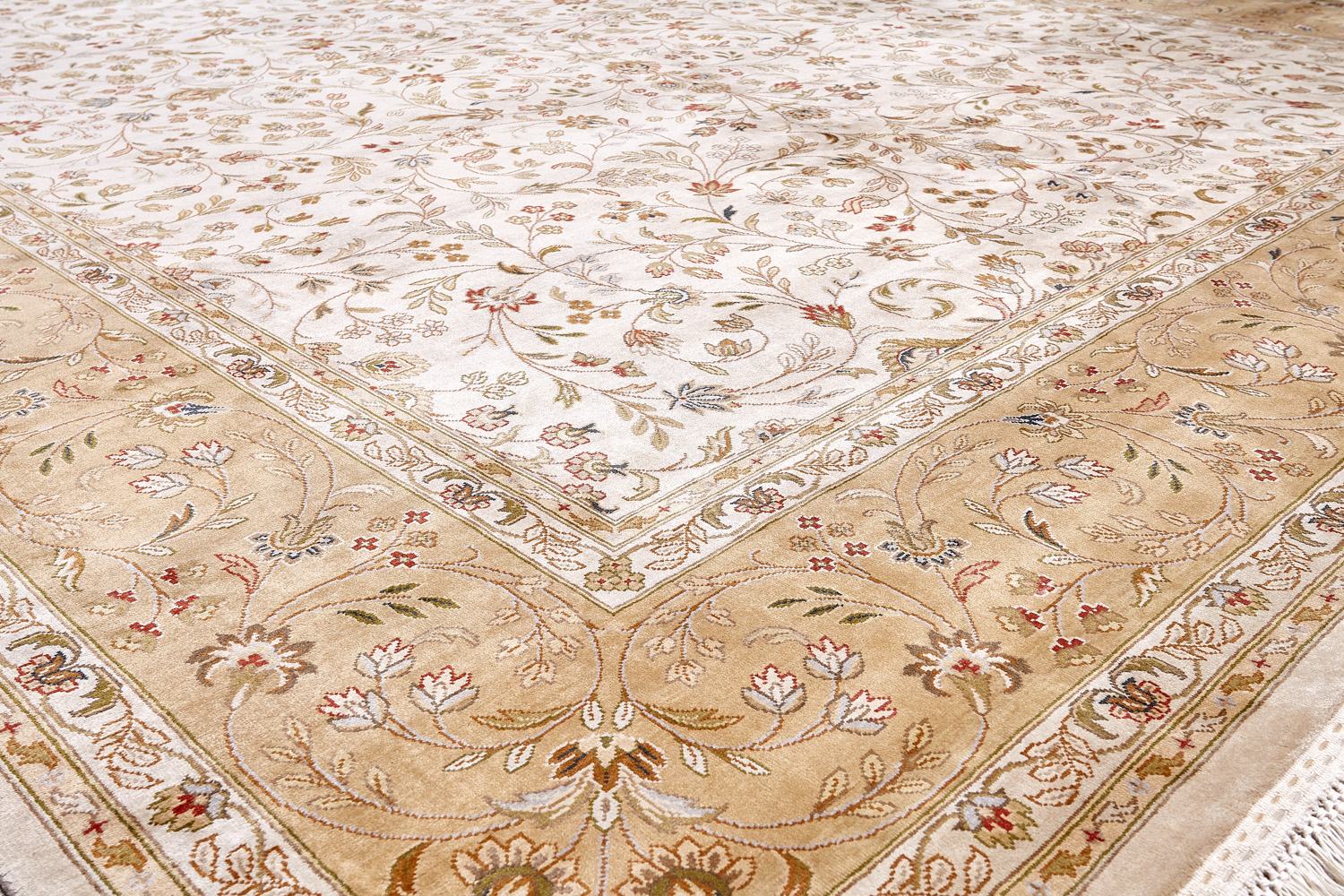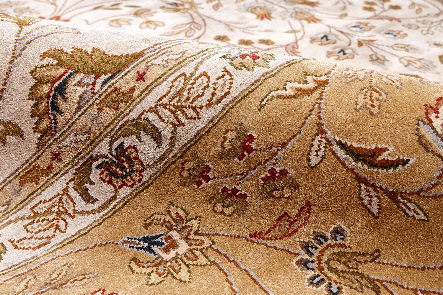Более пяти веков назад в городе Агра зародилась знаменитая индийская школа ковроткачества, прославившаяся не меньше, чем расположенный здесь же Тадж-Махал. Мощное персидское влияние, помноженное на местный колорит, привело к появлению оригинальных орнаментов с богатыми растительными узорами — причудливым цветам, ветвям и листьям, разбросанным по всему полю ковра.