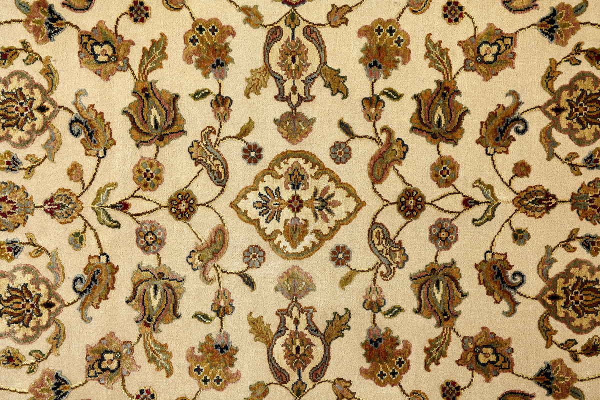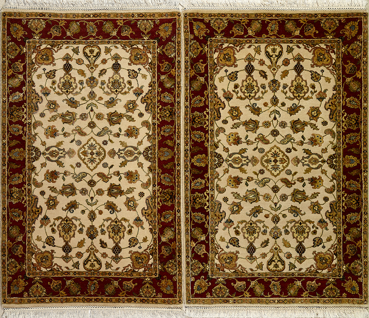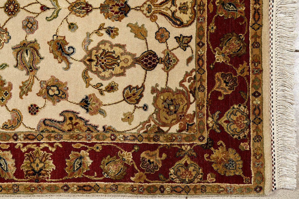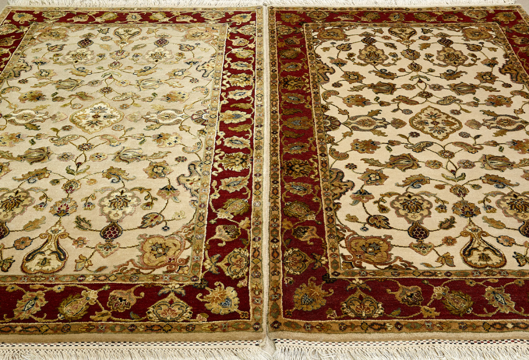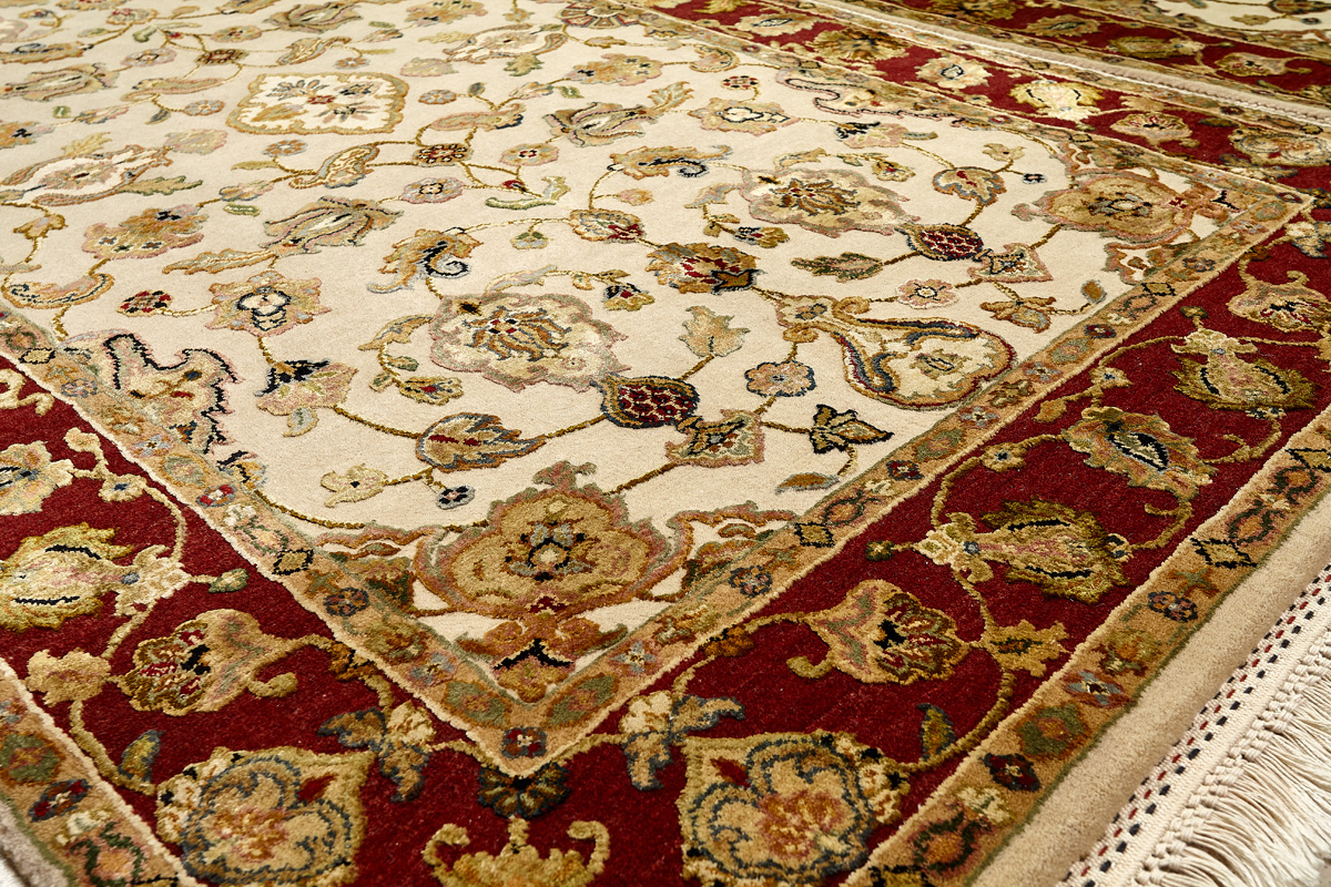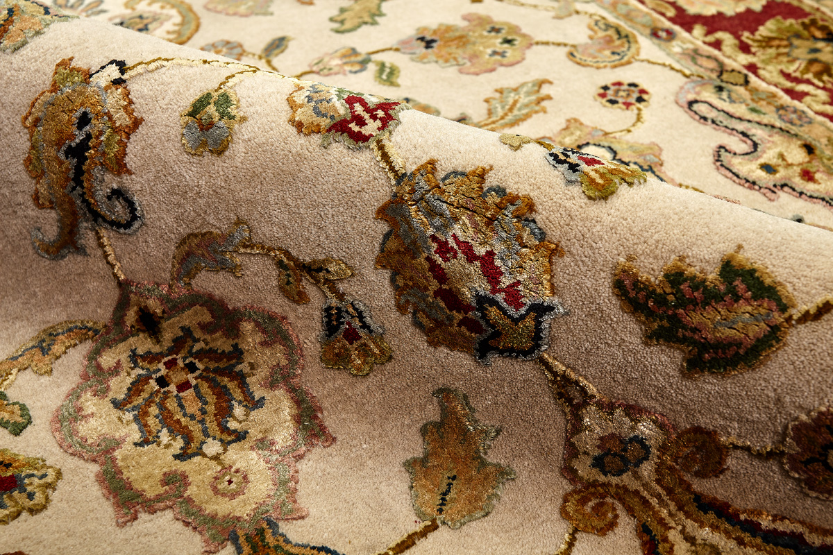 Более пяти веков назад в городе Агра зародилась знаменитая индийская школа ковроткачества, прославившаяся не меньше, чем расположенный здесь же Тадж-Махал. Мощное персидское влияние, помноженное на местный колорит, привело к появлению оригинальных орнаментов с богатыми растительными узорами — причудливым цветам, ветвям и листьям, разбросанным по всему полю ковра.