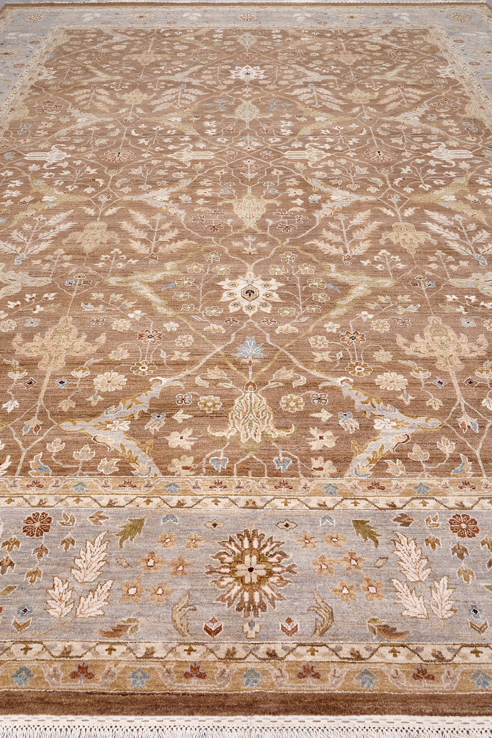 Более пяти веков назад в городе Агра зародилась знаменитая индийская школа ковроткачества, прославившаяся не меньше, чем расположенный здесь же Тадж-Махал. Мощное персидское влияние, помноженное на местный колорит, привело к появлению оригинальных орнаментов с богатыми растительными узорами — причудливым цветам, ветвям и листьям, разбросанным по всему полю ковра.