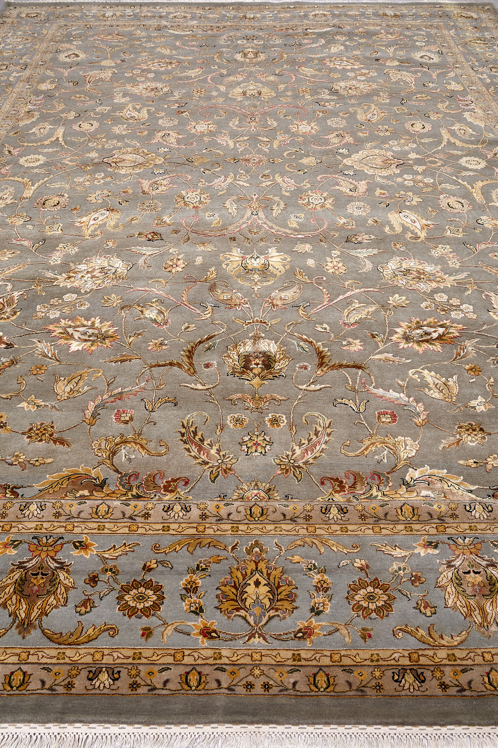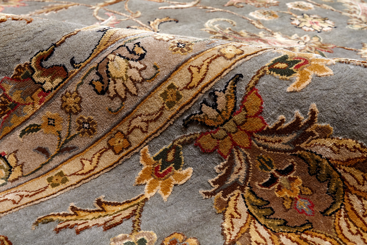 Более пяти веков назад в городе Агра зародилась знаменитая индийская школа ковроткачества, прославившаяся не меньше, чем расположенный здесь же Тадж-Махал. Мощное персидское влияние, помноженное на местный колорит, привело к появлению оригинальных орнаментов с богатыми растительными узорами — причудливым цветам, ветвям и листьям, разбросанным по всему полю ковра.