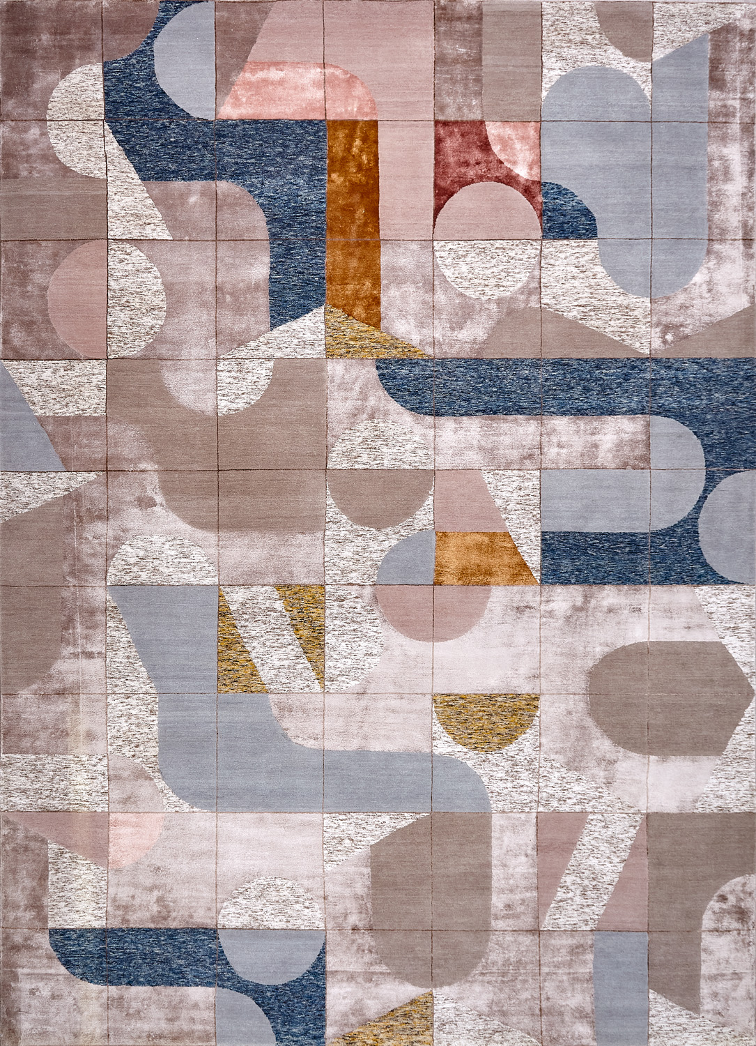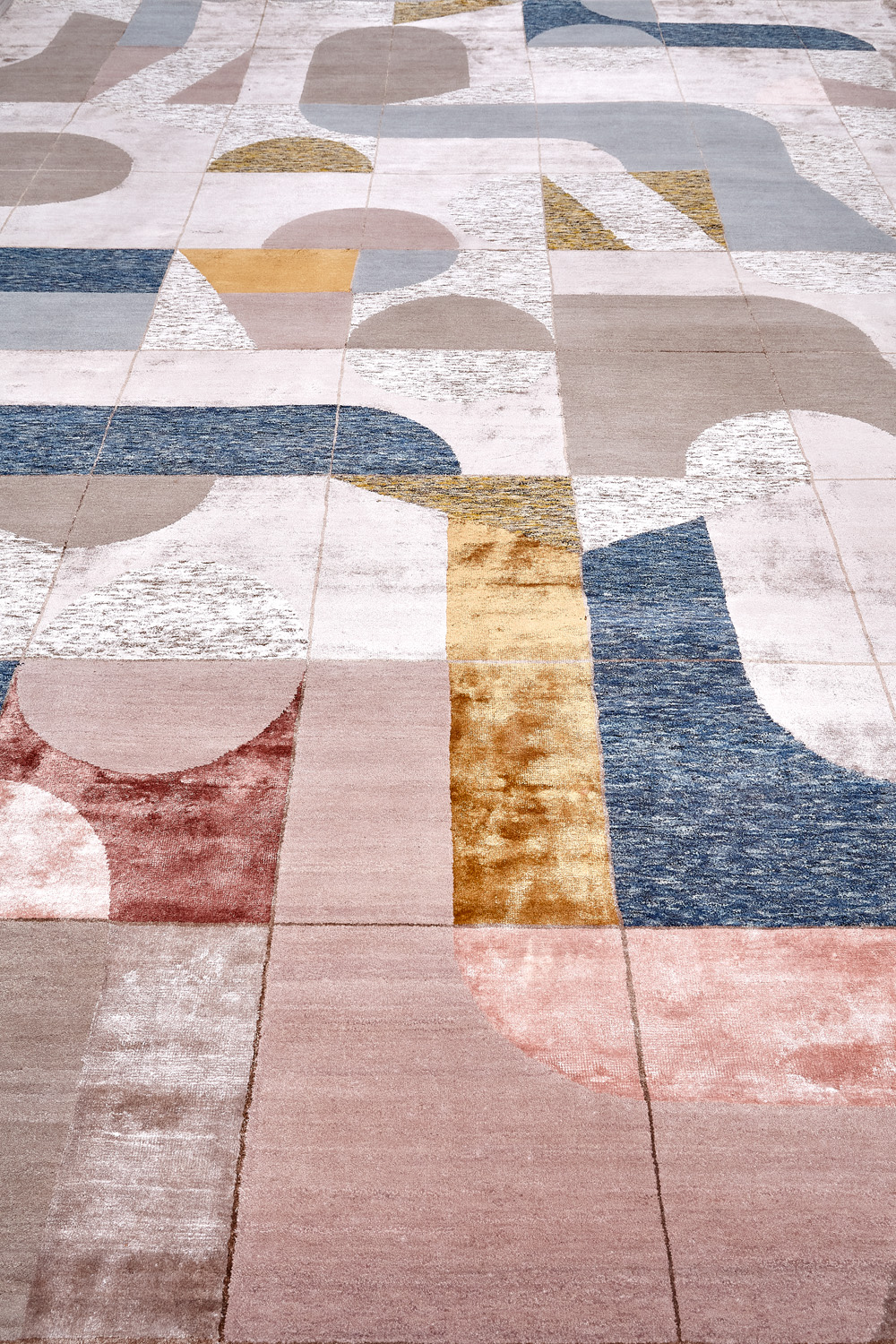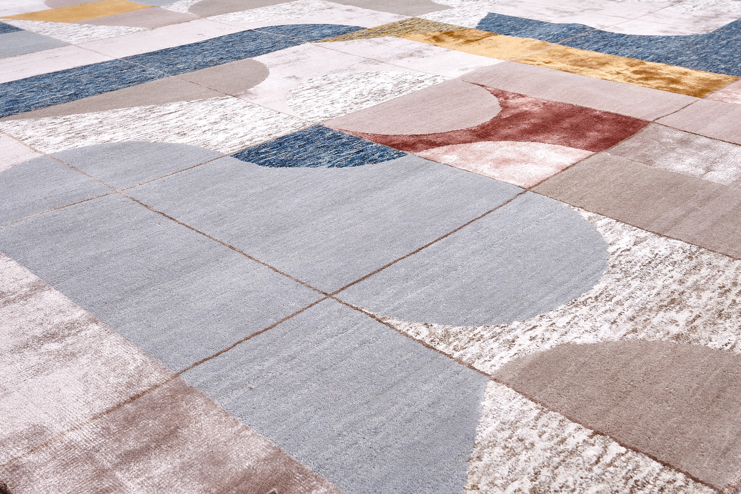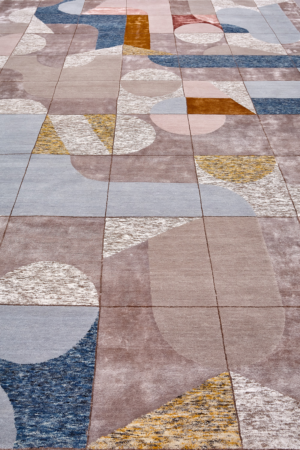 Крупные рисунки в виде линий и фигур на фактурной поверхности ковра превращаются в выразительные композиции. Они акцентируют на себе внимание и добавляют динамики в современный интерьер. Комбинации разных фигур и повторяющийся орнамент задают ритмическую основу пространству, привносят в него оригинальные оптические иллюзии.