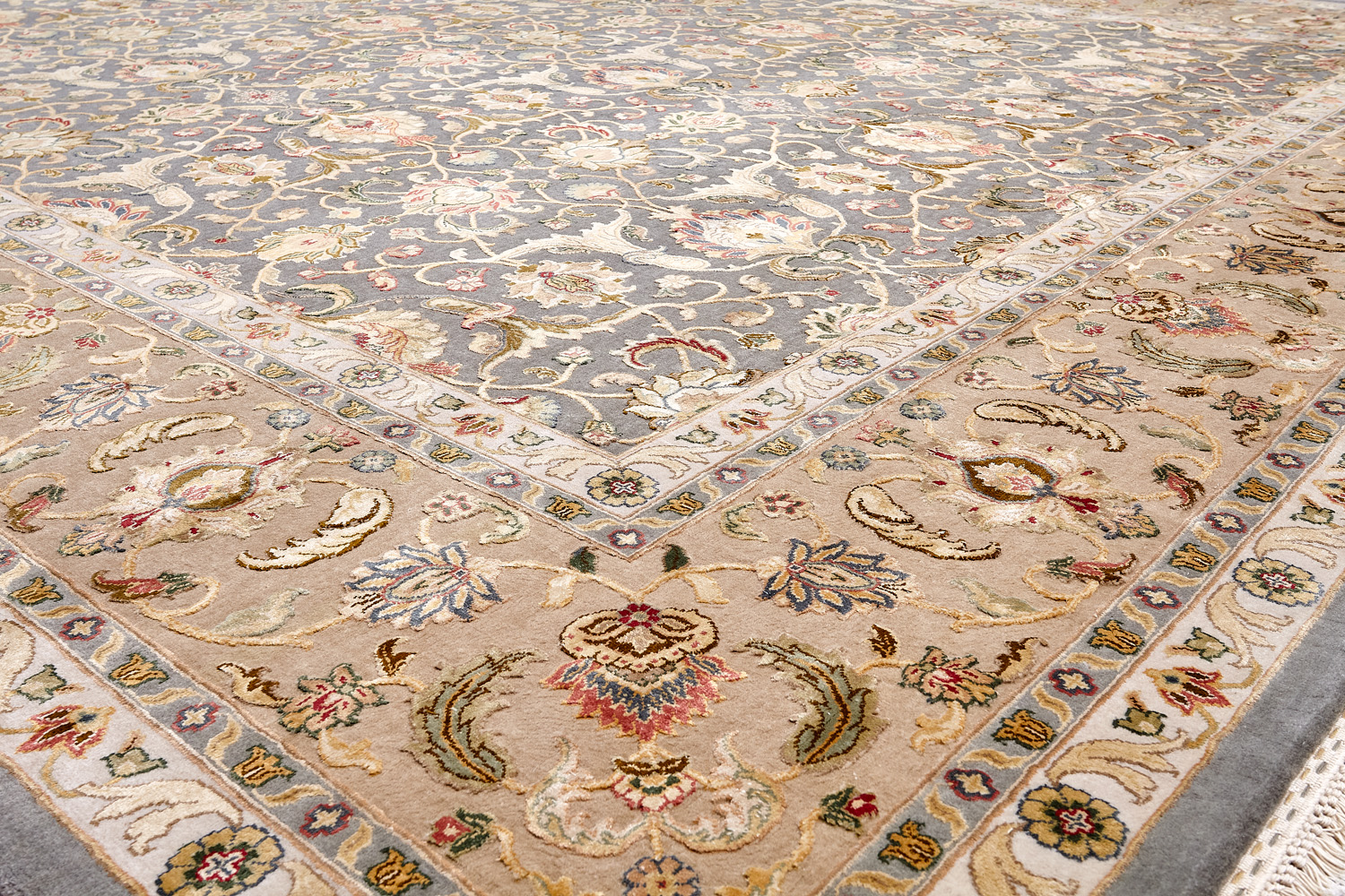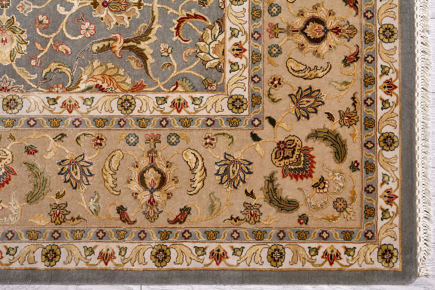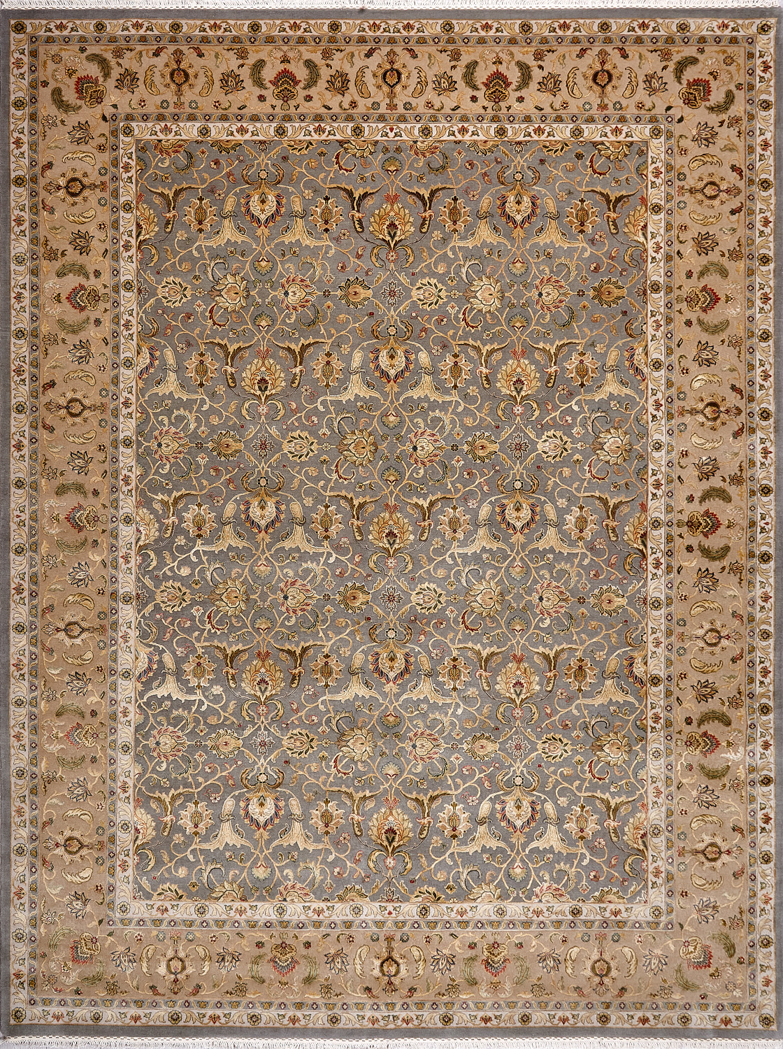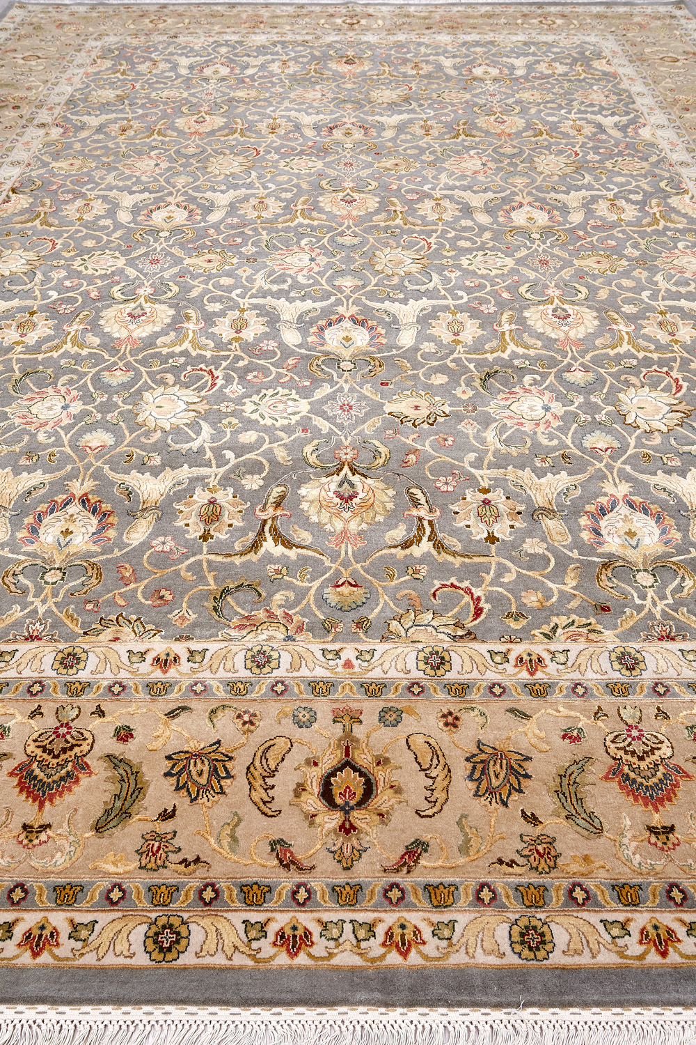 Более пяти веков назад в городе Агра зародилась знаменитая индийская школа ковроткачества, прославившаяся не меньше, чем расположенный здесь же Тадж-Махал. Мощное персидское влияние, помноженное на местный колорит, привело к появлению оригинальных орнаментов с богатыми растительными узорами — причудливым цветам, ветвям и листьям, разбросанным по всему полю ковра.