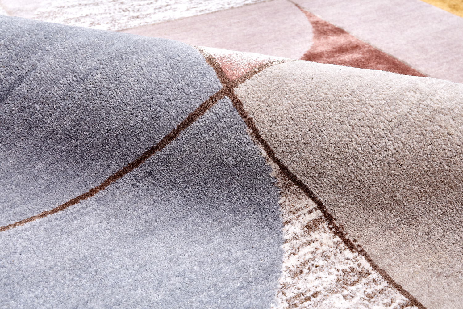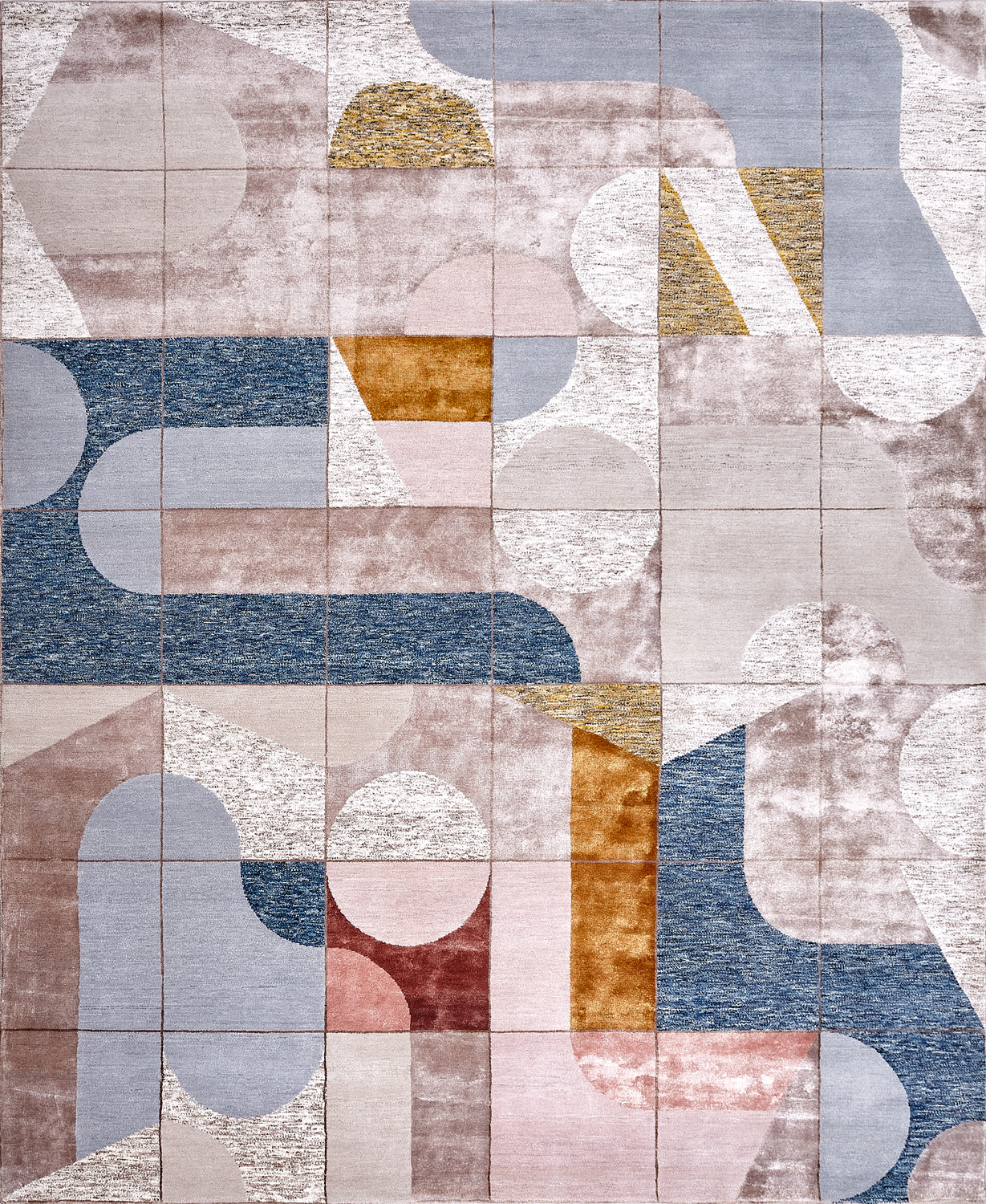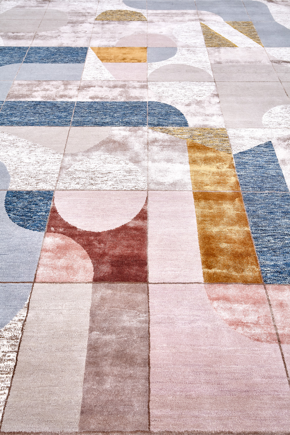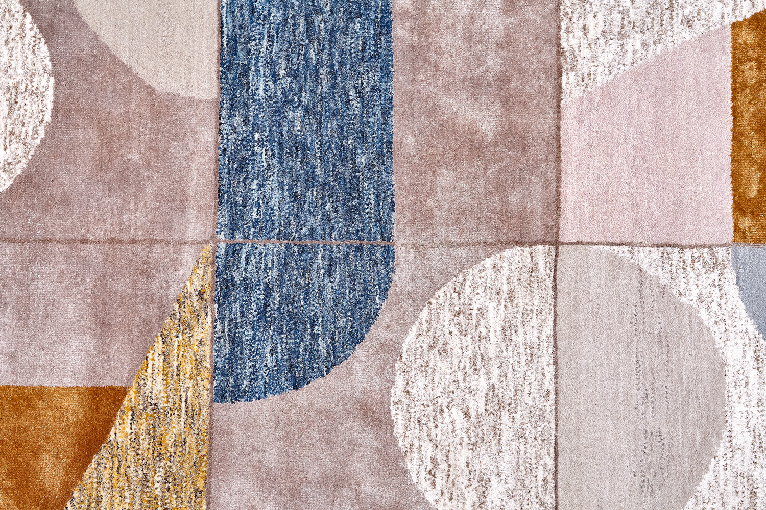 Крупные рисунки в виде линий и фигур на фактурной поверхности ковра превращаются в выразительные композиции. Они акцентируют на себе внимание и добавляют динамики в современный интерьер. Комбинации разных фигур и повторяющийся орнамент задают ритмическую основу пространству, привносят в него оригинальные оптические иллюзии.
