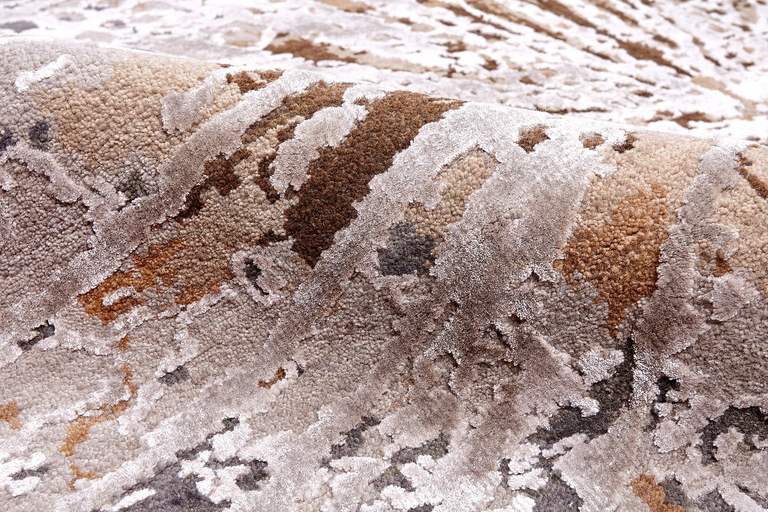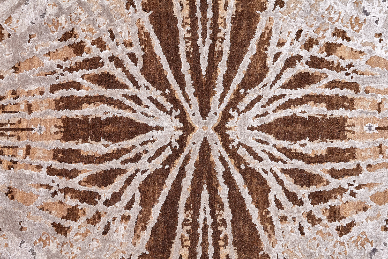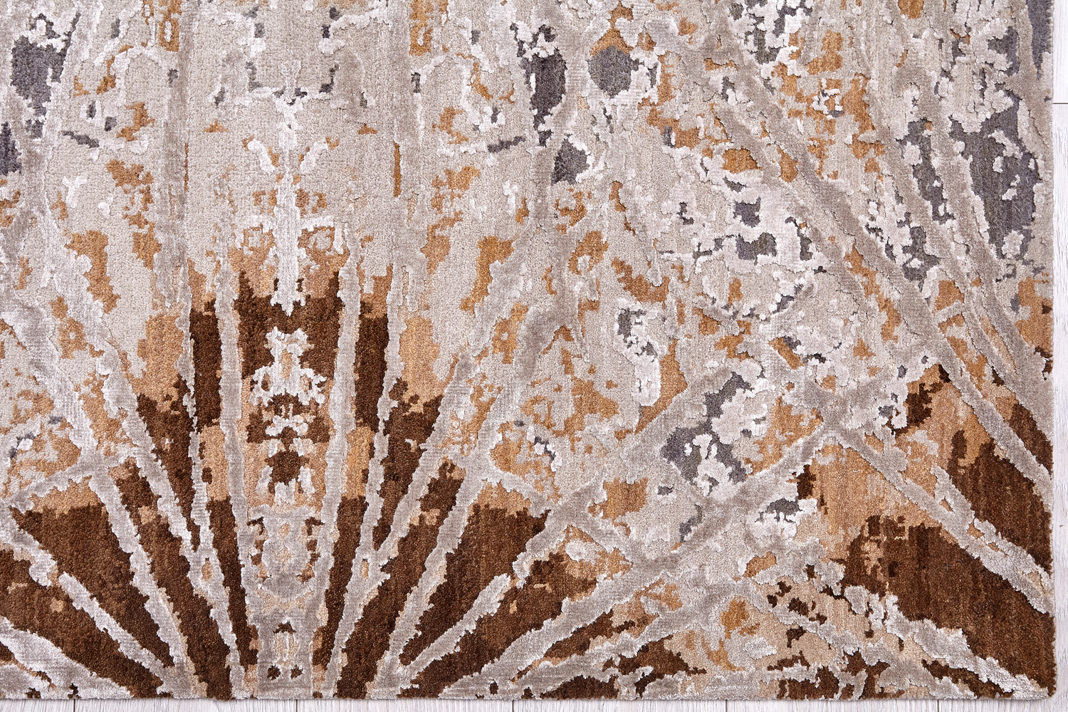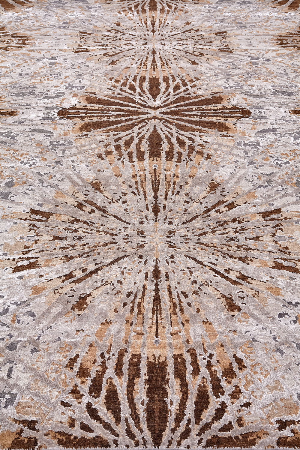 Дизайн ковров напоминает современные полотна художников-абстракционистов и производит столь же яркое и незабываемое впечатление в интерьере. Живописный эффект и необычная фактура зависят от выбора материала: натуральной шерсти, шёлка и от их сочетаний друг с другом. Ковры ткутся вручную в лучших мастерских Индии и Пакистана.
