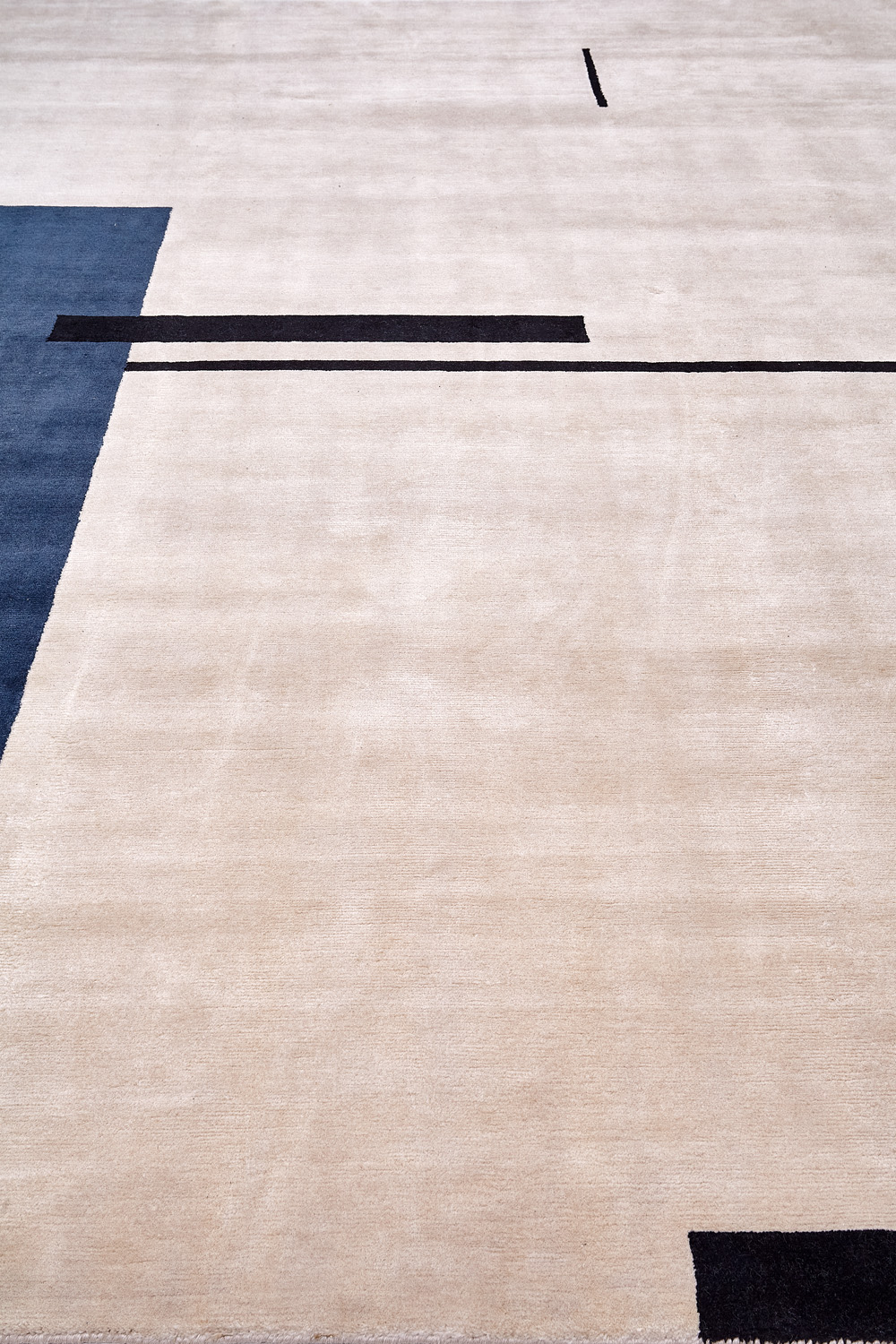 Крупные рисунки в виде линий и фигур на фактурной поверхности ковра превращаются в выразительные композиции. Они акцентируют на себе внимание и добавляют динамики в современный интерьер. Комбинации разных фигур и повторяющийся орнамент задают ритмическую основу пространству, привносят в него оригинальные оптические иллюзии.