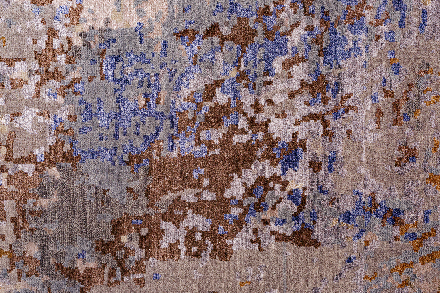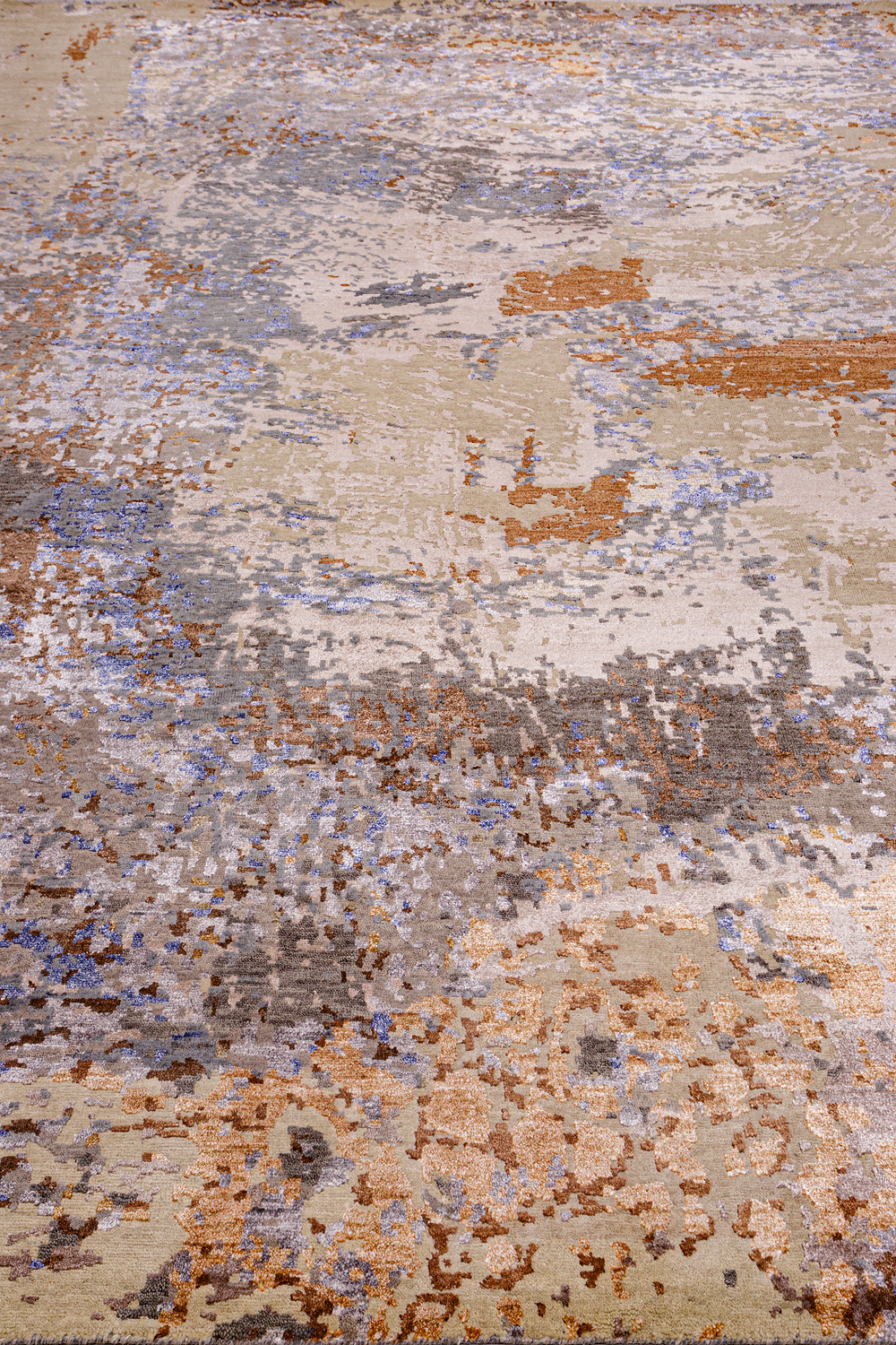 Дизайн ковров напоминает современные полотна художников-абстракционистов и производит столь же яркое и незабываемое впечатление в интерьере. Живописный эффект и необычная фактура зависят от выбора материала: натуральной шерсти, шёлка и от их сочетаний друг с другом. Ковры ткутся вручную в лучших мастерских Индии и Пакистана.
