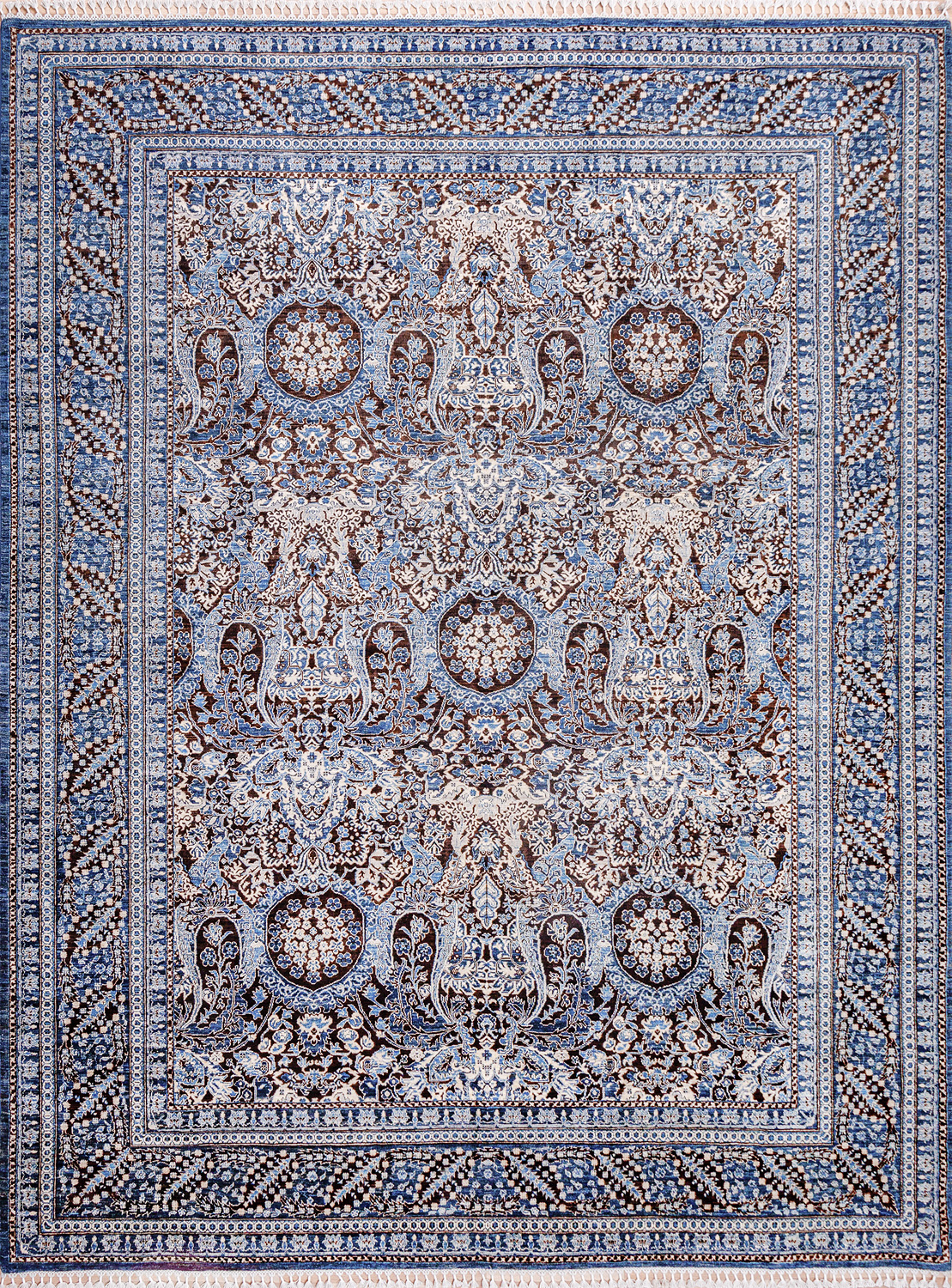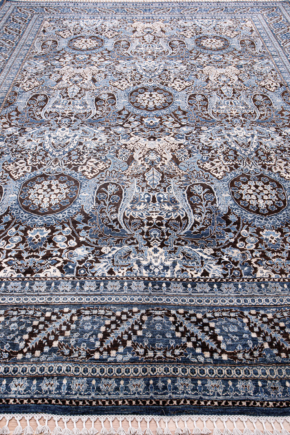 Родина этих ковров Индия и Пакистан. Чтобы создать такое произведение искусства у мастеров уходит от одного года до двух лет. Плотность ковров, в зависимости от размера, составляет от 150 000 до 400 000 узлов на квадратный метр.