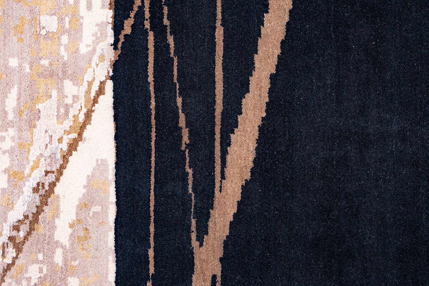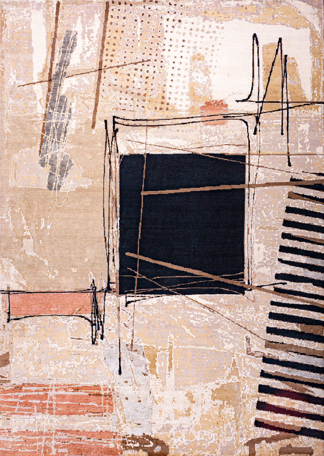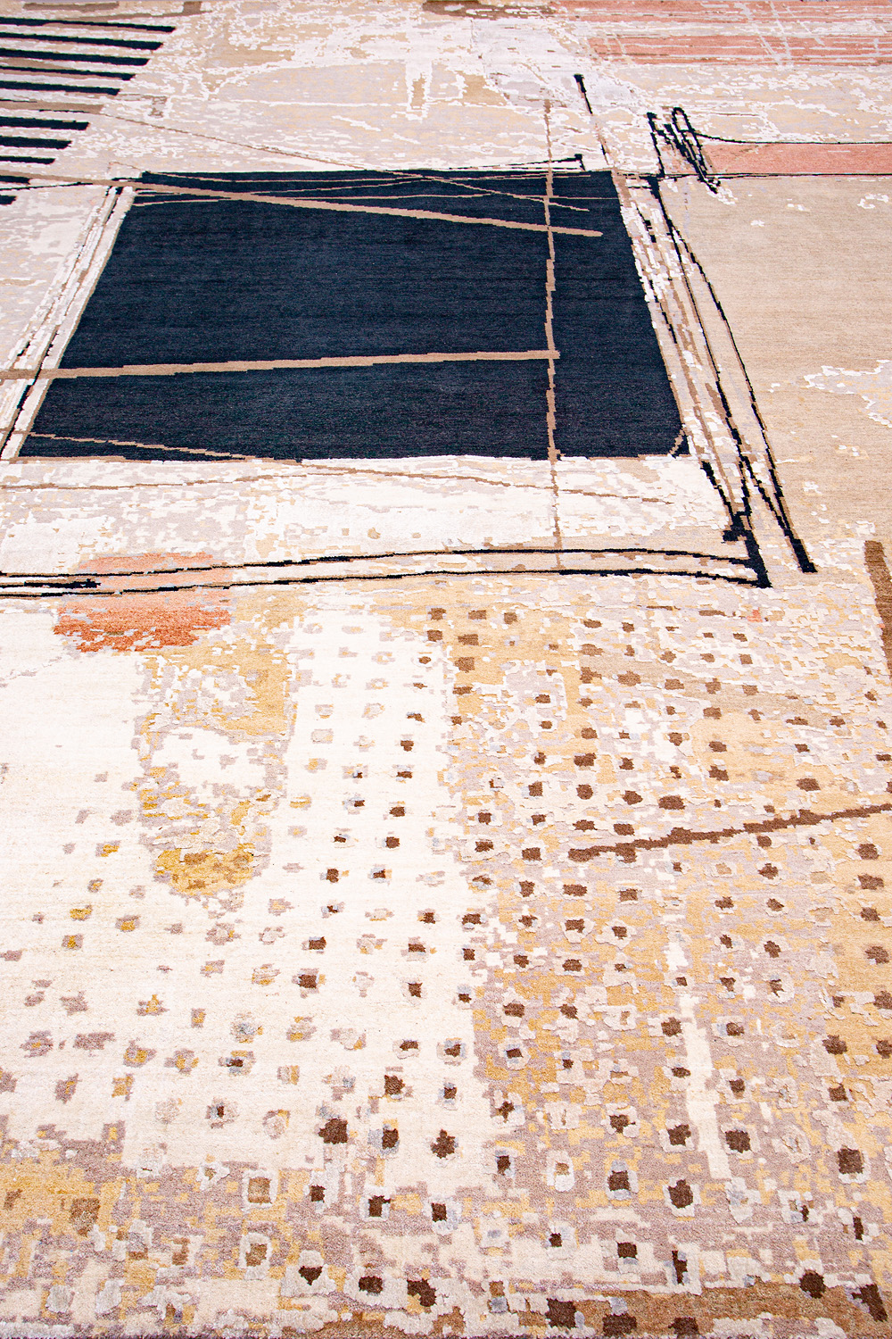 Дизайн ковров напоминает современные полотна художников-абстракционистов и производит столь же яркое и незабываемое впечатление в интерьере. Живописный эффект и необычная фактура зависят от выбора материала: натуральной шерсти, шёлка и от их сочетаний друг с другом. Ковры ткутся вручную в лучших мастерских Индии и Пакистана.