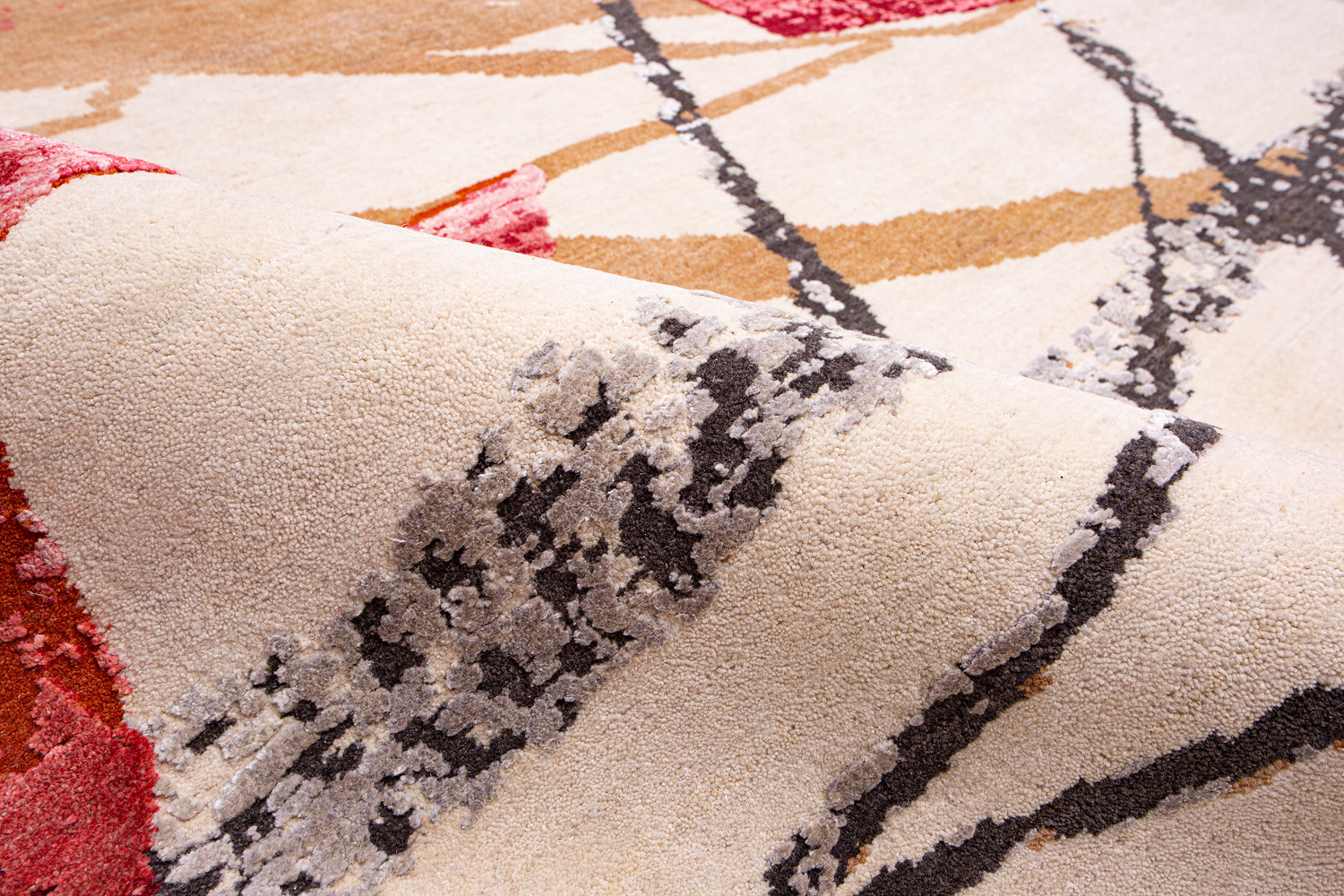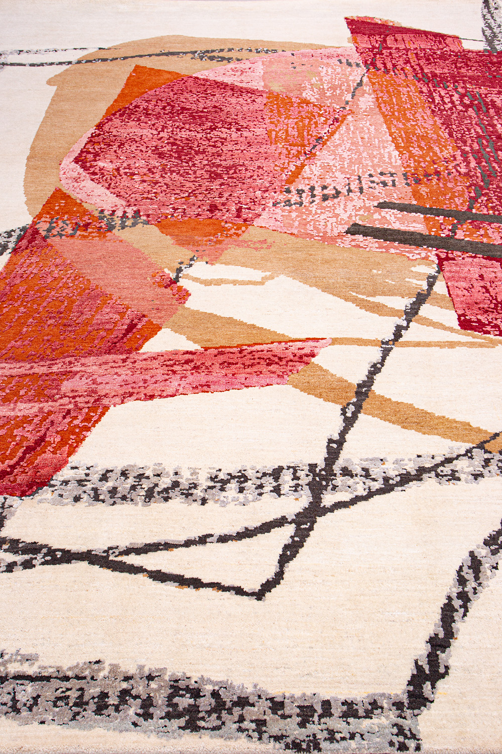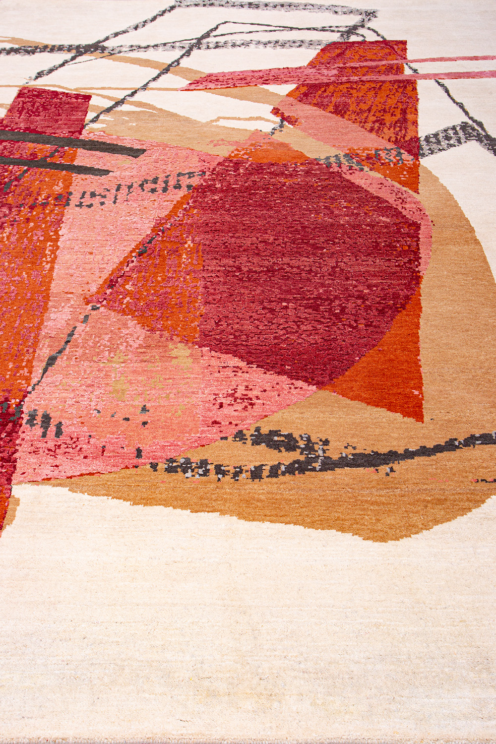 Дизайн ковров напоминает современные полотна художников-абстракционистов и производит столь же яркое и незабываемое впечатление в интерьере. Живописный эффект и необычная фактура зависят от выбора материала: натуральной шерсти, шёлка и от их сочетаний друг с другом. Ковры ткутся вручную в лучших мастерских Индии и Пакистана.