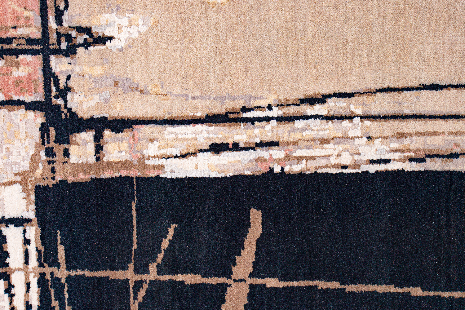Дизайн ковров напоминает современные полотна художников-абстракционистов и производит столь же яркое и незабываемое впечатление в интерьере. Живописный эффект и необычная фактура зависят от выбора материала: натуральной шерсти, шёлка и от их сочетаний друг с другом. Ковры ткутся вручную в лучших мастерских Индии и Пакистана.