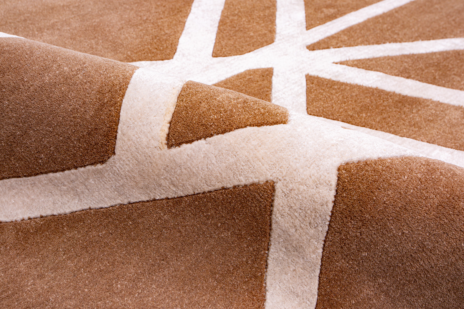 Крупные рисунки в виде линий и фигур на фактурной поверхности ковра превращаются в выразительные композиции. Они акцентируют на себе внимание и добавляют динамики в современный интерьер. Комбинации разных фигур и повторяющийся орнамент задают ритмическую основу пространству, привносят в него оригинальные оптические иллюзии.