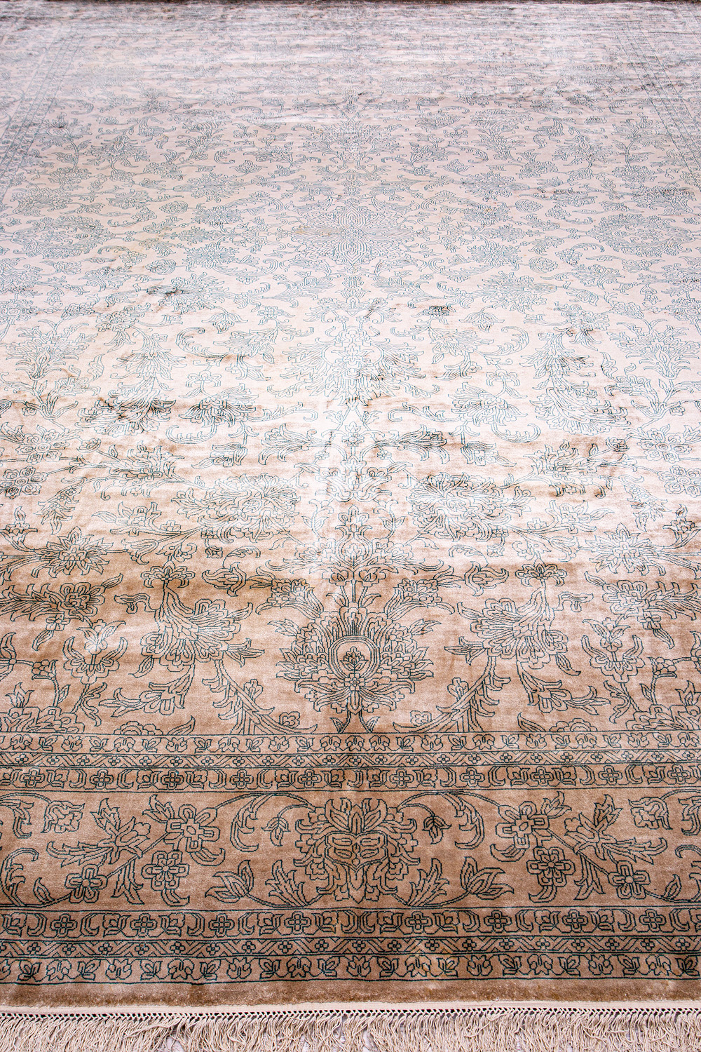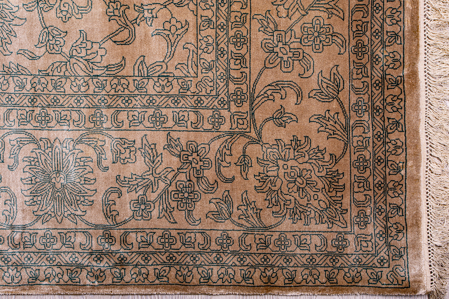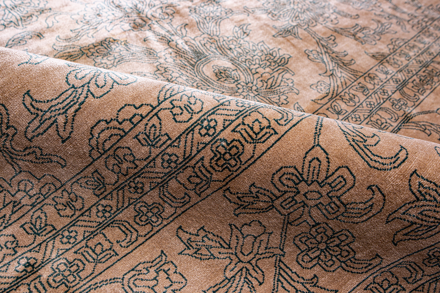 Каждый ковер в этой коллекции соткан вручную из шерсти и арт шёлка опытными индийскими мастерами.