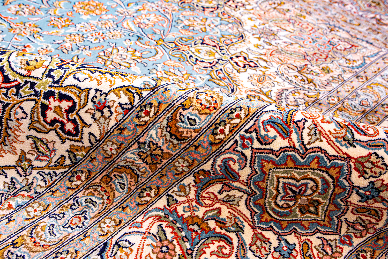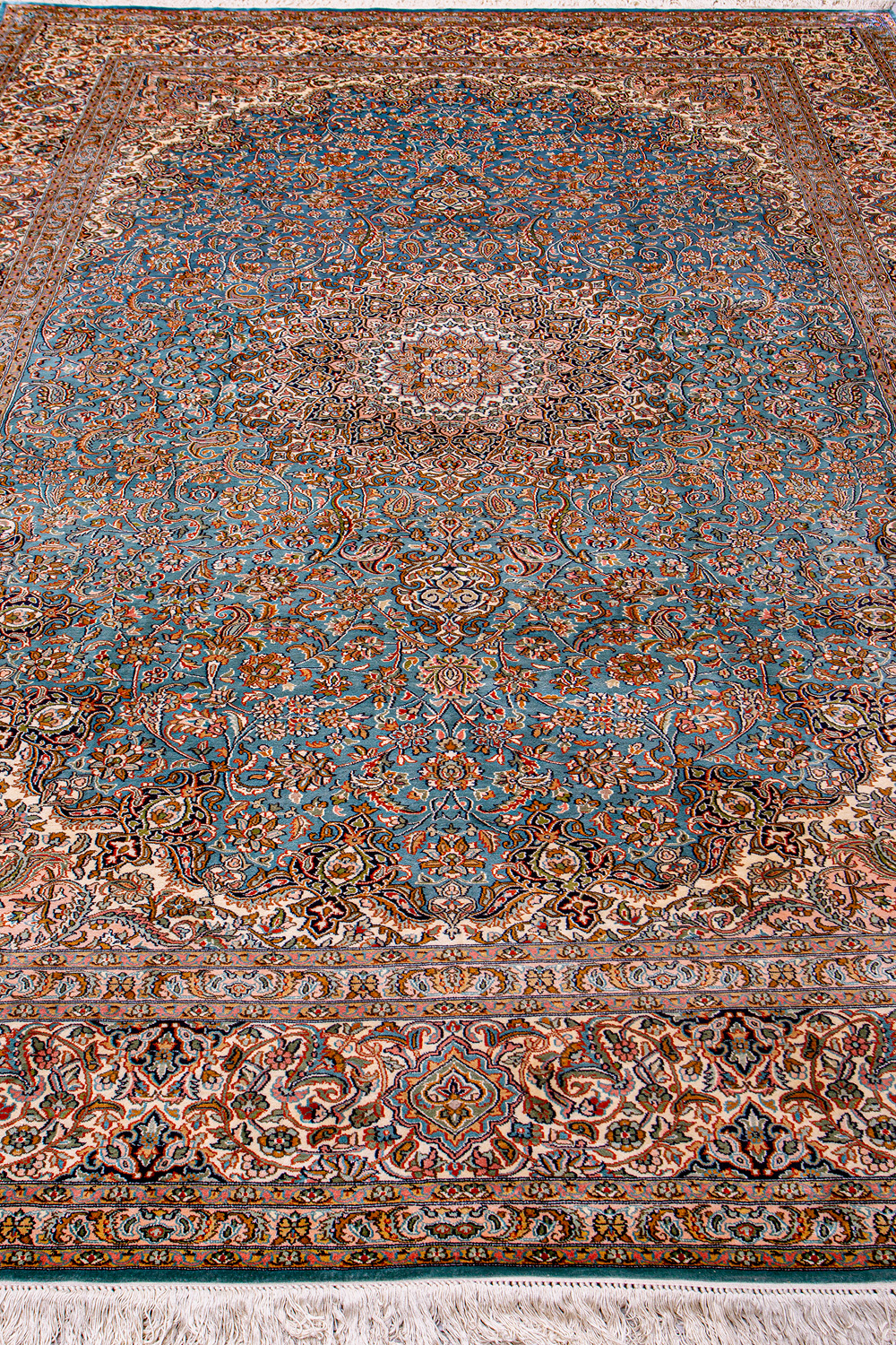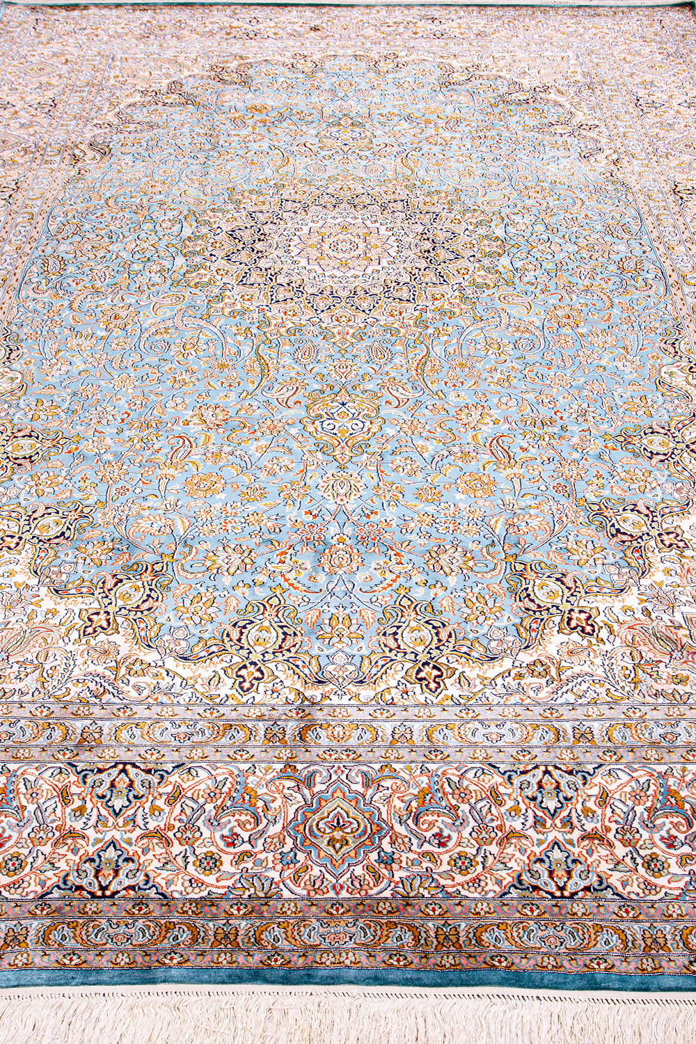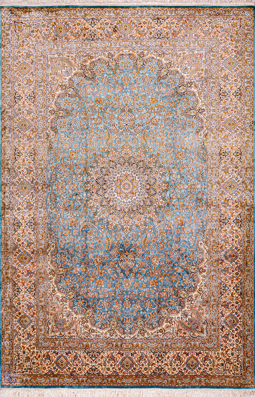 Ковры из коллекции Кашмир ткутся по традиционной технологии из нежнейшего кашмирского шелка. Лучшие произведения индийских мастеров отличает высокая узелковая плотность, прочность и яркость цветов.
