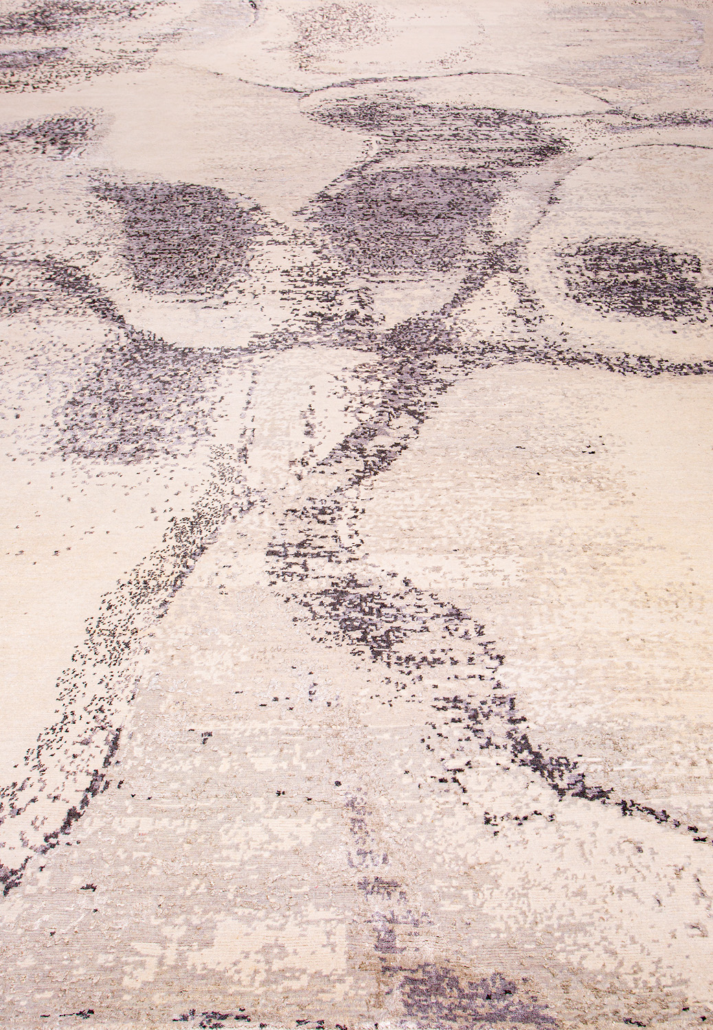 Дизайн ковров напоминает современные полотна художников-абстракционистов и производит столь же яркое и незабываемое впечатление в интерьере. Живописный эффект и необычная фактура зависят от выбора материала: натуральной шерсти, шёлка и от их сочетаний друг с другом. Ковры ткутся вручную в лучших мастерских Индии и Пакистана.