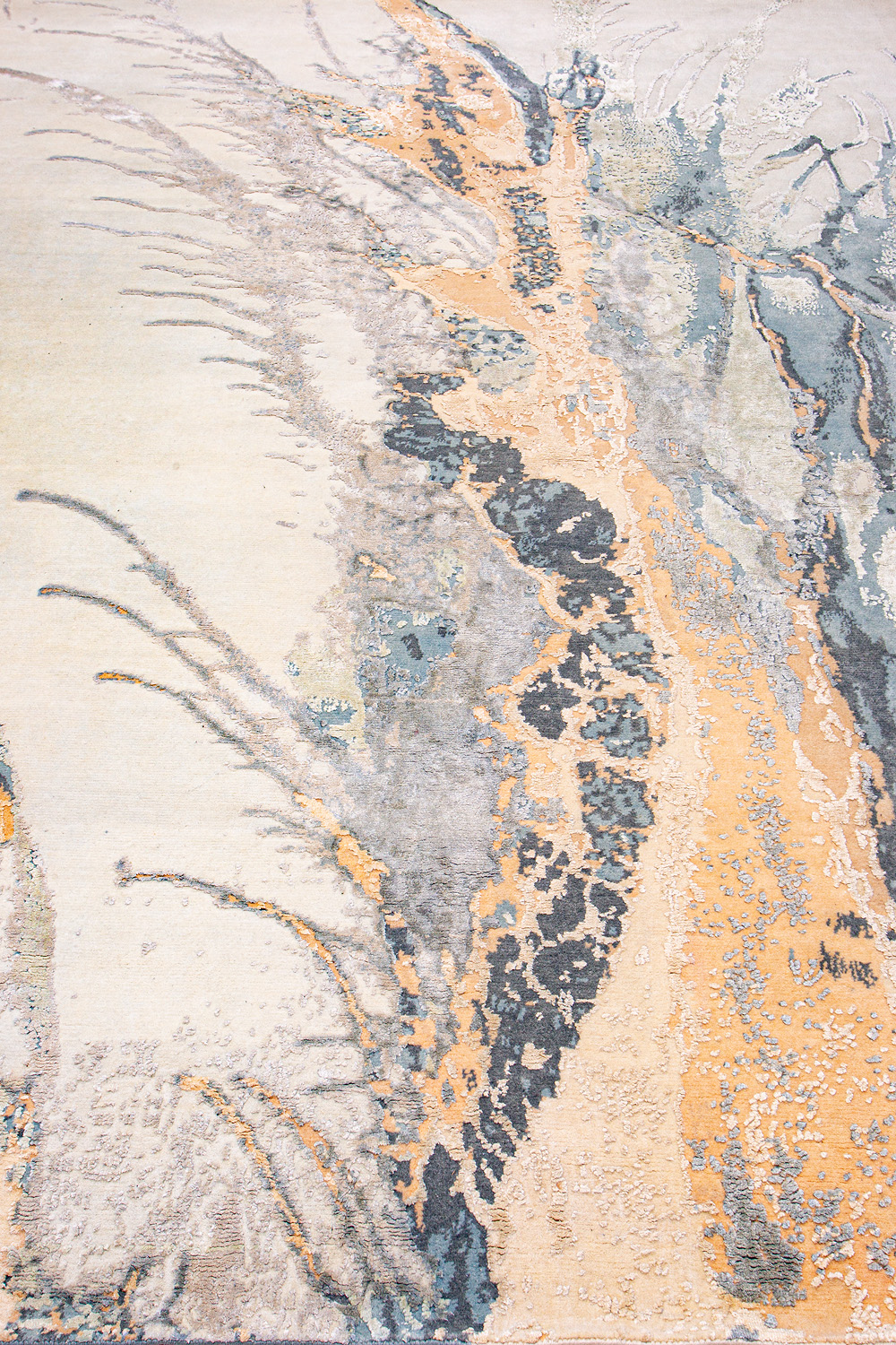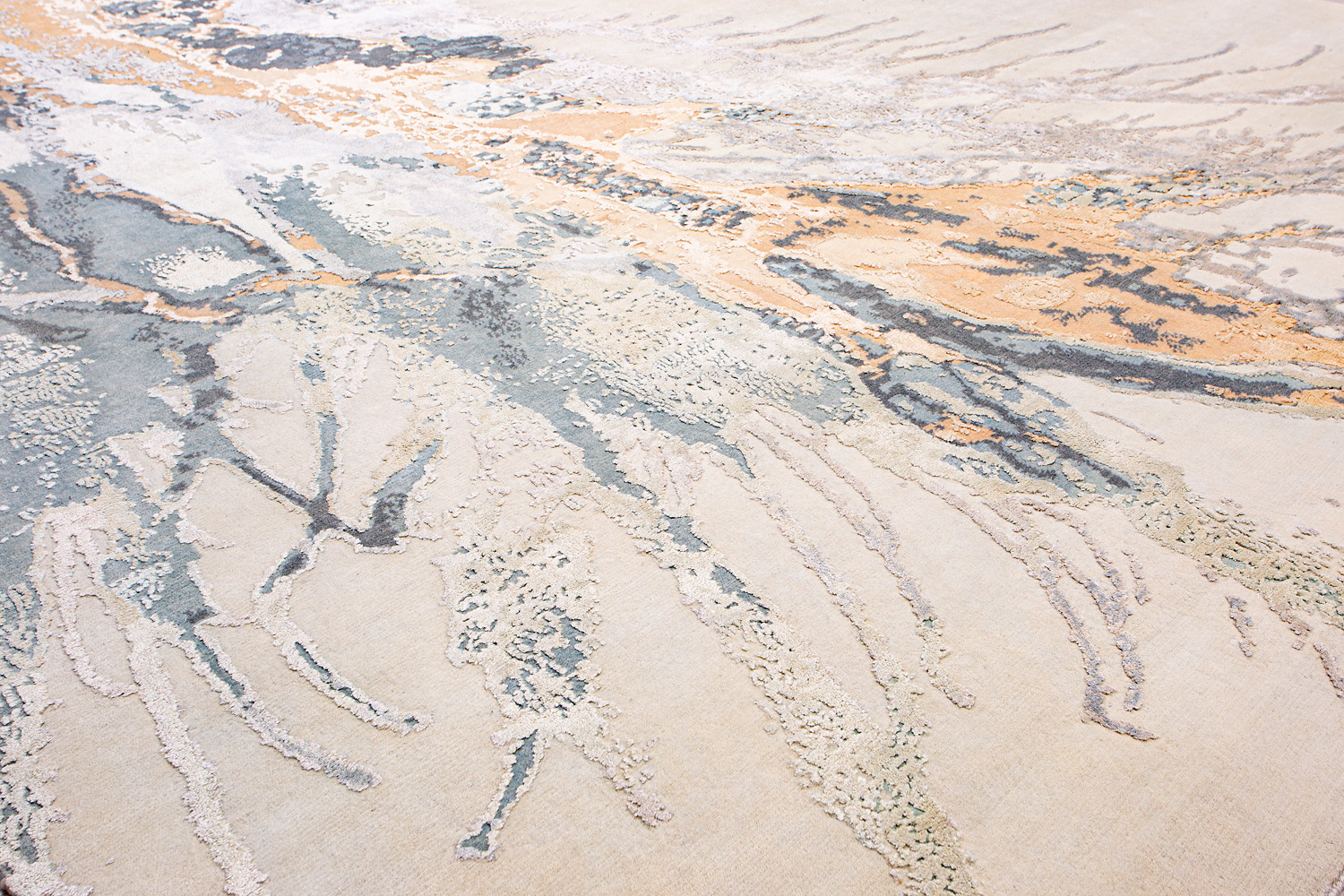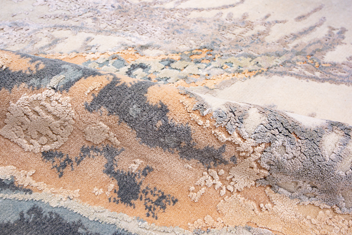 Дизайн ковров напоминает современные полотна художников-абстракционистов и производит столь же яркое и незабываемое впечатление в интерьере. Живописный эффект и необычная фактура зависят от выбора материала: натуральной шерсти, шёлка и от их сочетаний друг с другом. Ковры ткутся вручную в лучших мастерских Индии и Пакистана.