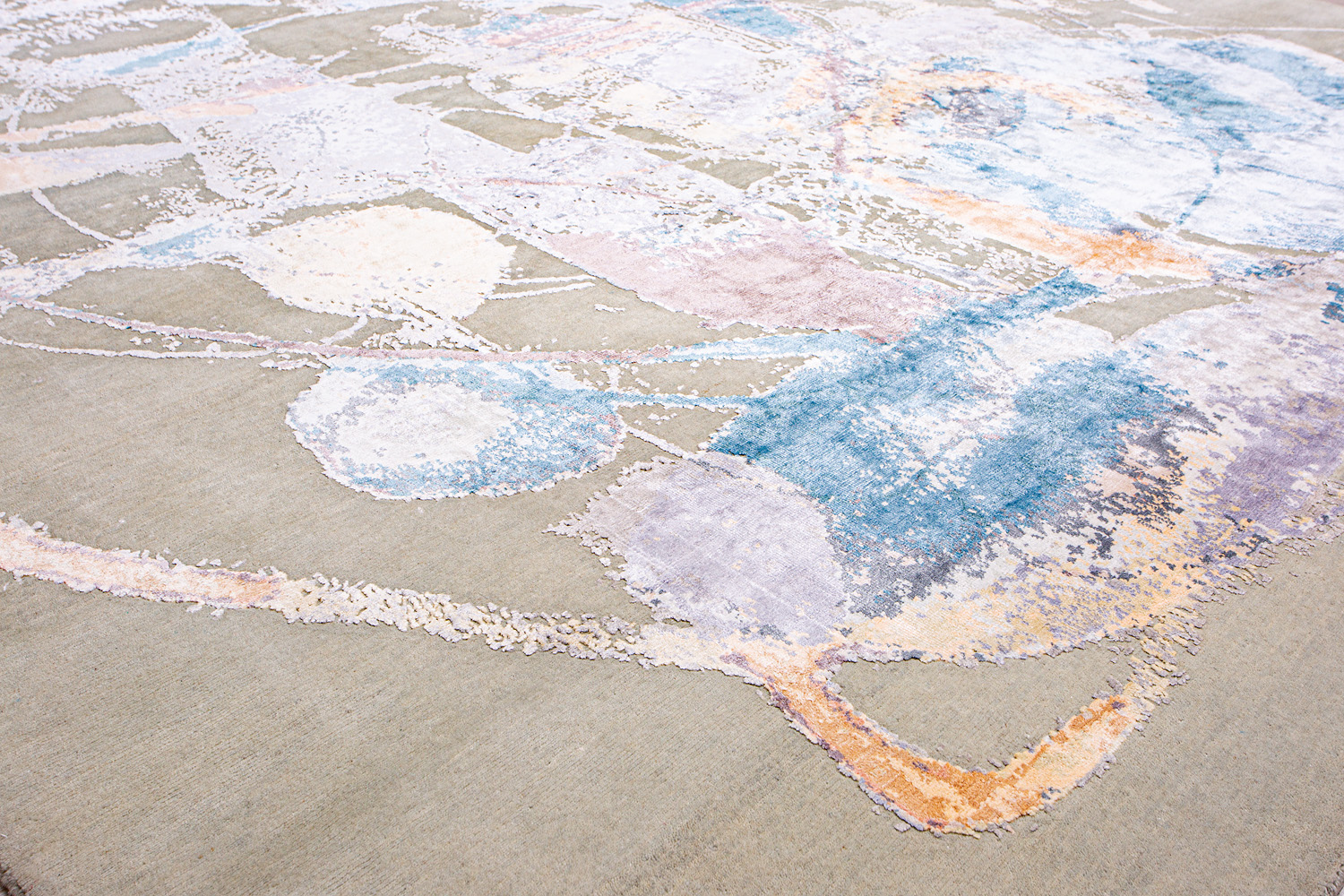 Дизайн ковров напоминает современные полотна художников-абстракционистов и производит столь же яркое и незабываемое впечатление в интерьере. Живописный эффект и необычная фактура зависят от выбора материала: натуральной шерсти, шёлка и от их сочетаний друг с другом. Ковры ткутся вручную в лучших мастерских Индии и Пакистана.