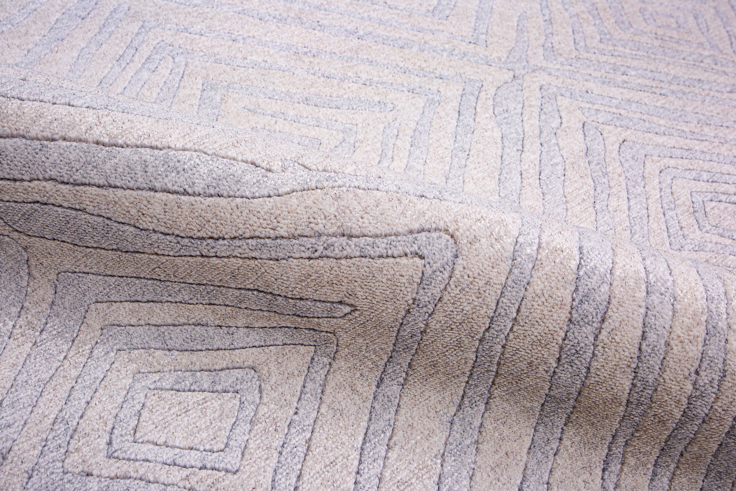 Крупные рисунки в виде линий и фигур на фактурной поверхности ковра превращаются в выразительные композиции. Они акцентируют на себе внимание и добавляют динамики в современный интерьер. Комбинации разных фигур и повторяющийся орнамент задают ритмическую основу пространству, привносят в него оригинальные оптические иллюзии.