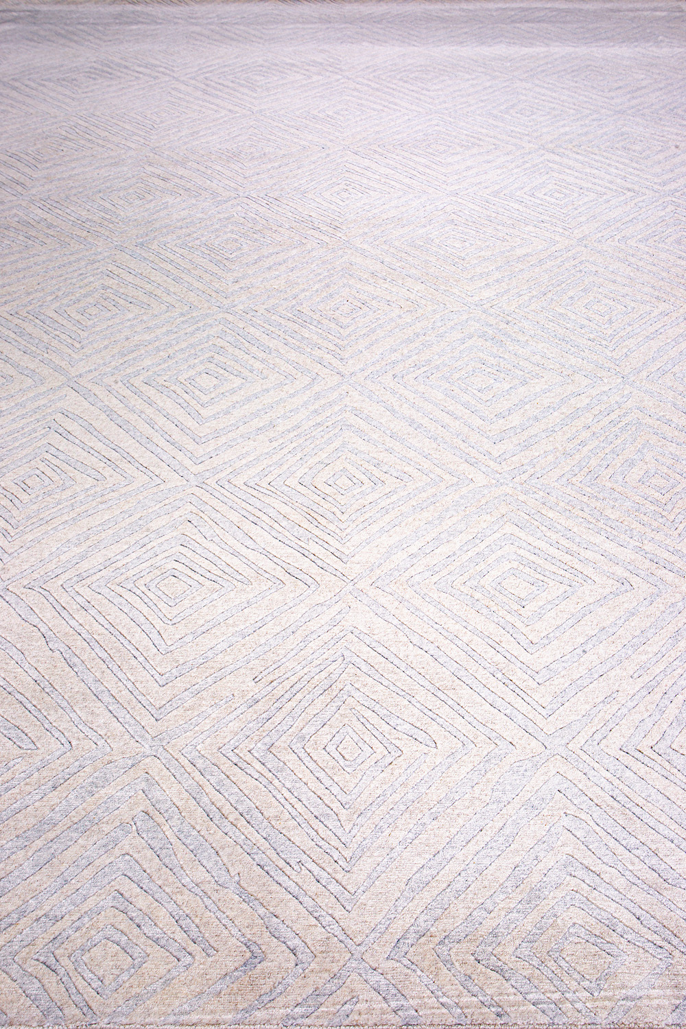 Крупные рисунки в виде линий и фигур на фактурной поверхности ковра превращаются в выразительные композиции. Они акцентируют на себе внимание и добавляют динамики в современный интерьер. Комбинации разных фигур и повторяющийся орнамент задают ритмическую основу пространству, привносят в него оригинальные оптические иллюзии.