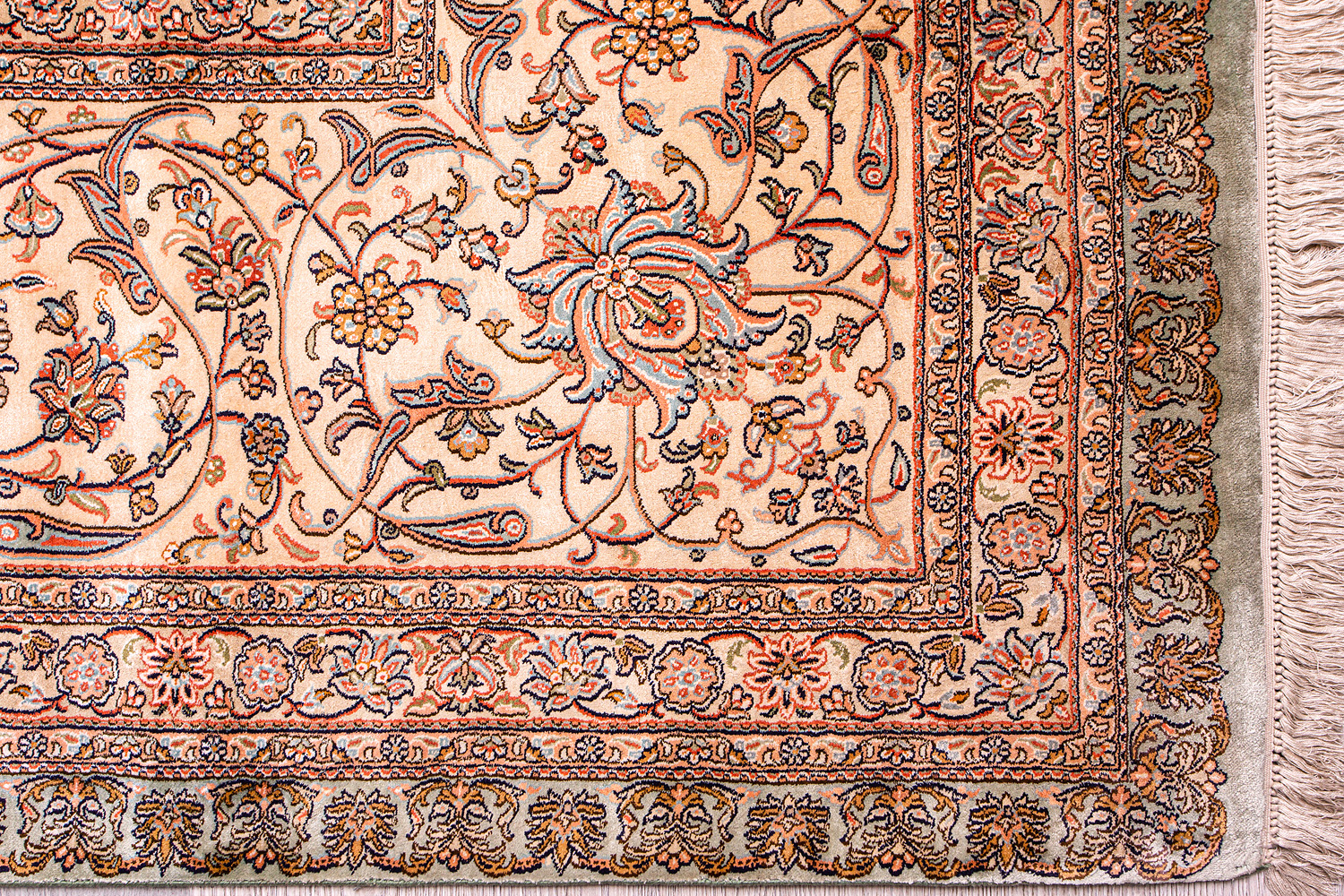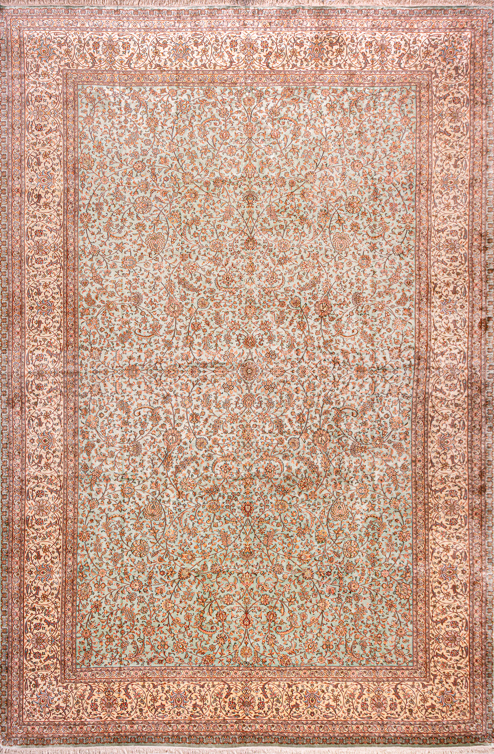 Ковры из коллекции Кашмир ткутся по традиционной технологии из нежнейшего кашмирского шелка. Лучшие произведения индийских мастеров отличает высокая узелковая плотность, прочность и яркость цветов.