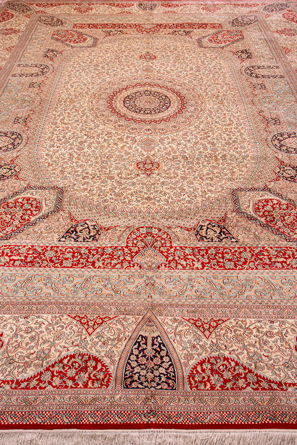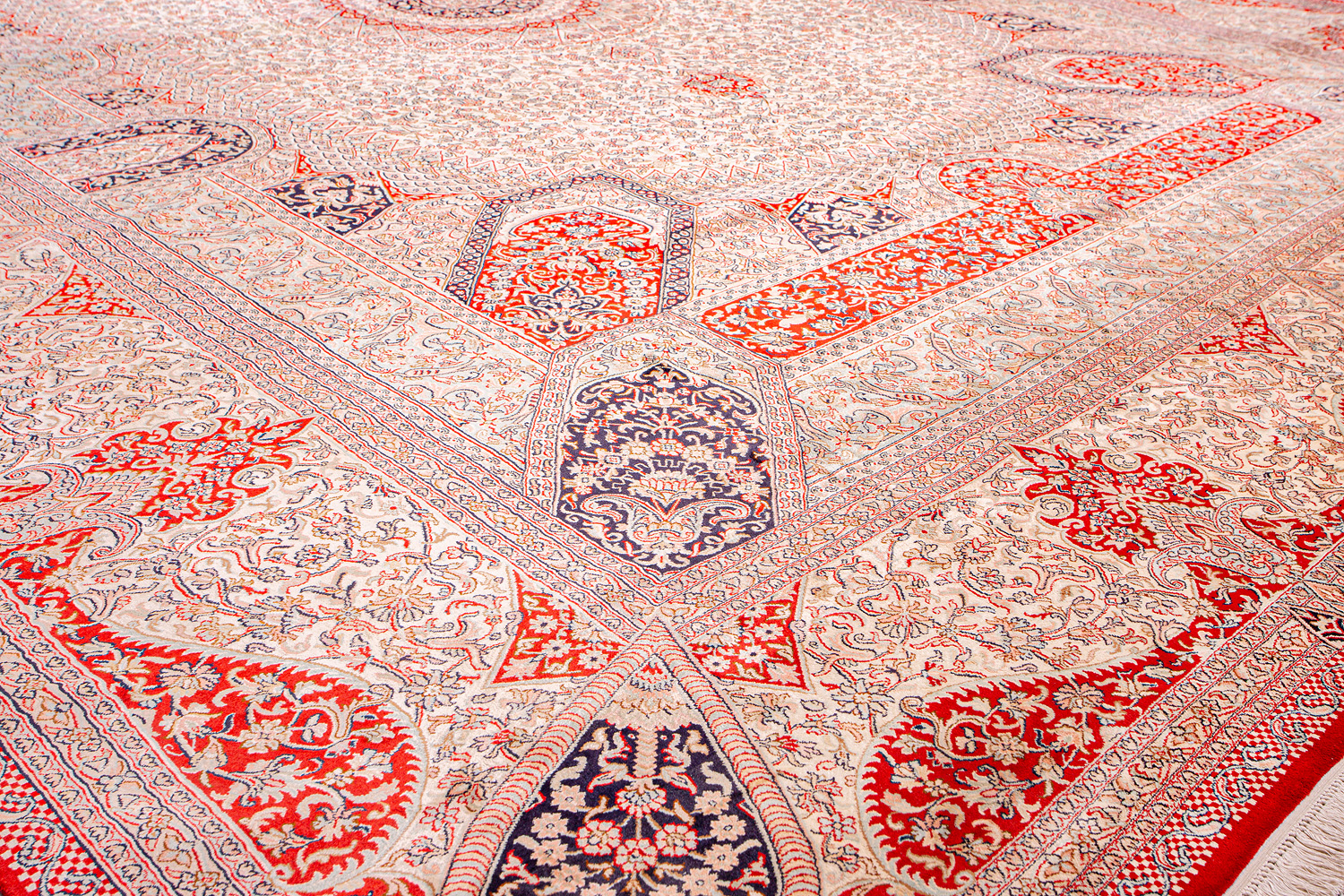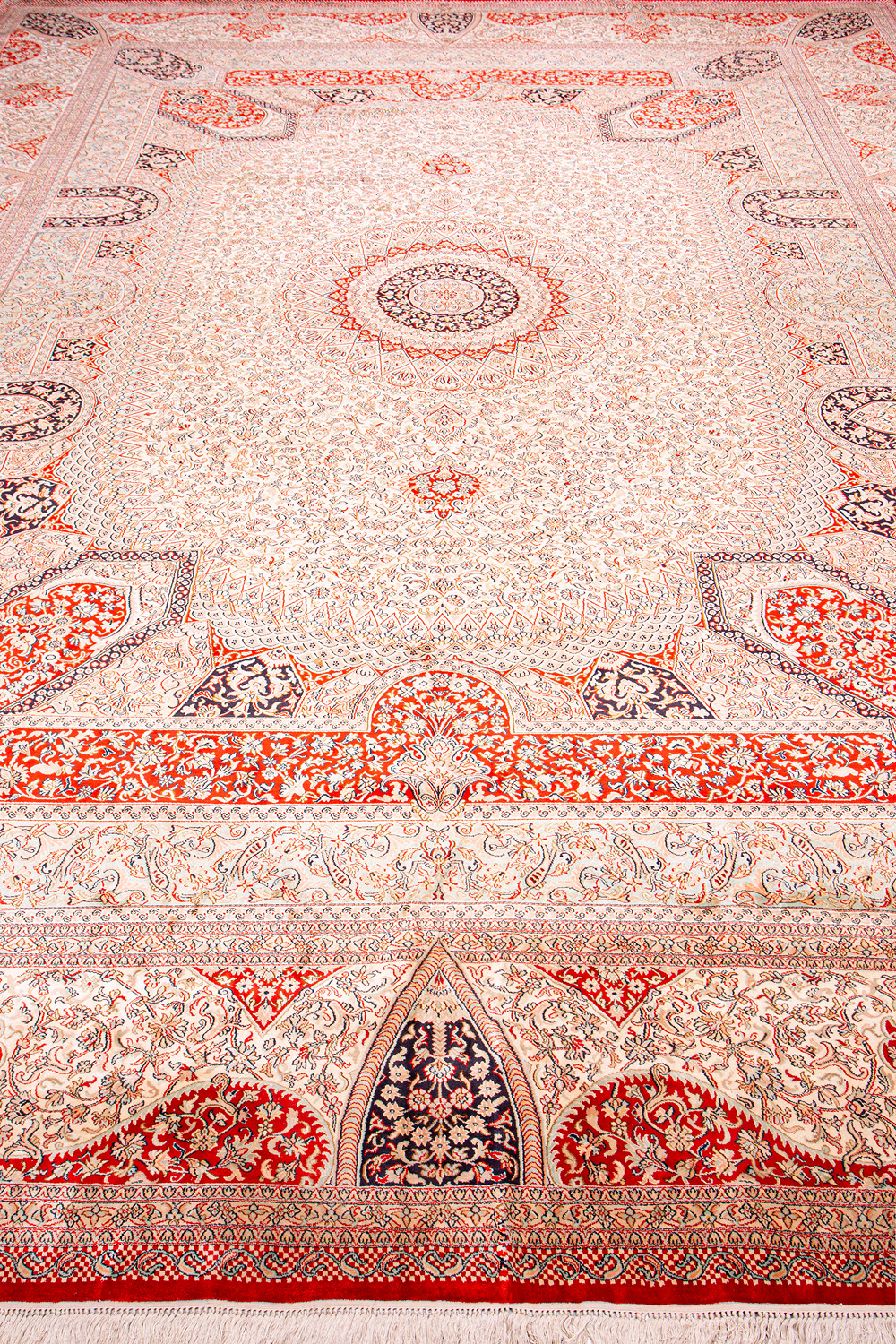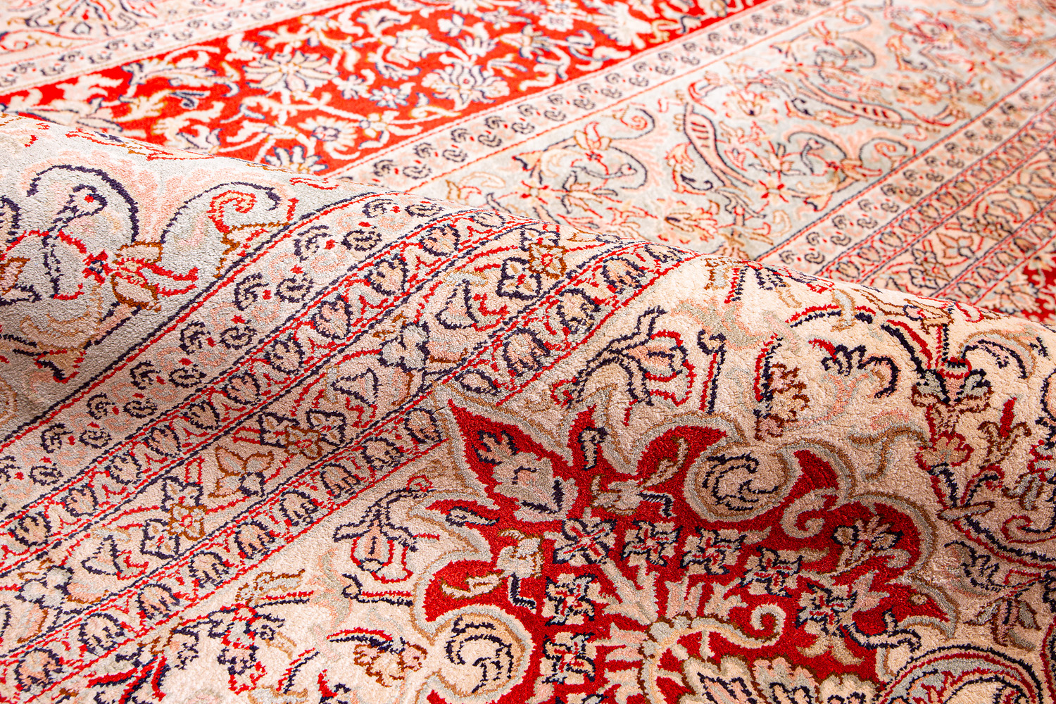 Ковры из коллекции Кашмир ткутся по традиционной технологии из нежнейшего кашмирского шелка. Лучшие произведения индийских мастеров отличает высокая узелковая плотность, прочность и яркость цветов.
