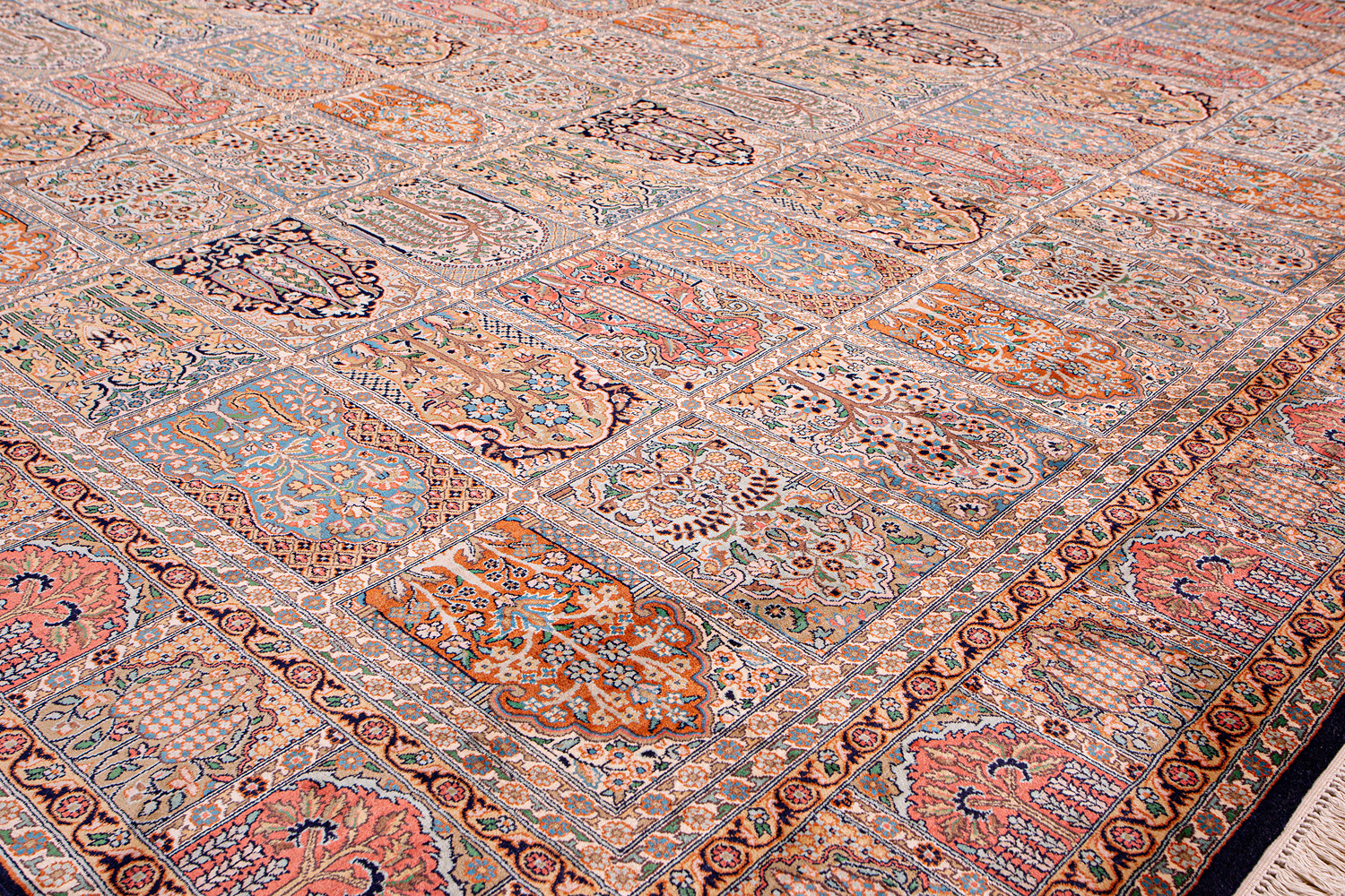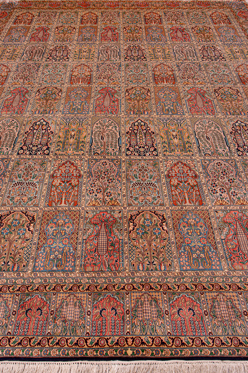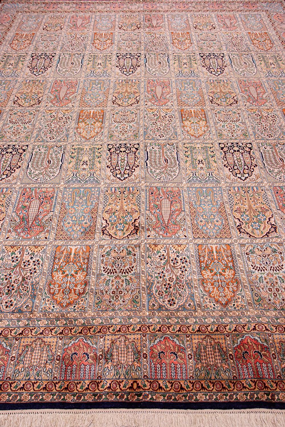 Ковры из коллекции Кашмир ткутся по традиционной технологии из нежнейшего кашмирского шелка. Лучшие произведения индийских мастеров отличает высокая узелковая плотность, прочность и яркость цветов.