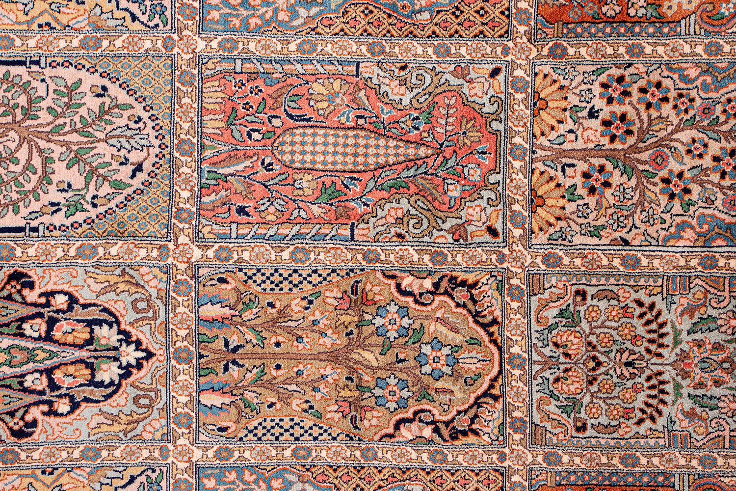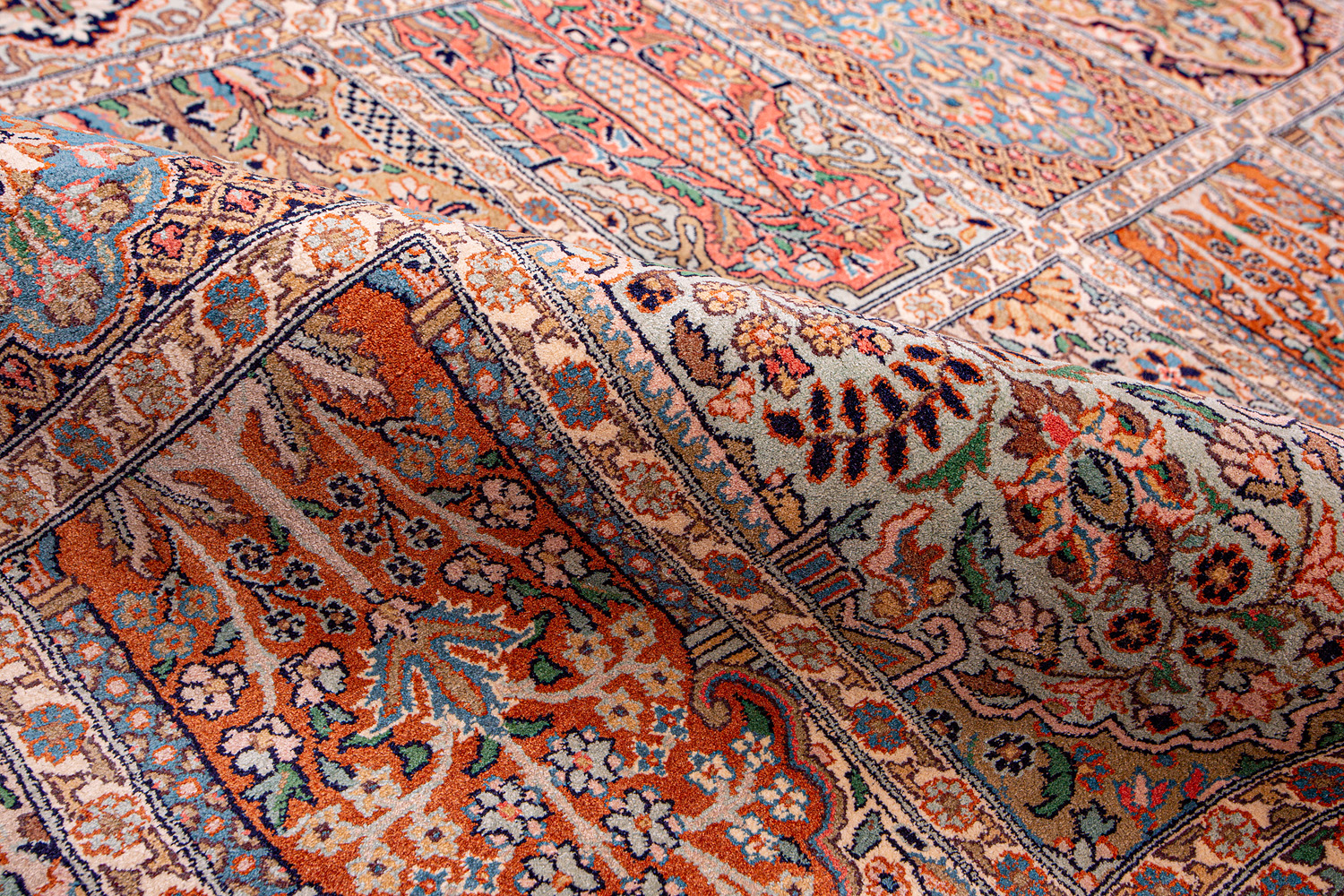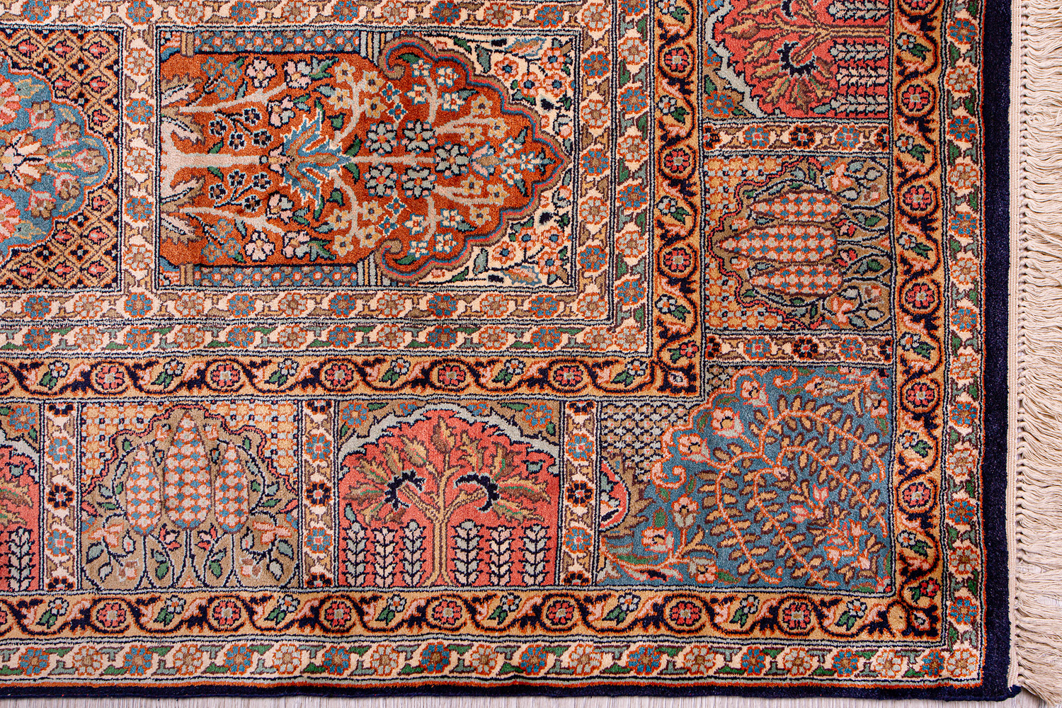 Ковры из коллекции Кашмир ткутся по традиционной технологии из нежнейшего кашмирского шелка. Лучшие произведения индийских мастеров отличает высокая узелковая плотность, прочность и яркость цветов.