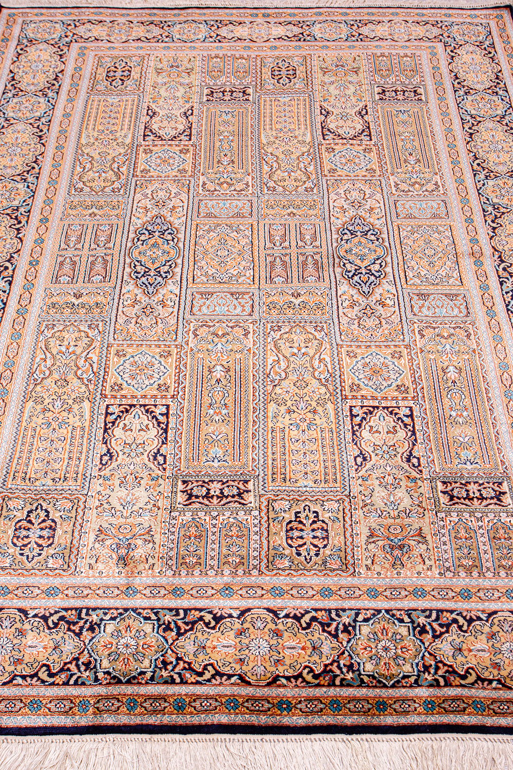 Ковры из коллекции Кашмир ткутся по традиционной технологии из нежнейшего кашмирского шелка. Лучшие произведения индийских мастеров отличает высокая узелковая плотность, прочность и яркость цветов.