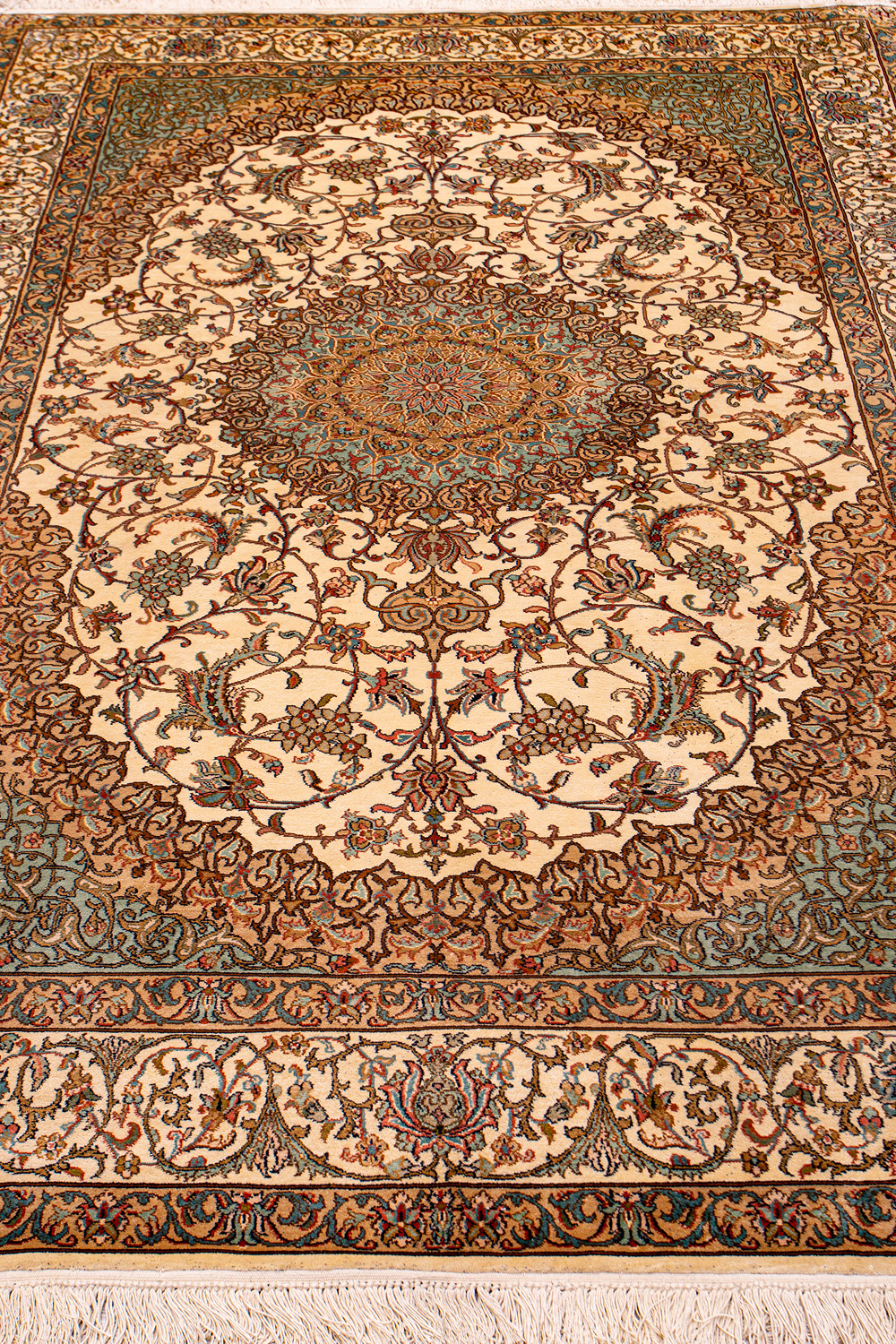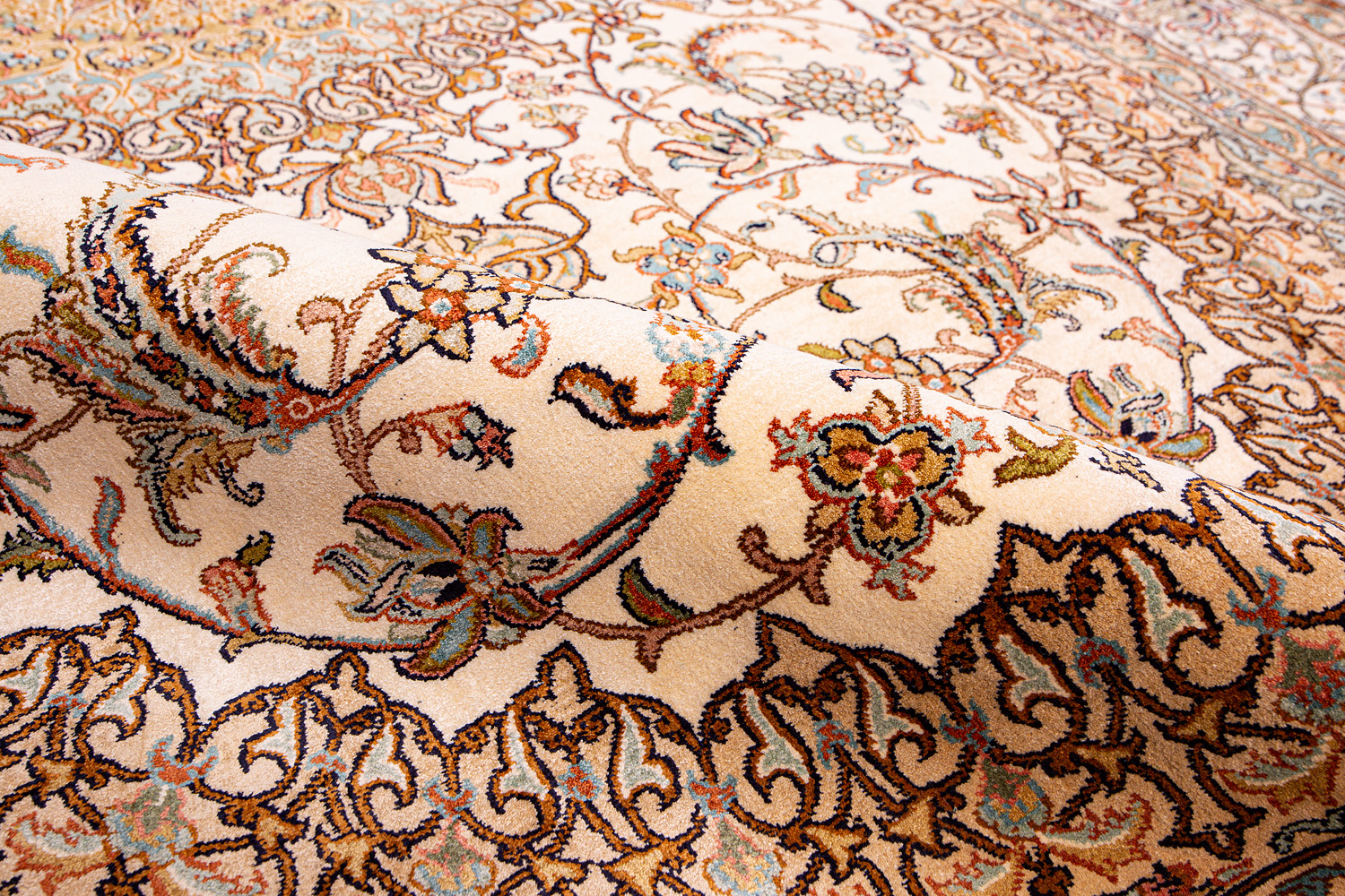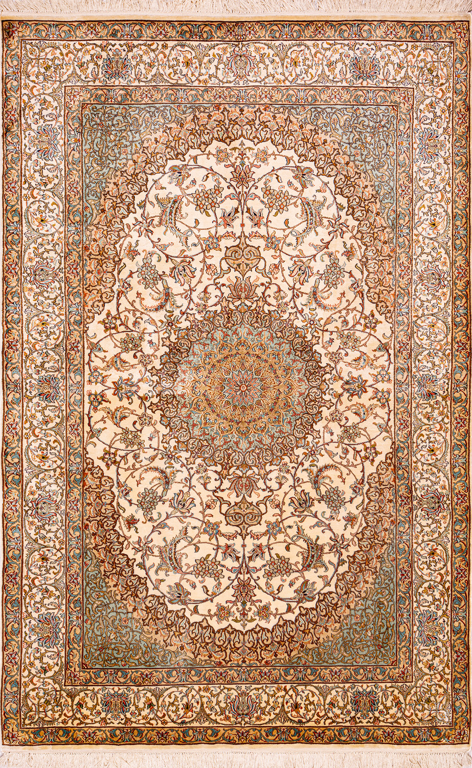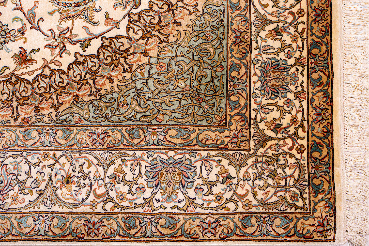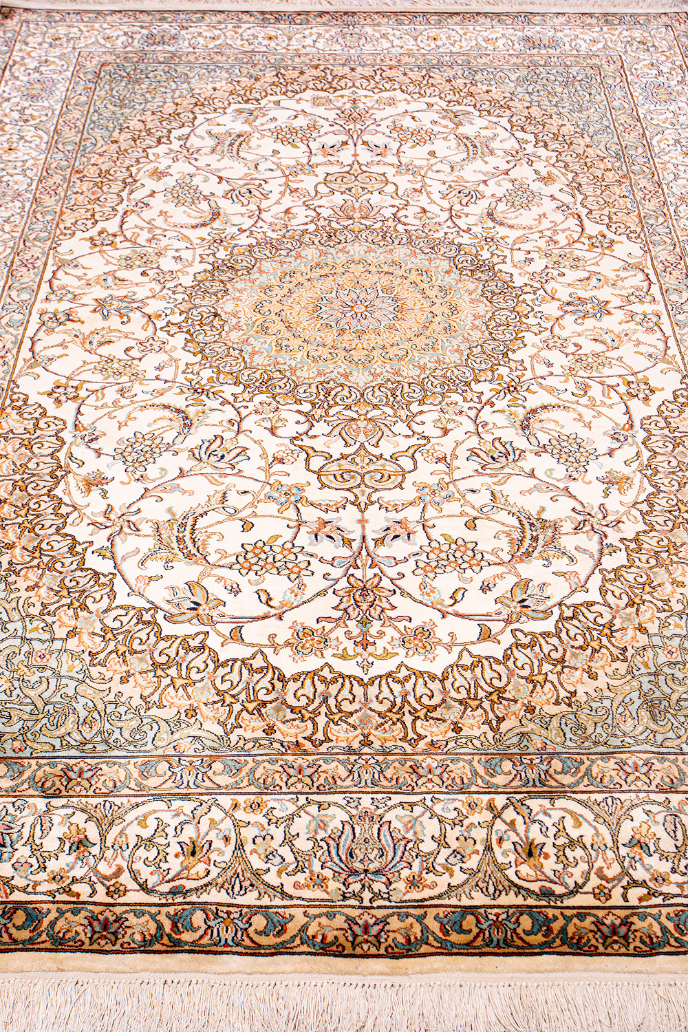 Ковры из коллекции Кашмир ткутся по традиционной технологии из нежнейшего кашмирского шелка. Лучшие произведения индийских мастеров отличает высокая узелковая плотность, прочность и яркость цветов.