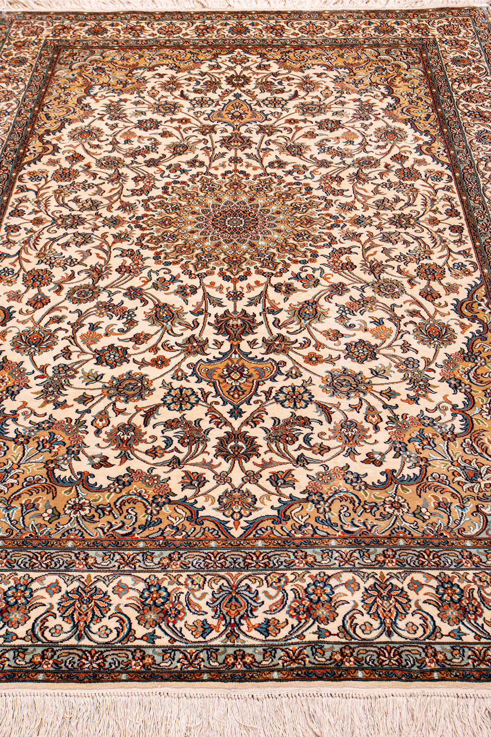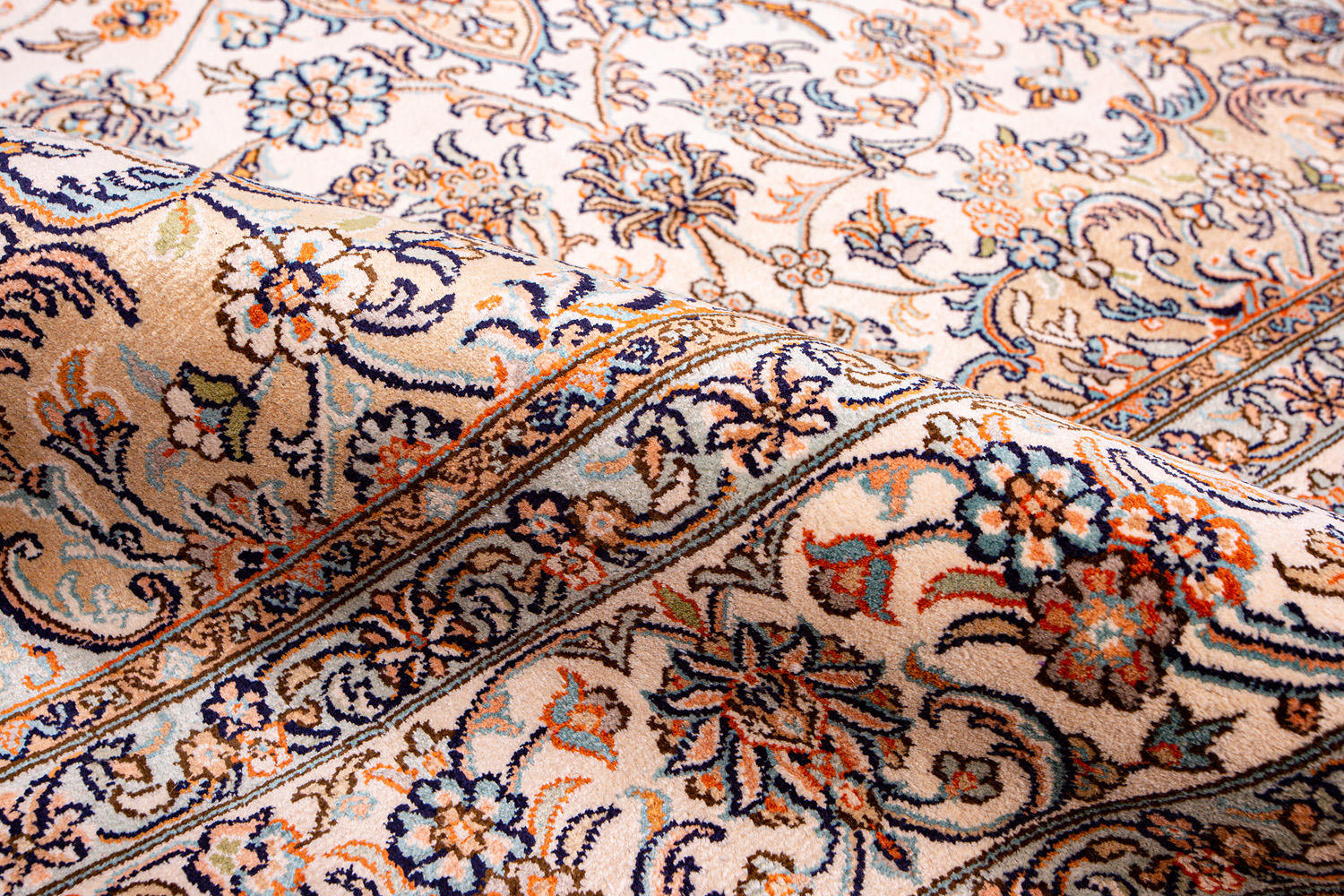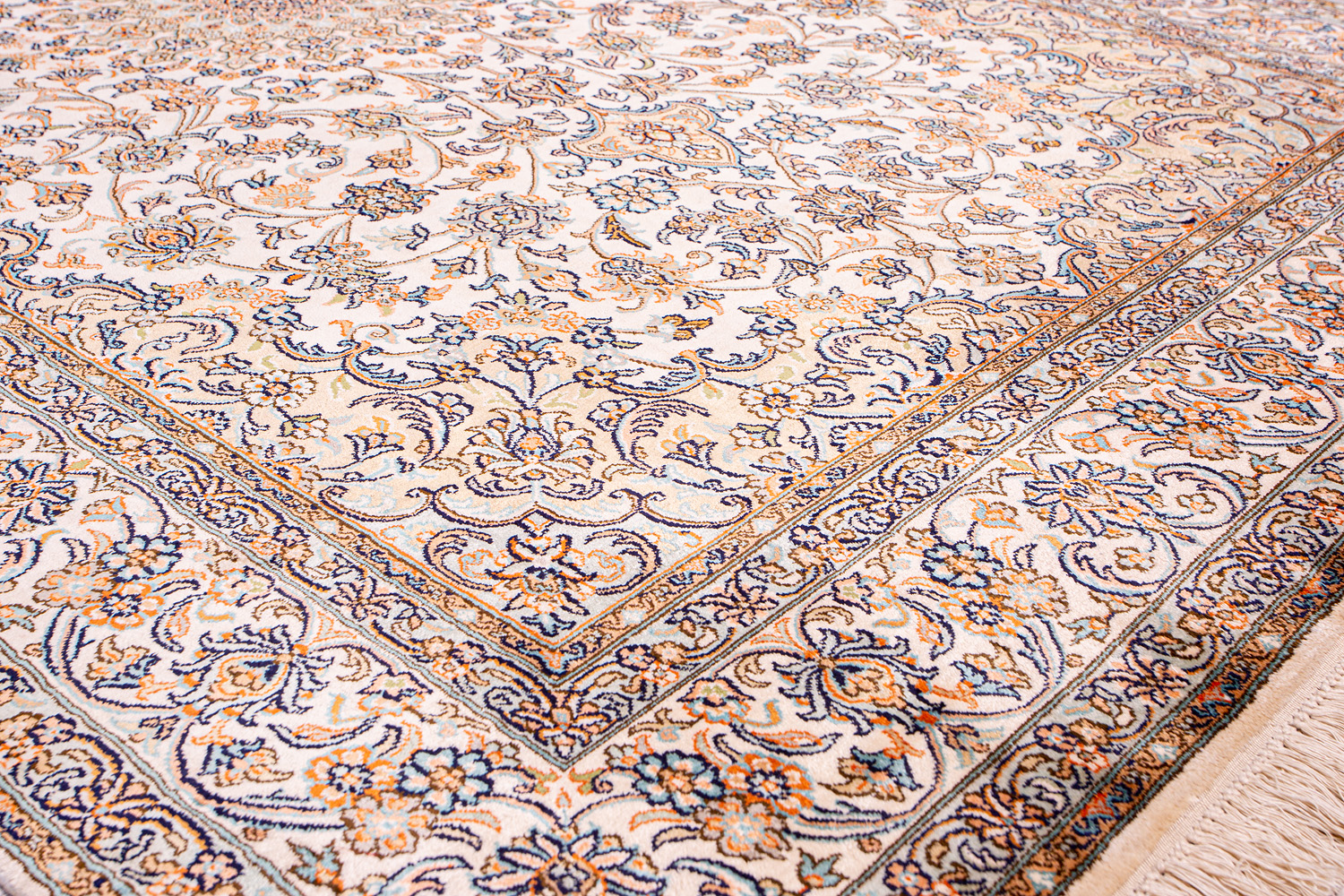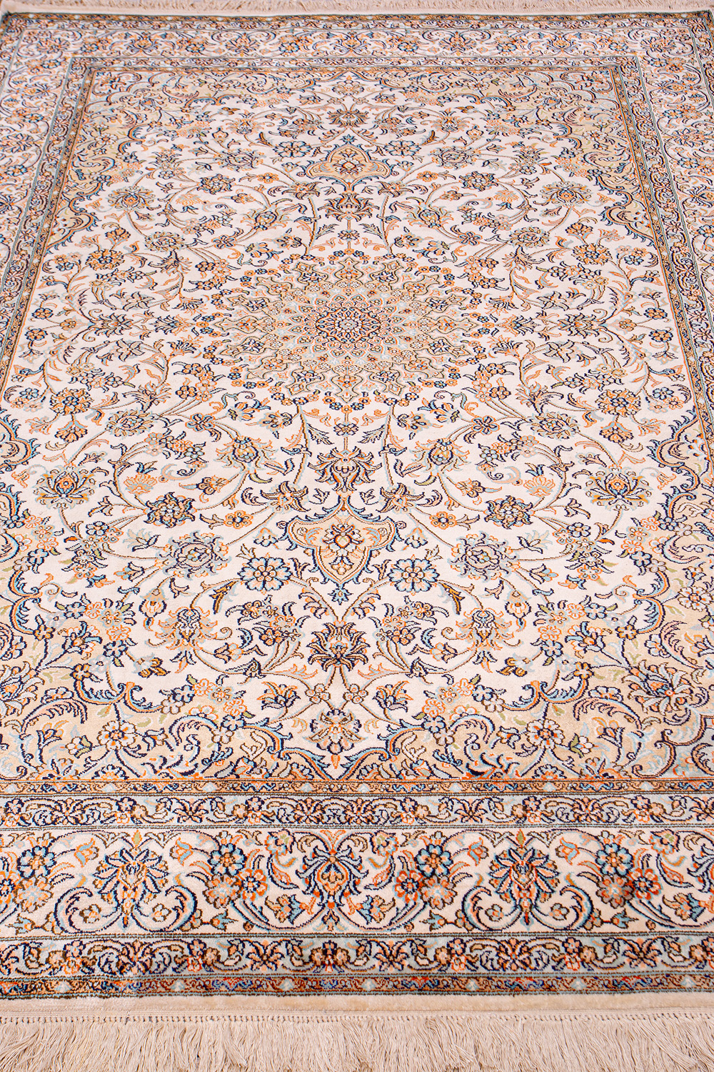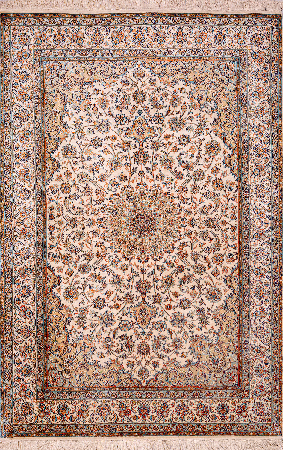 Ковры из коллекции Кашмир ткутся по традиционной технологии из нежнейшего кашмирского шелка. Лучшие произведения индийских мастеров отличает высокая узелковая плотность, прочность и яркость цветов.