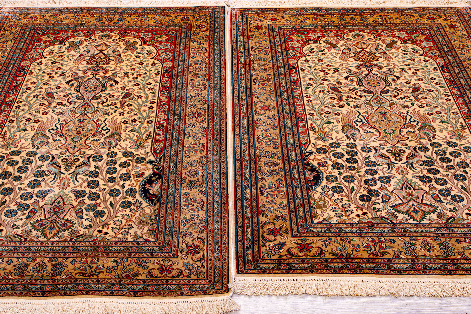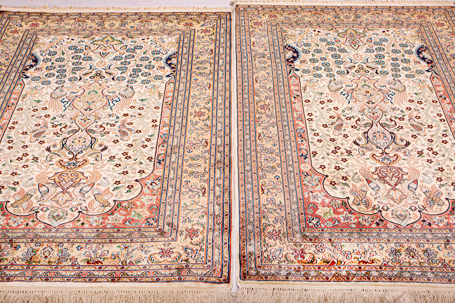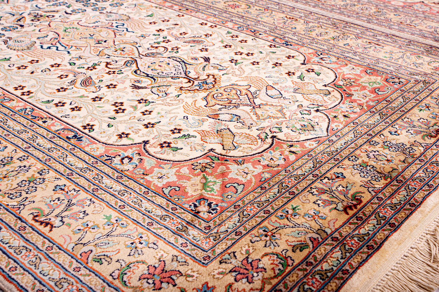 Ковры из коллекции Кашмир ткутся по традиционной технологии из нежнейшего кашмирского шелка. Лучшие произведения индийских мастеров отличает высокая узелковая плотность, прочность и яркость цветов.