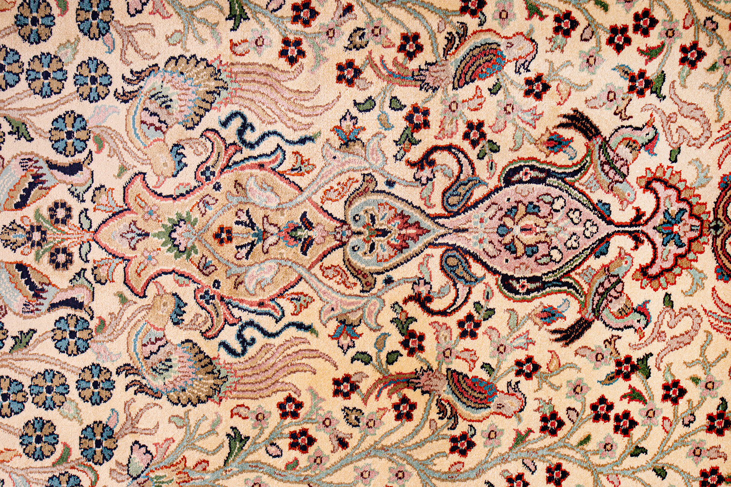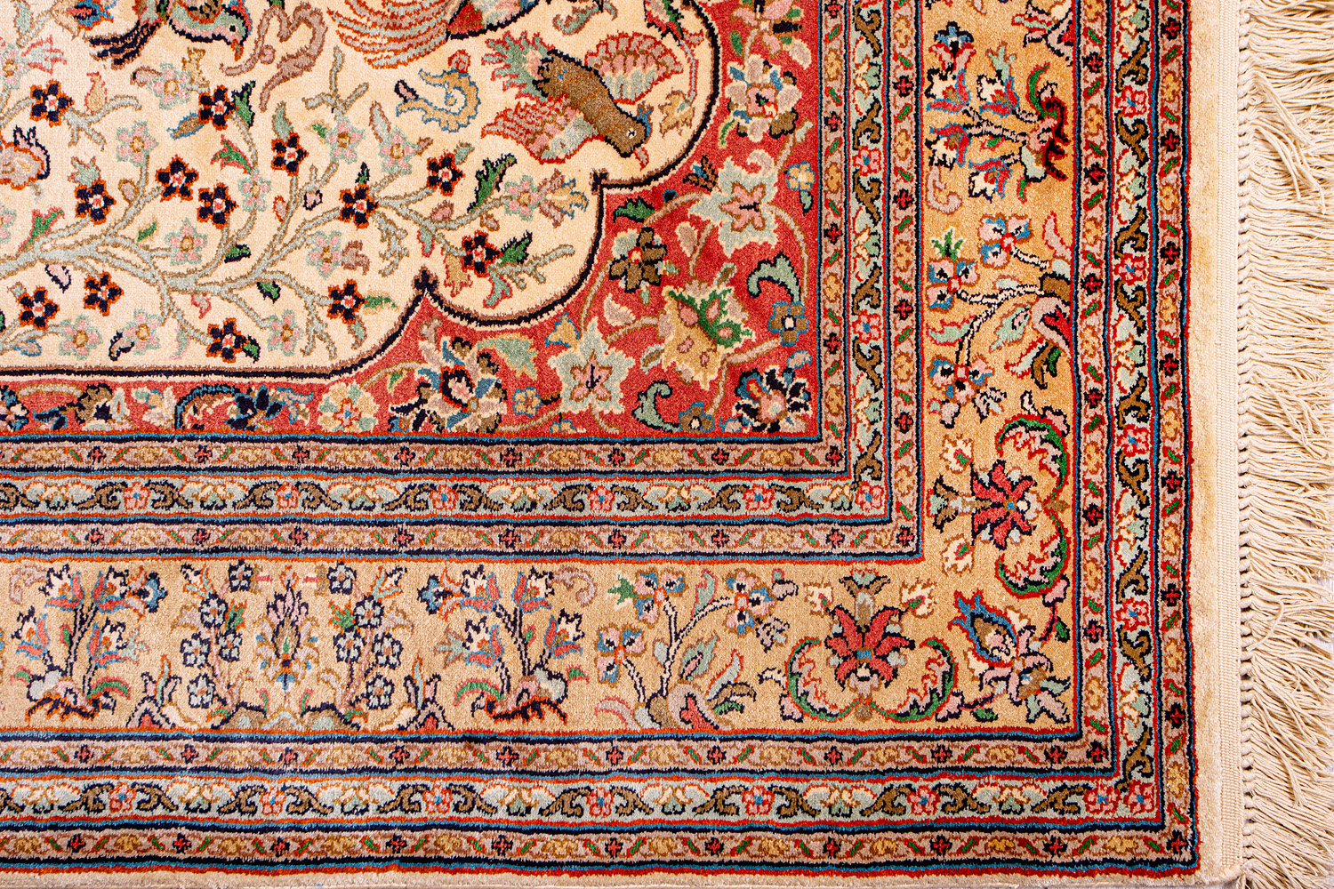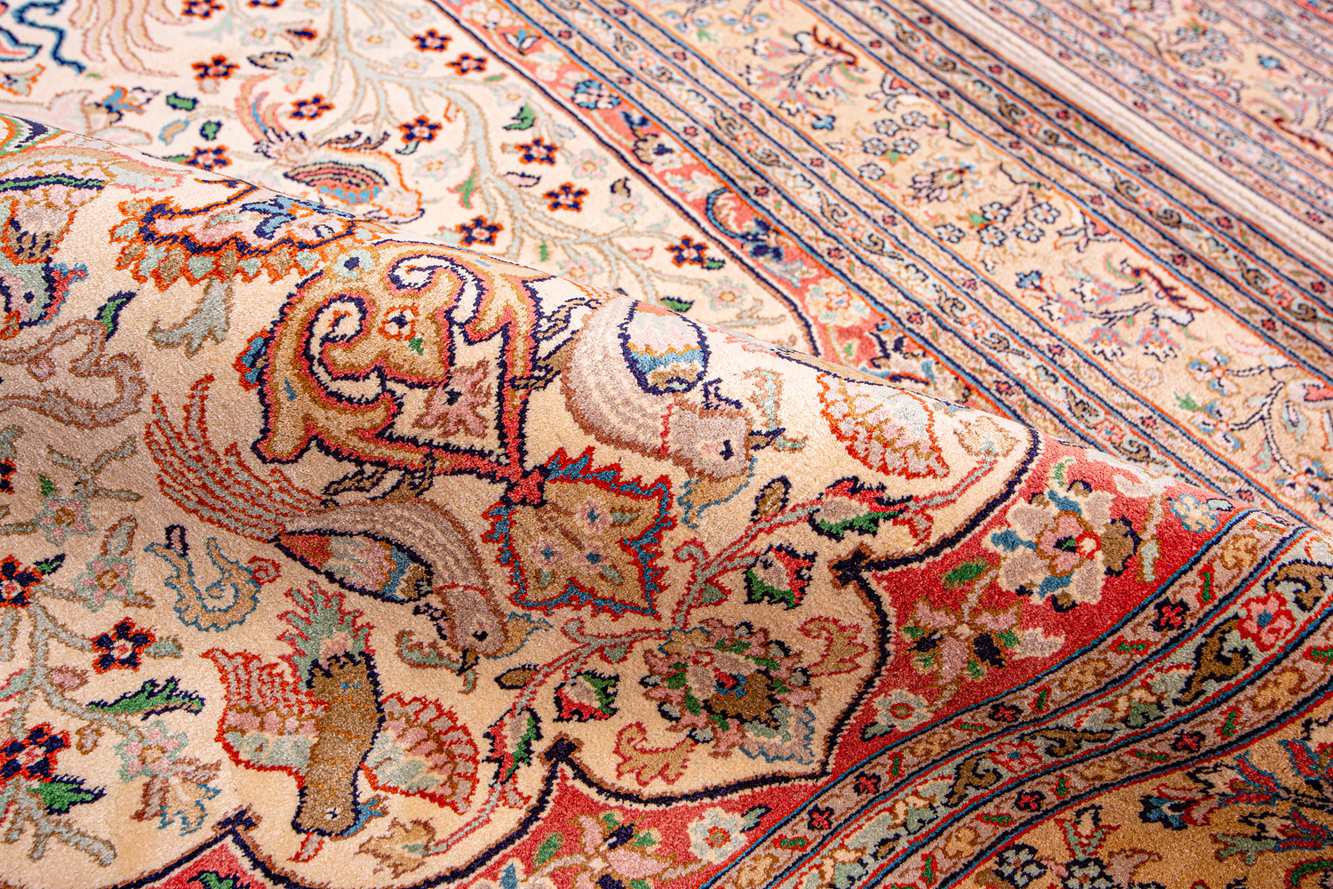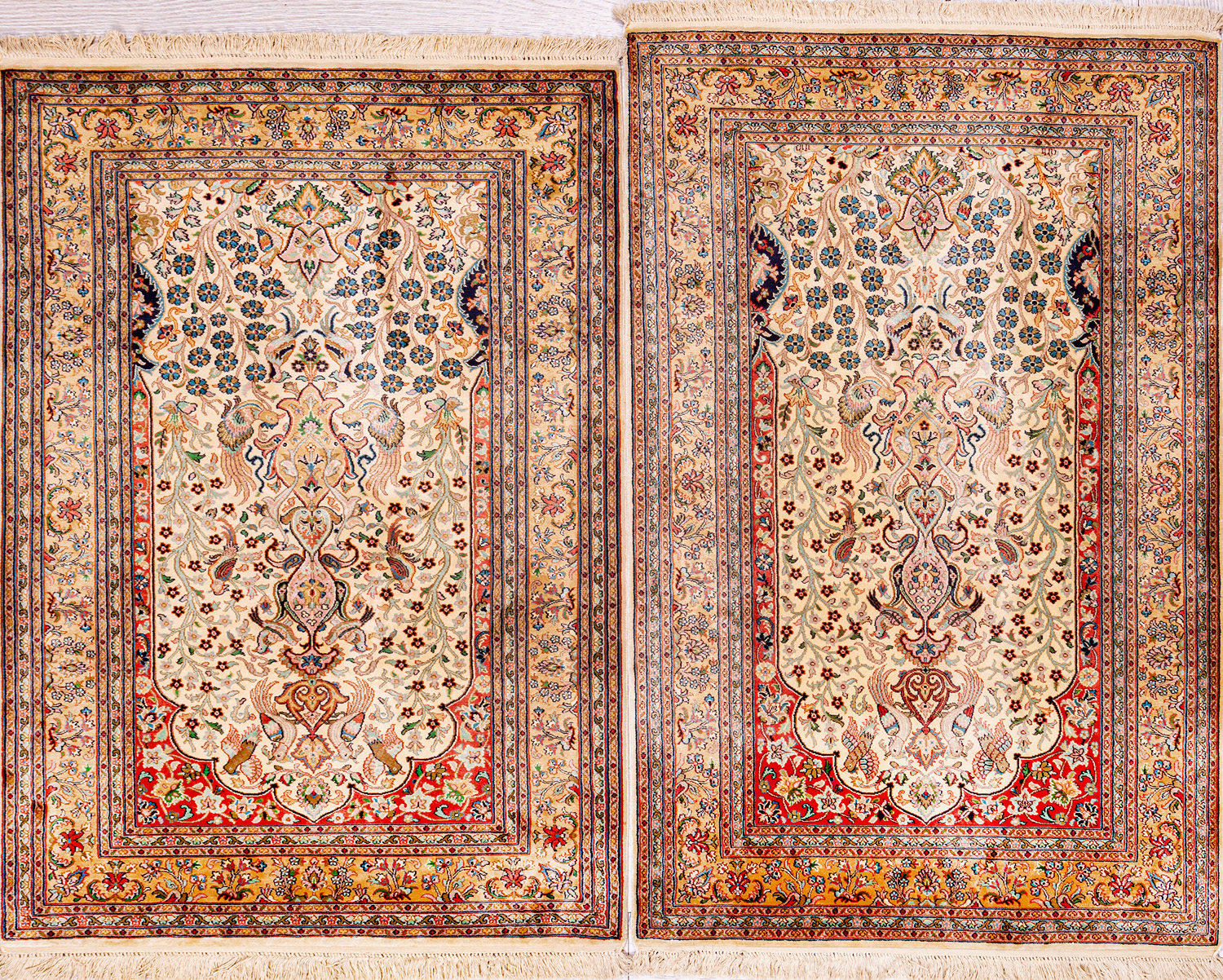 Ковры из коллекции Кашмир ткутся по традиционной технологии из нежнейшего кашмирского шелка. Лучшие произведения индийских мастеров отличает высокая узелковая плотность, прочность и яркость цветов.